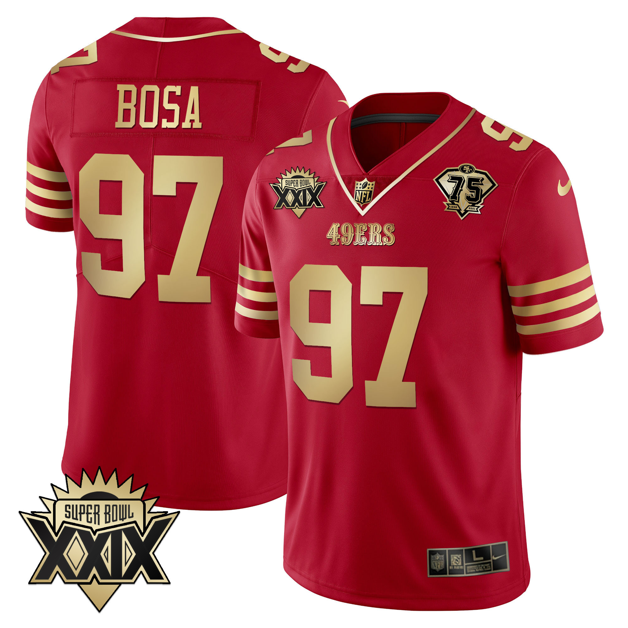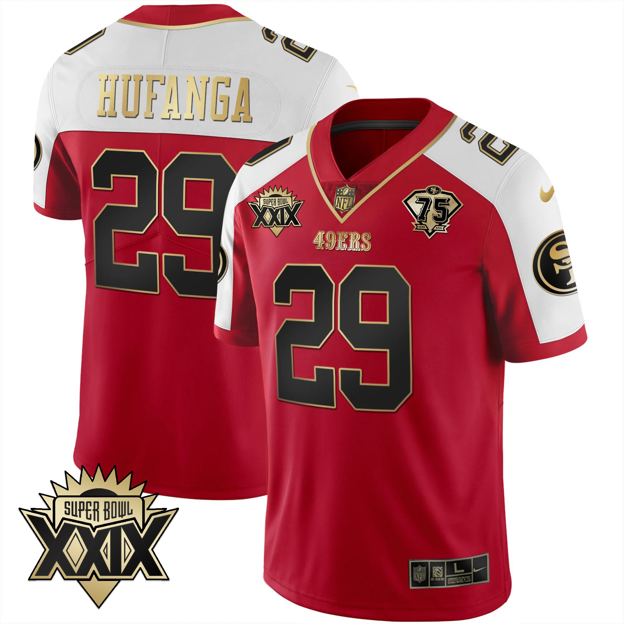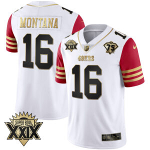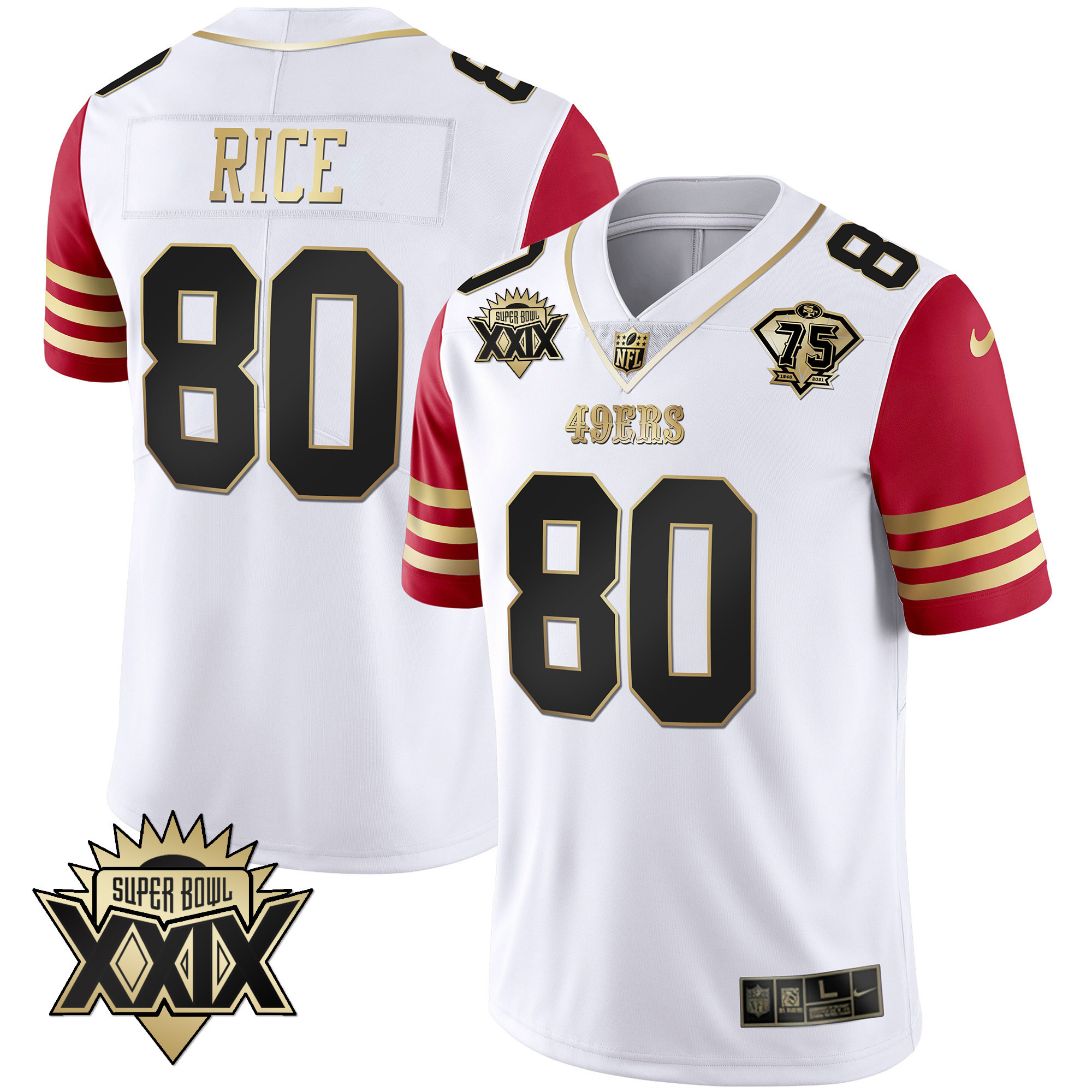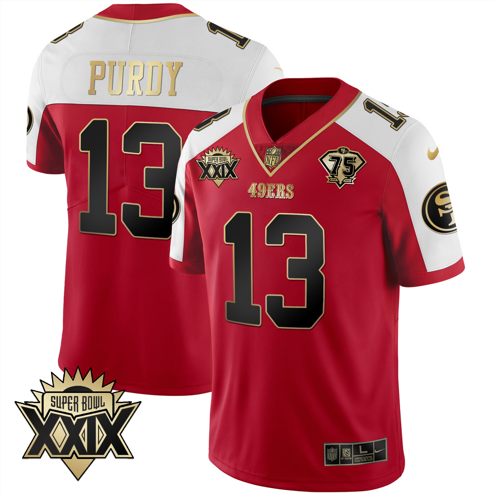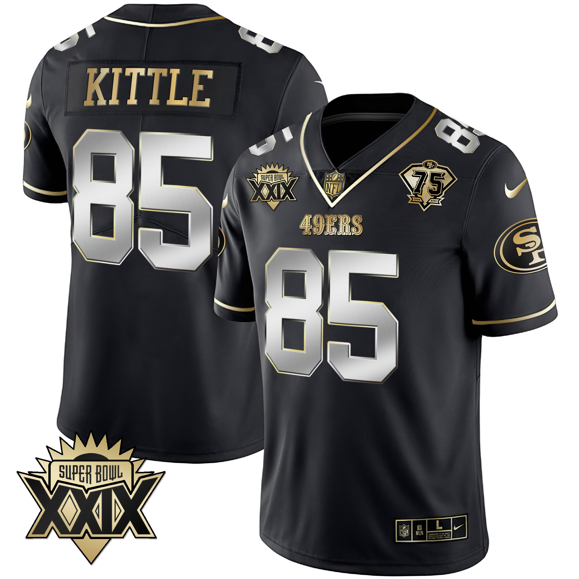 Men’s 49ers Super Bowl XXIX Patch Black Red Gold Jersey – All Stitched