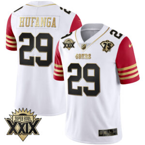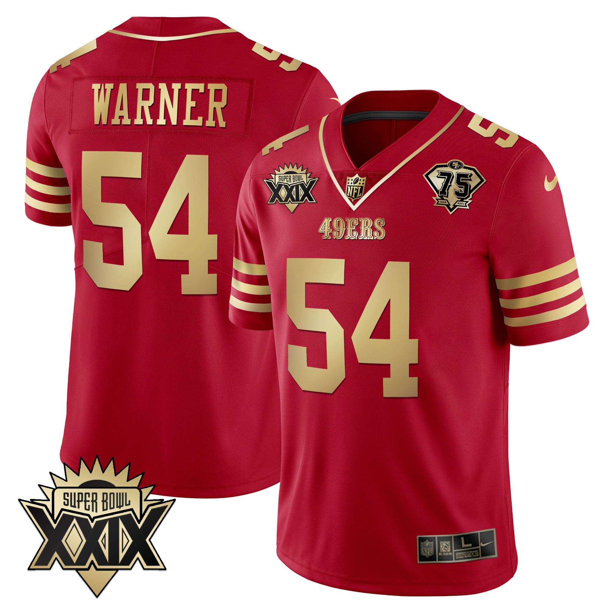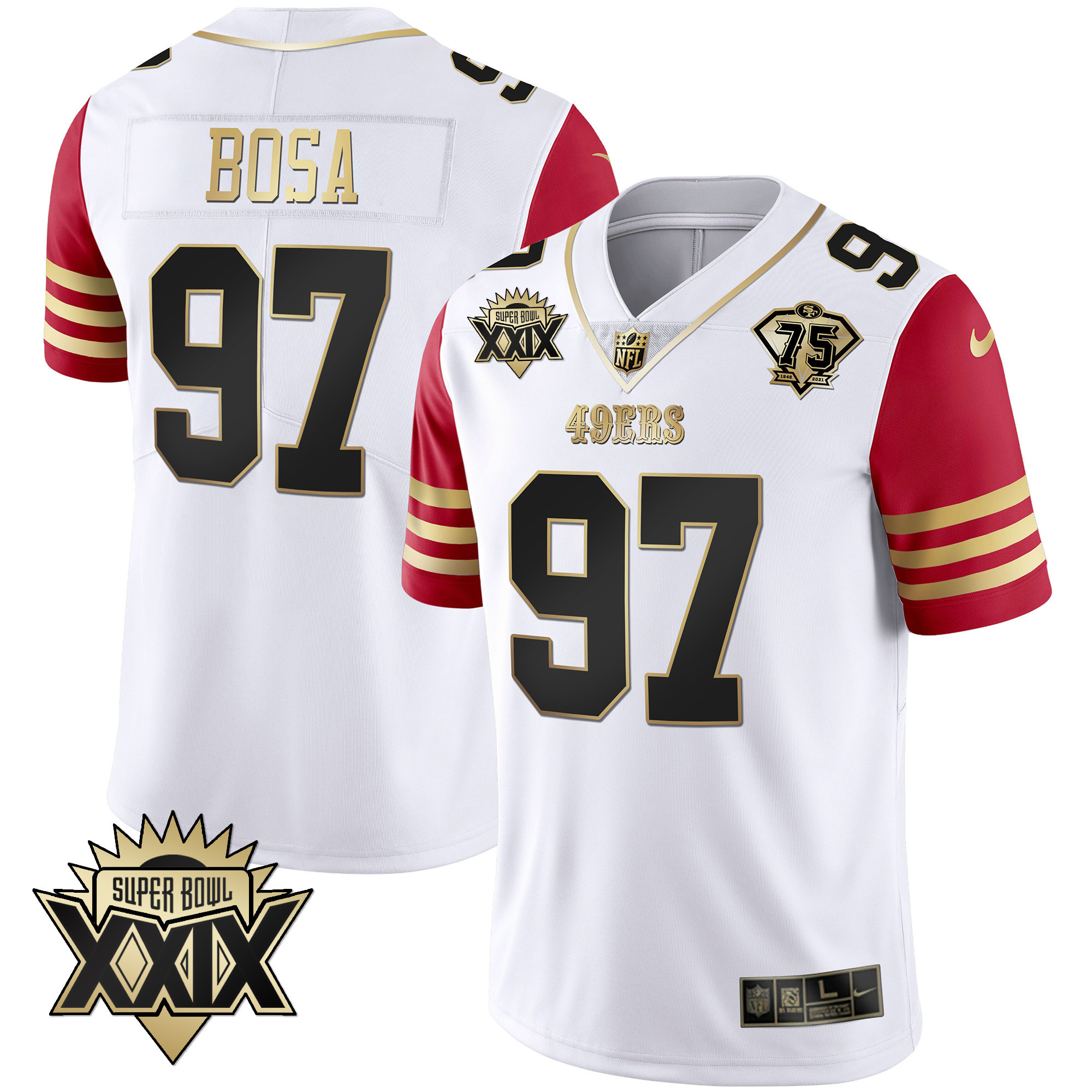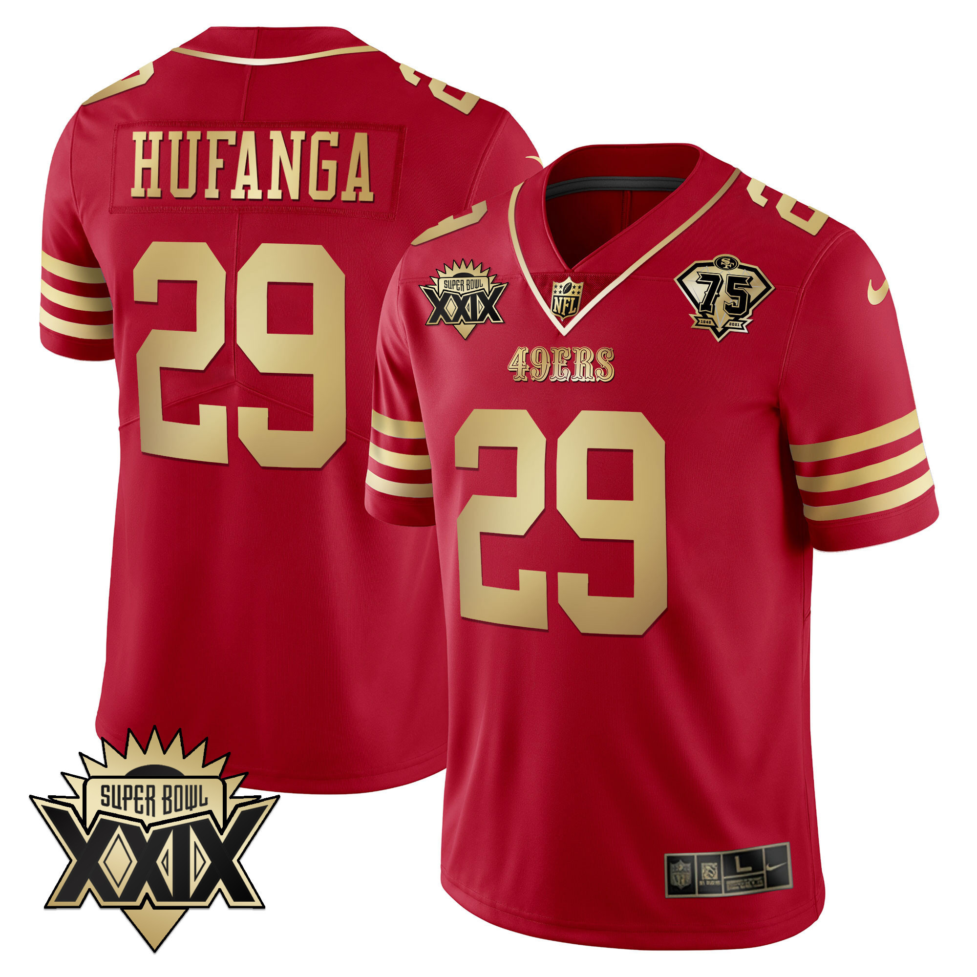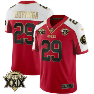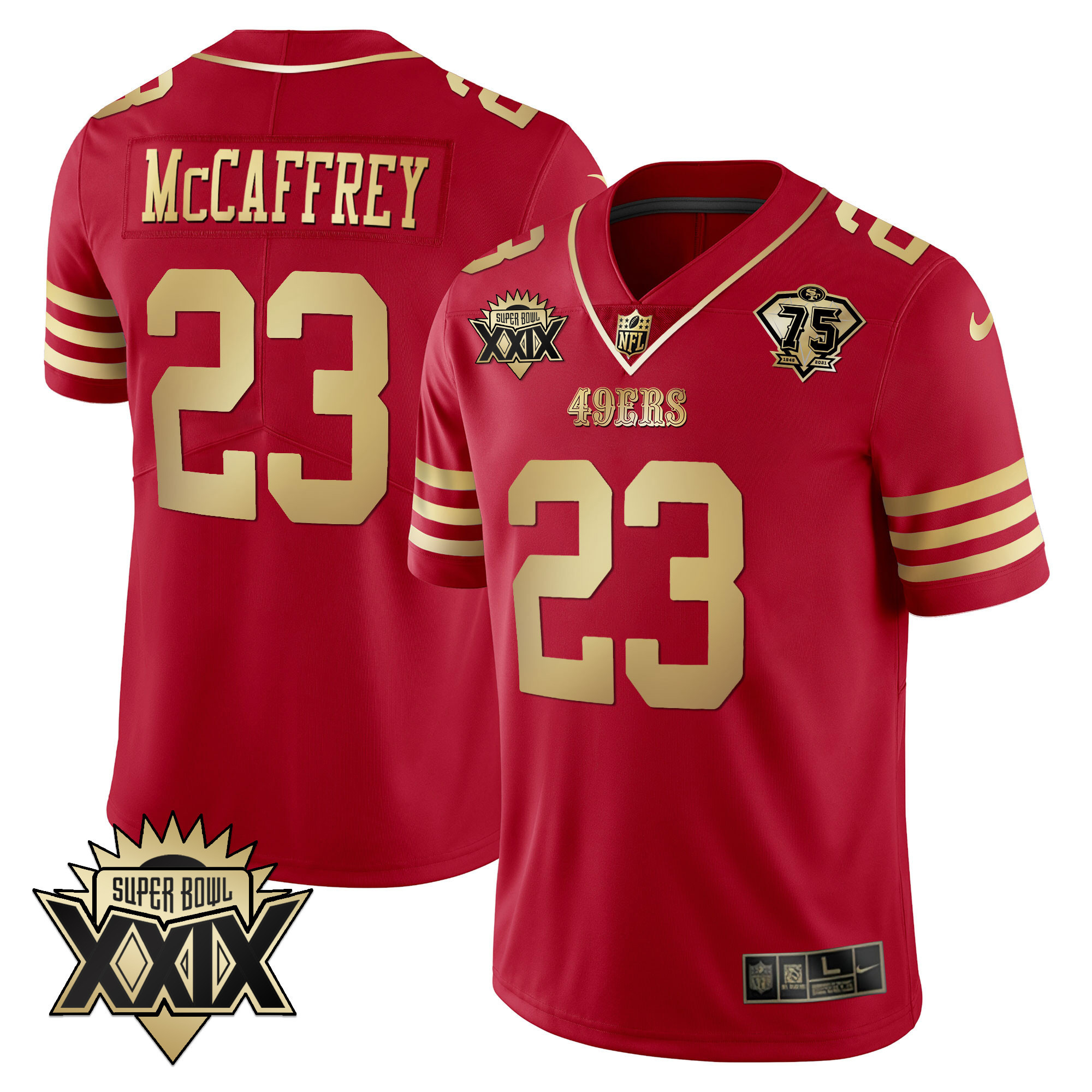 Men’s 49ers Super Bowl XXIX Patch Black Red Gold Jersey – All Stitched