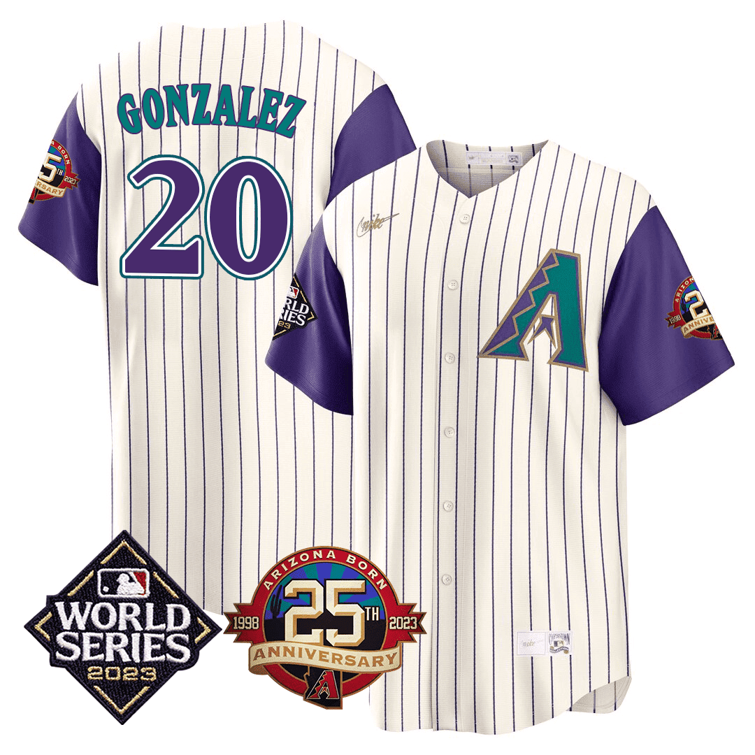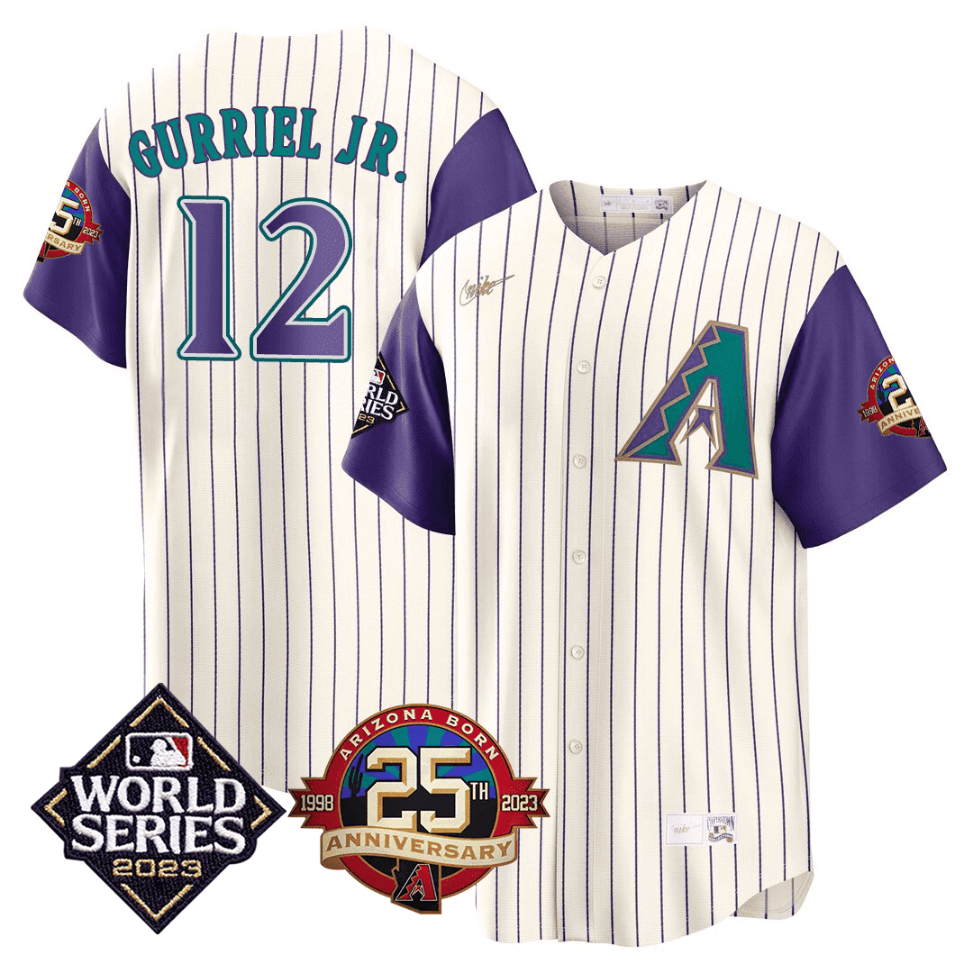Men’s Arizona Diamondbacks 2023 World Series Patch Throwback Jersey – All Stitched