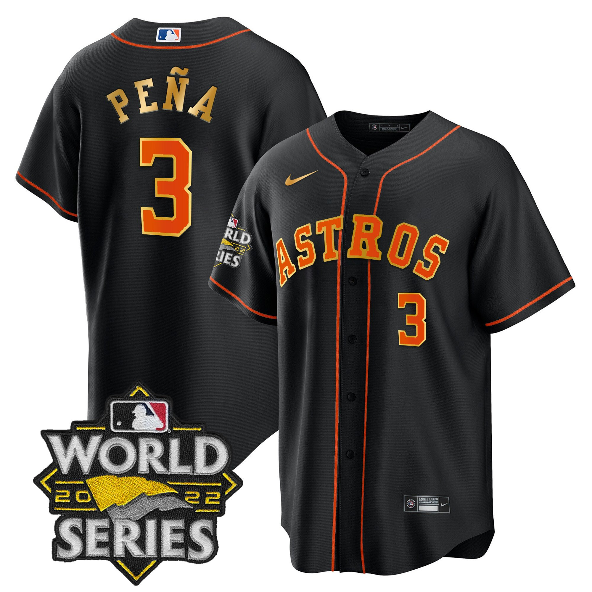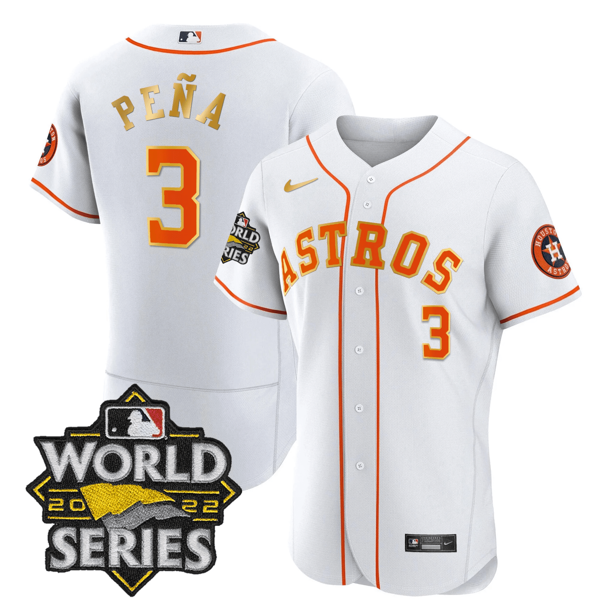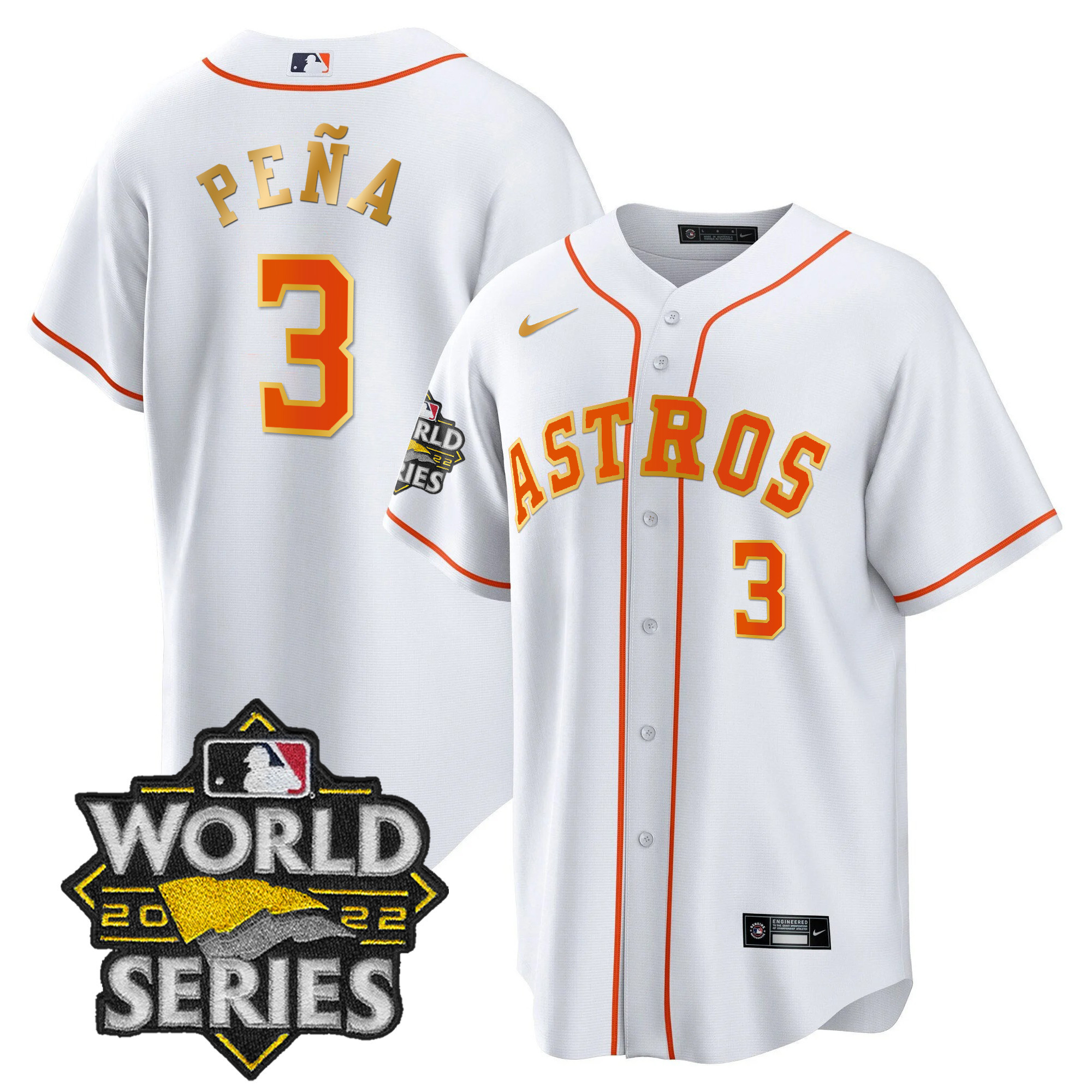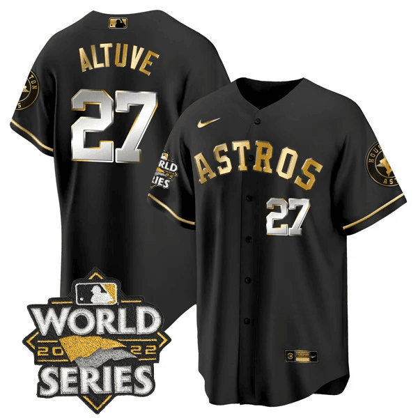 Men’s Astros 2022 World Series Gold Trim Jersey – All Stitched
