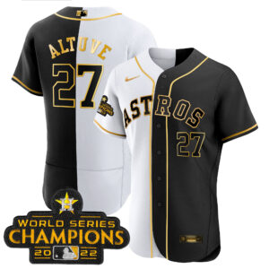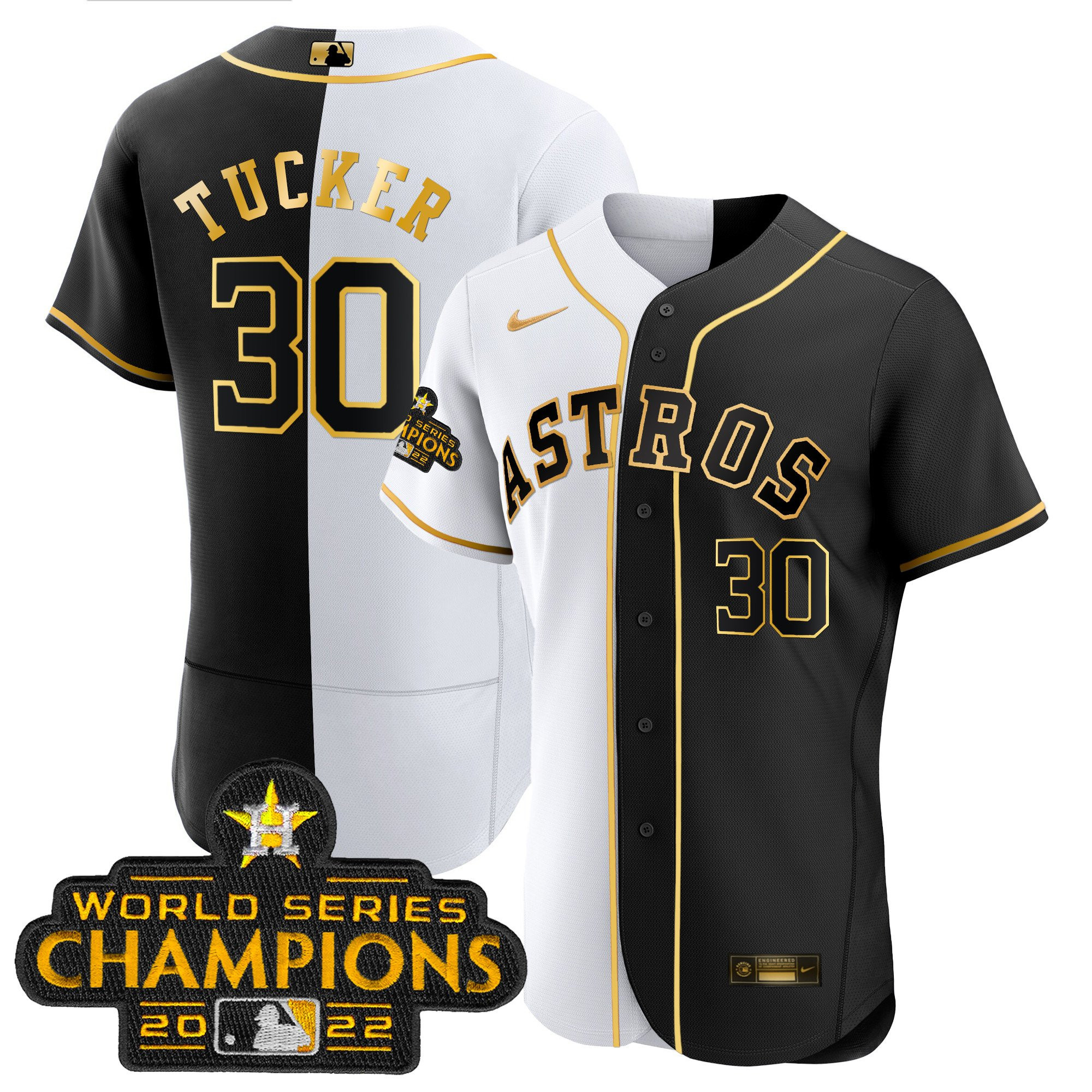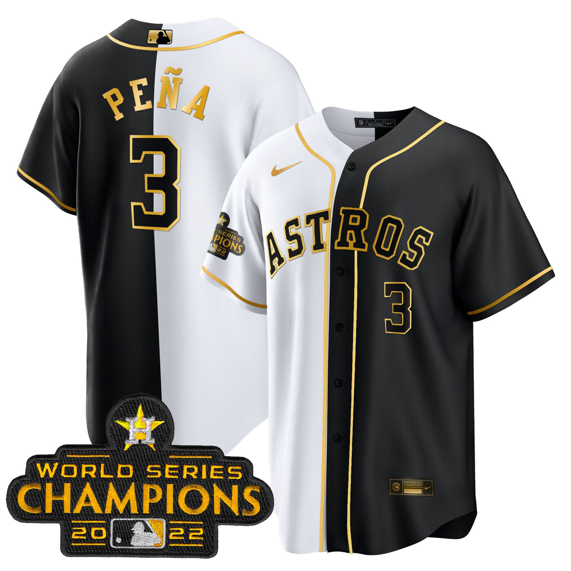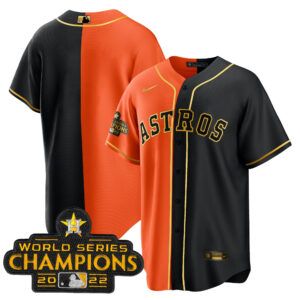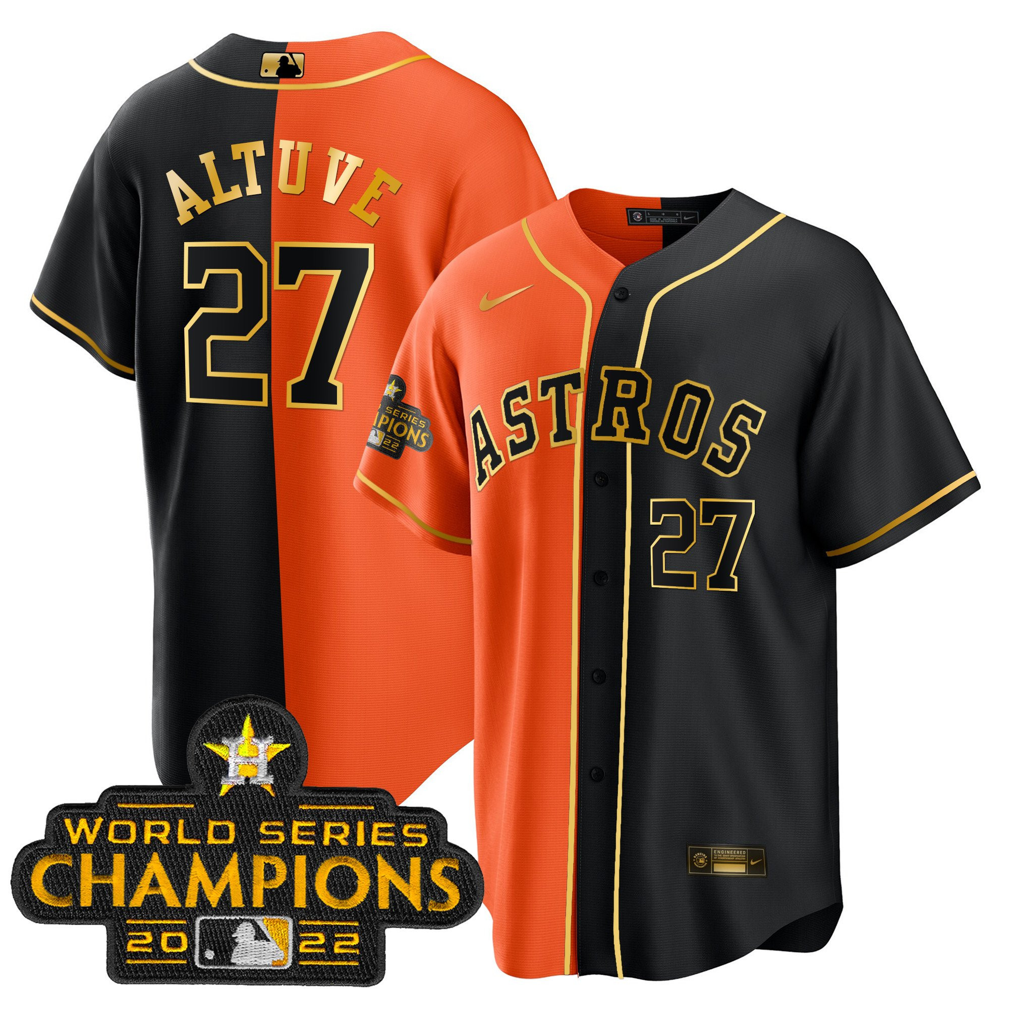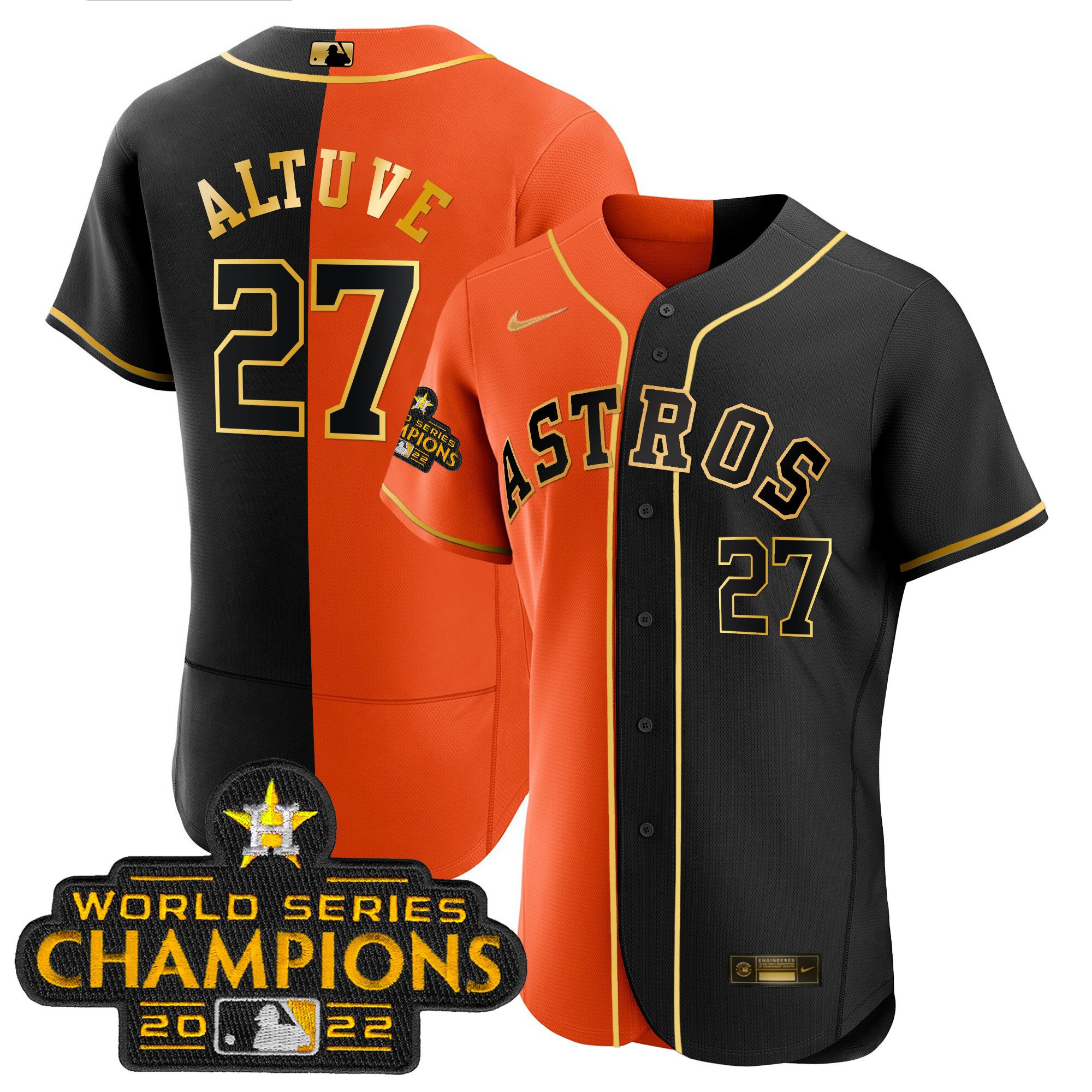 Men’s Astros 2023 Champions Gold Split Jersey – All Stitched