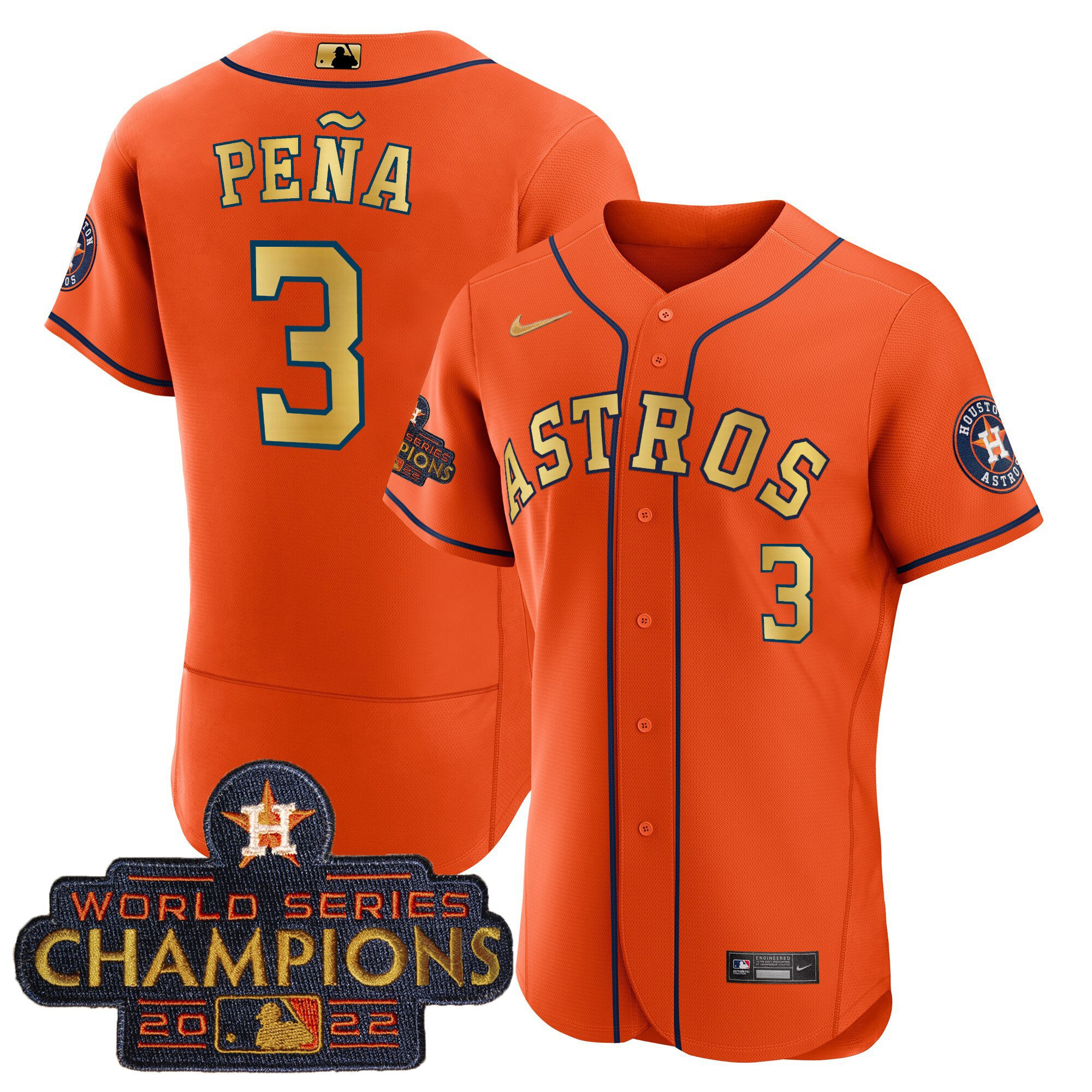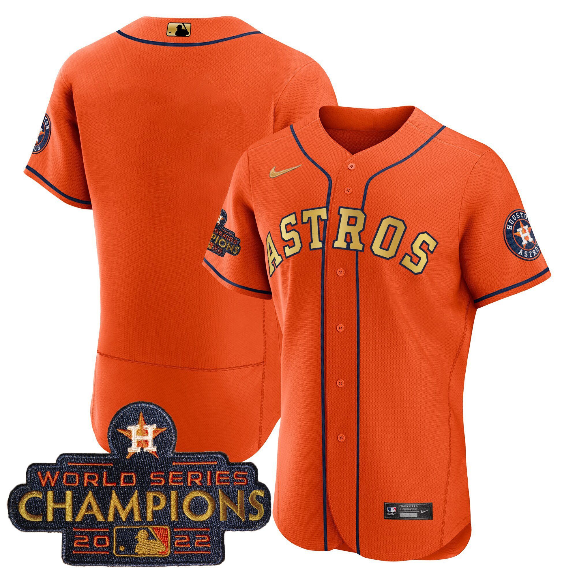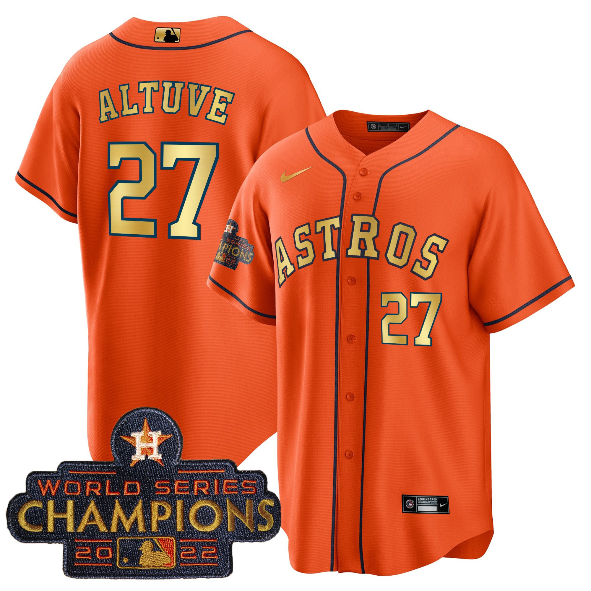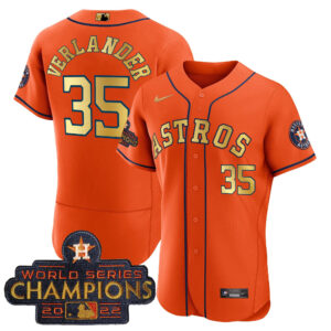 Men’s Astros 2023 Champions Orange Gold Jersey – All Stitched