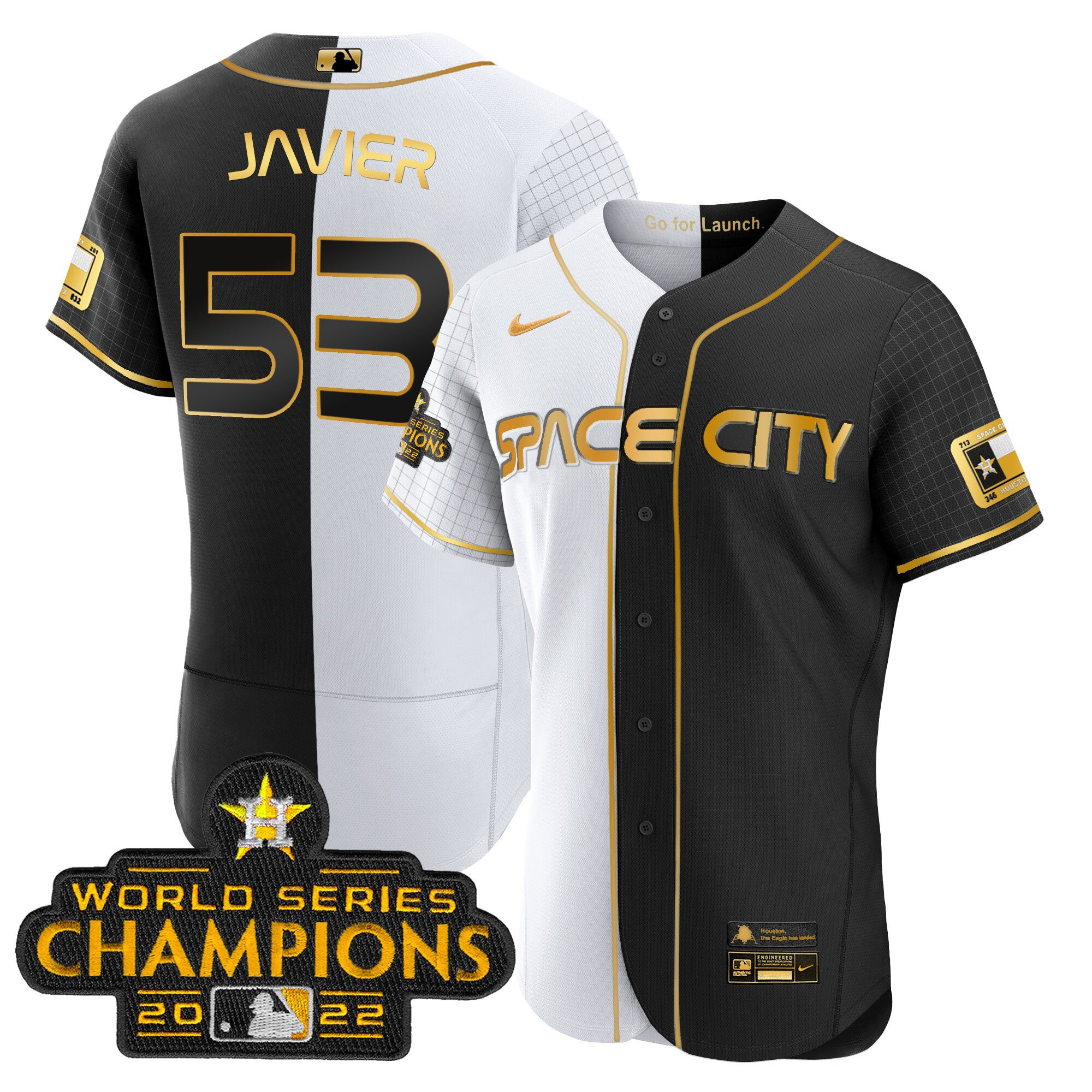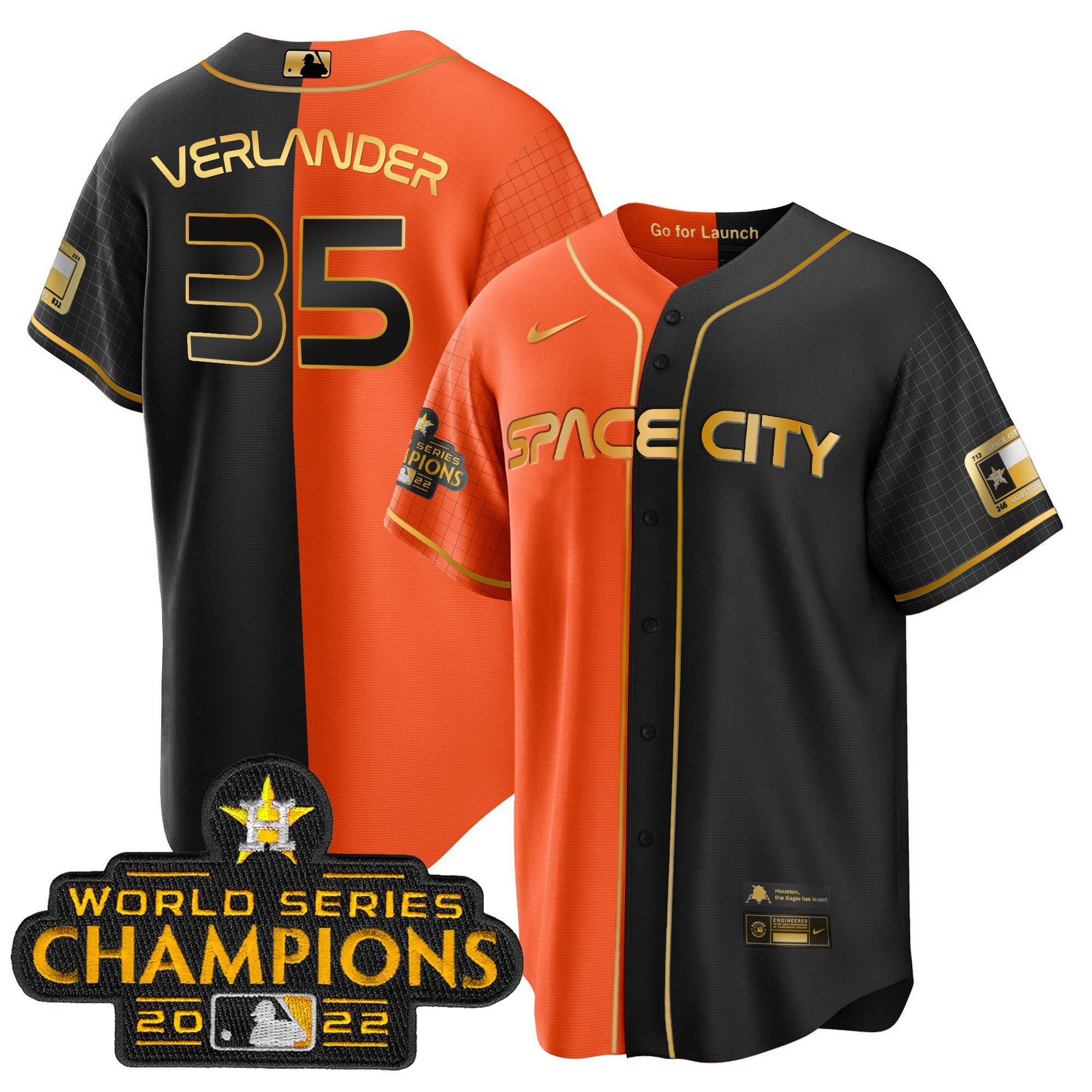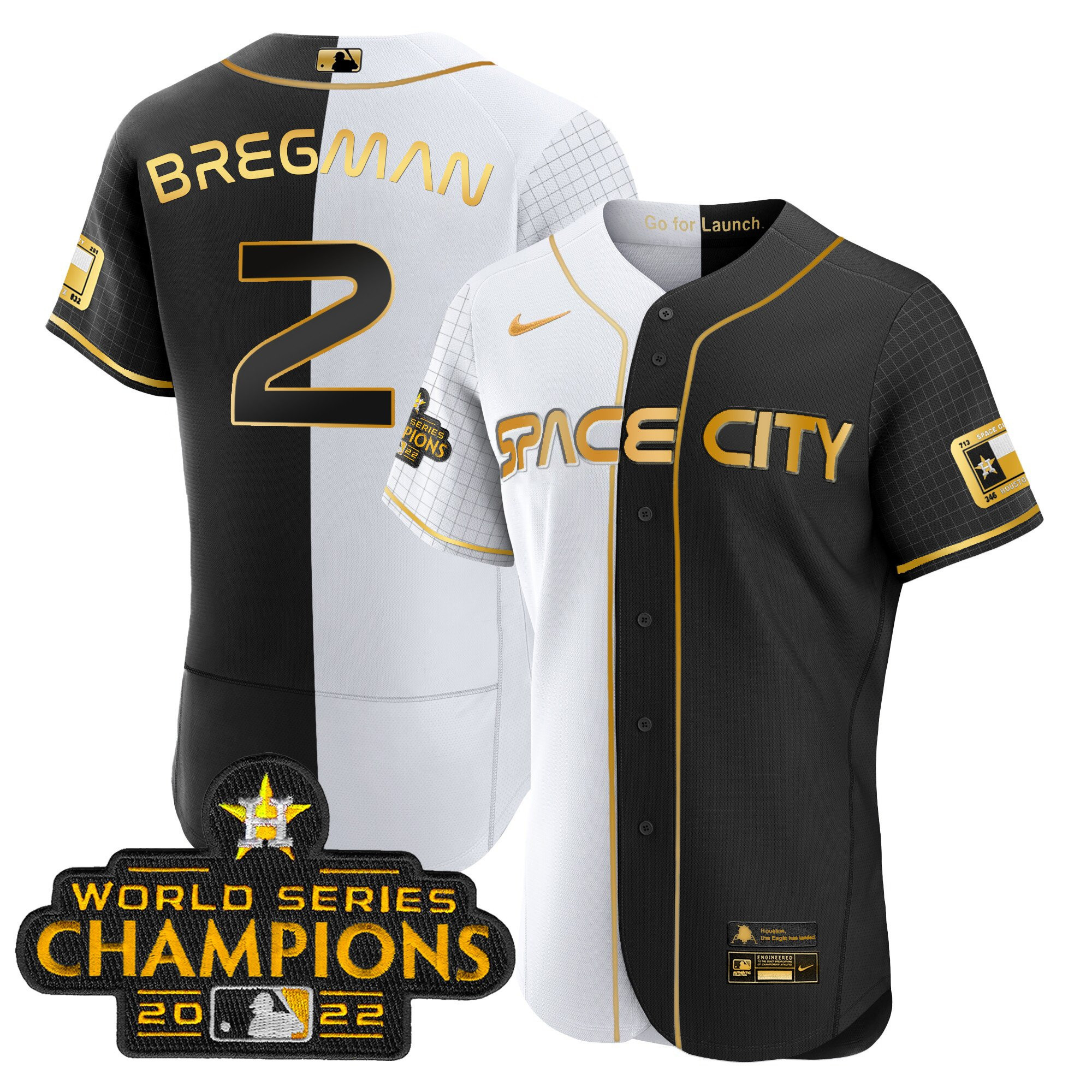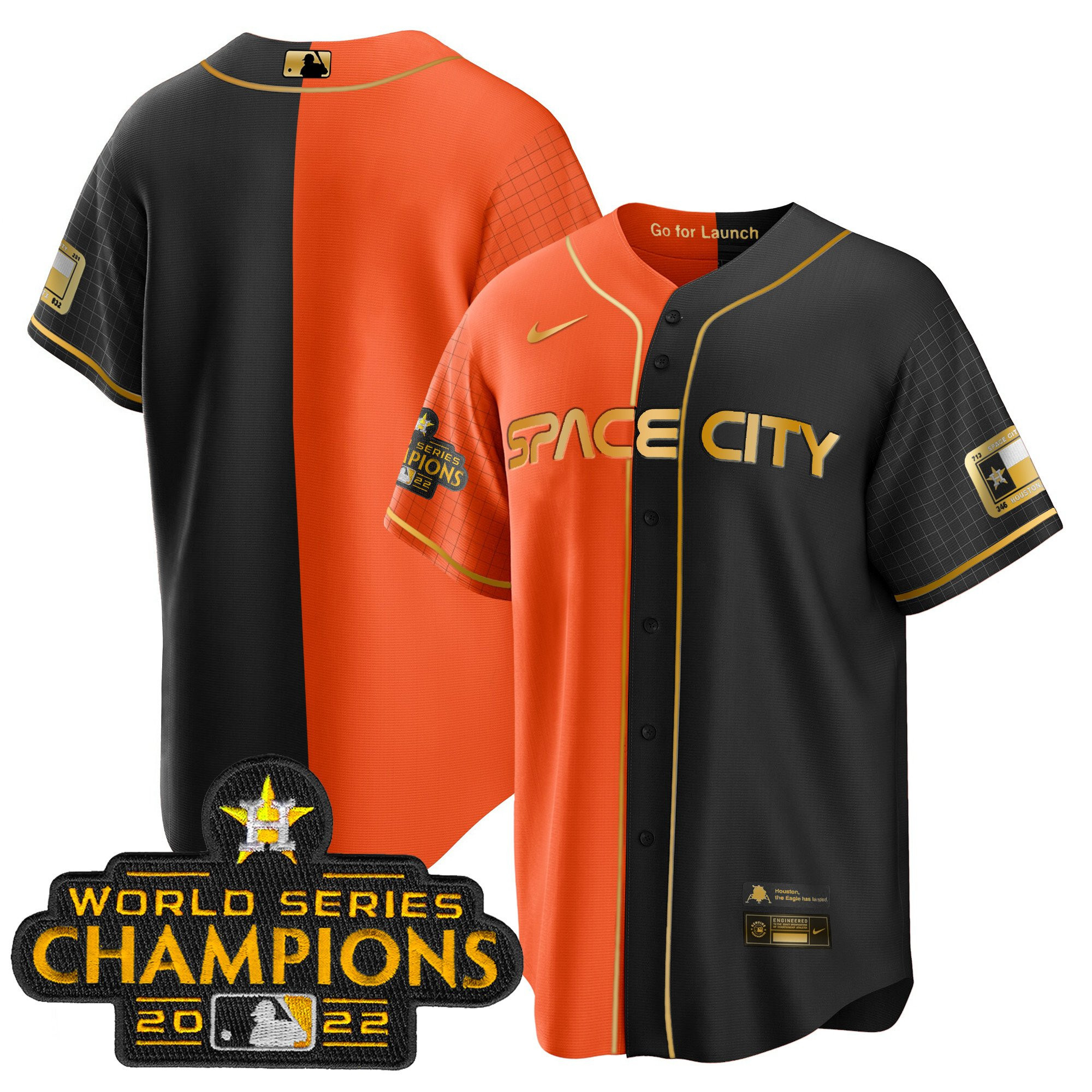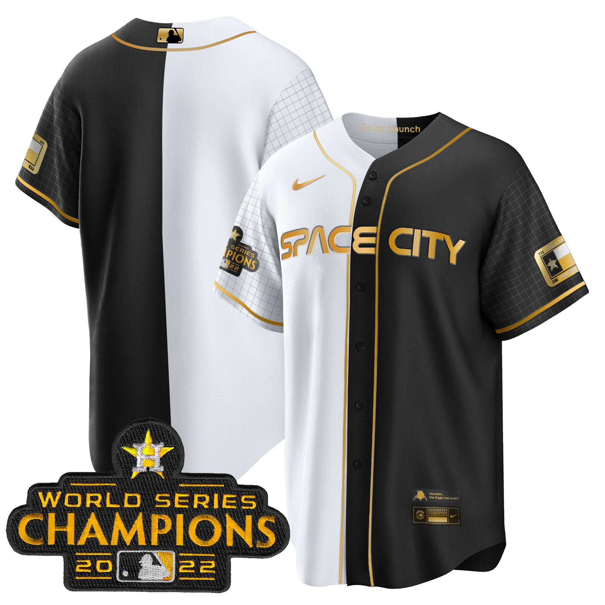 Men’s Astros 2023 Space City Champions Gold Split Jersey – All Stitched