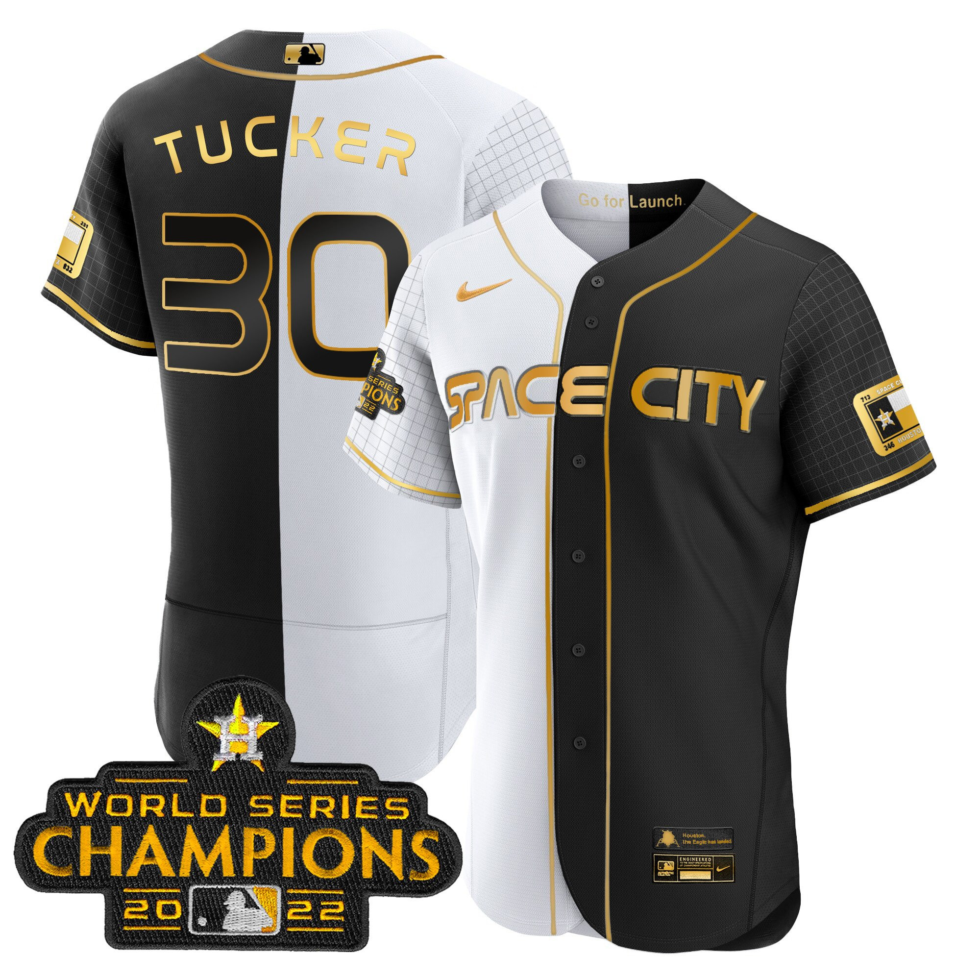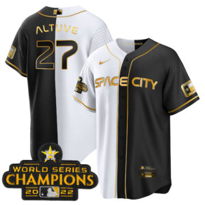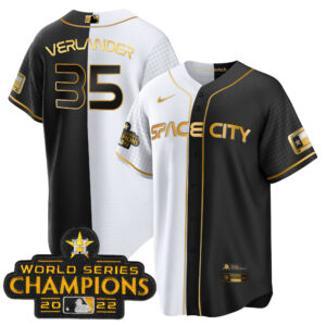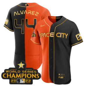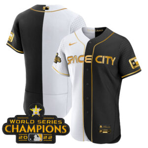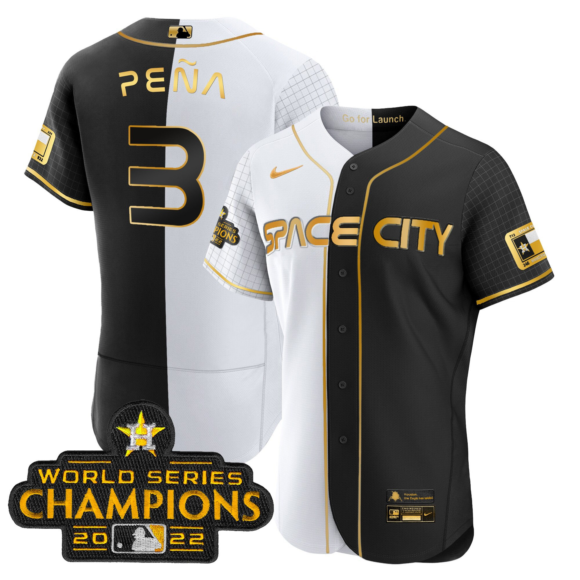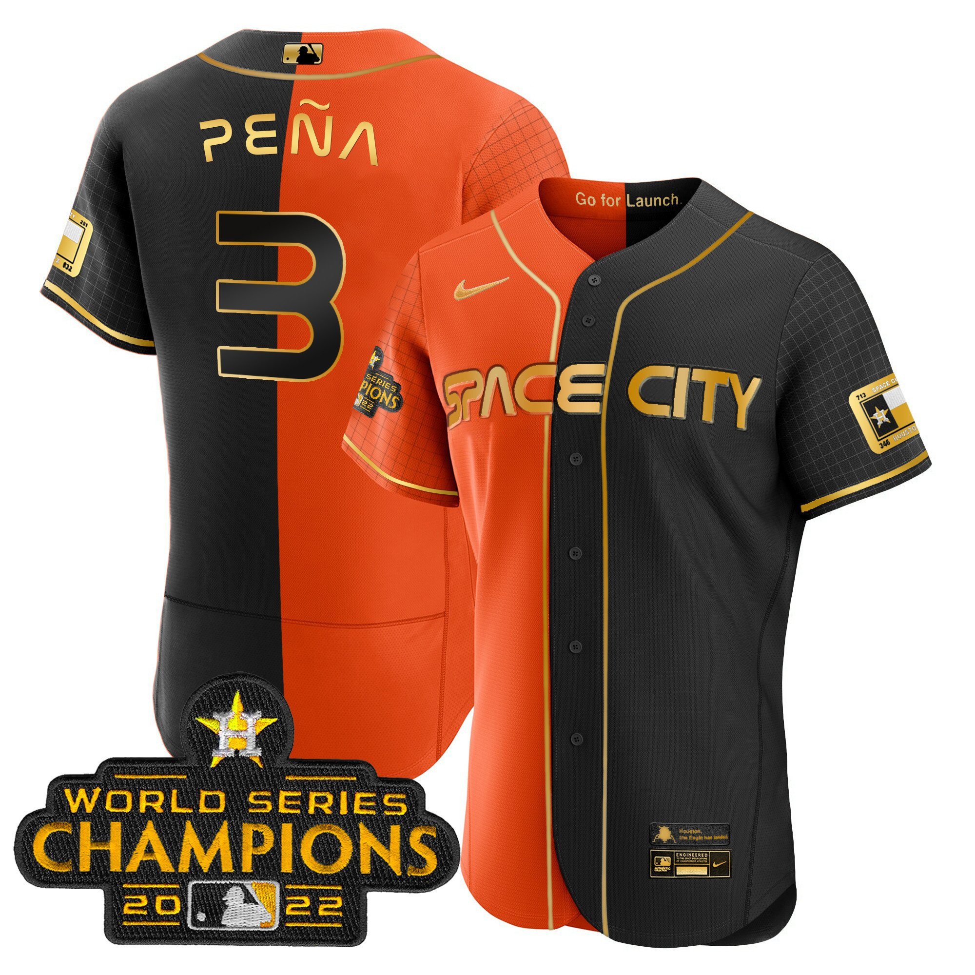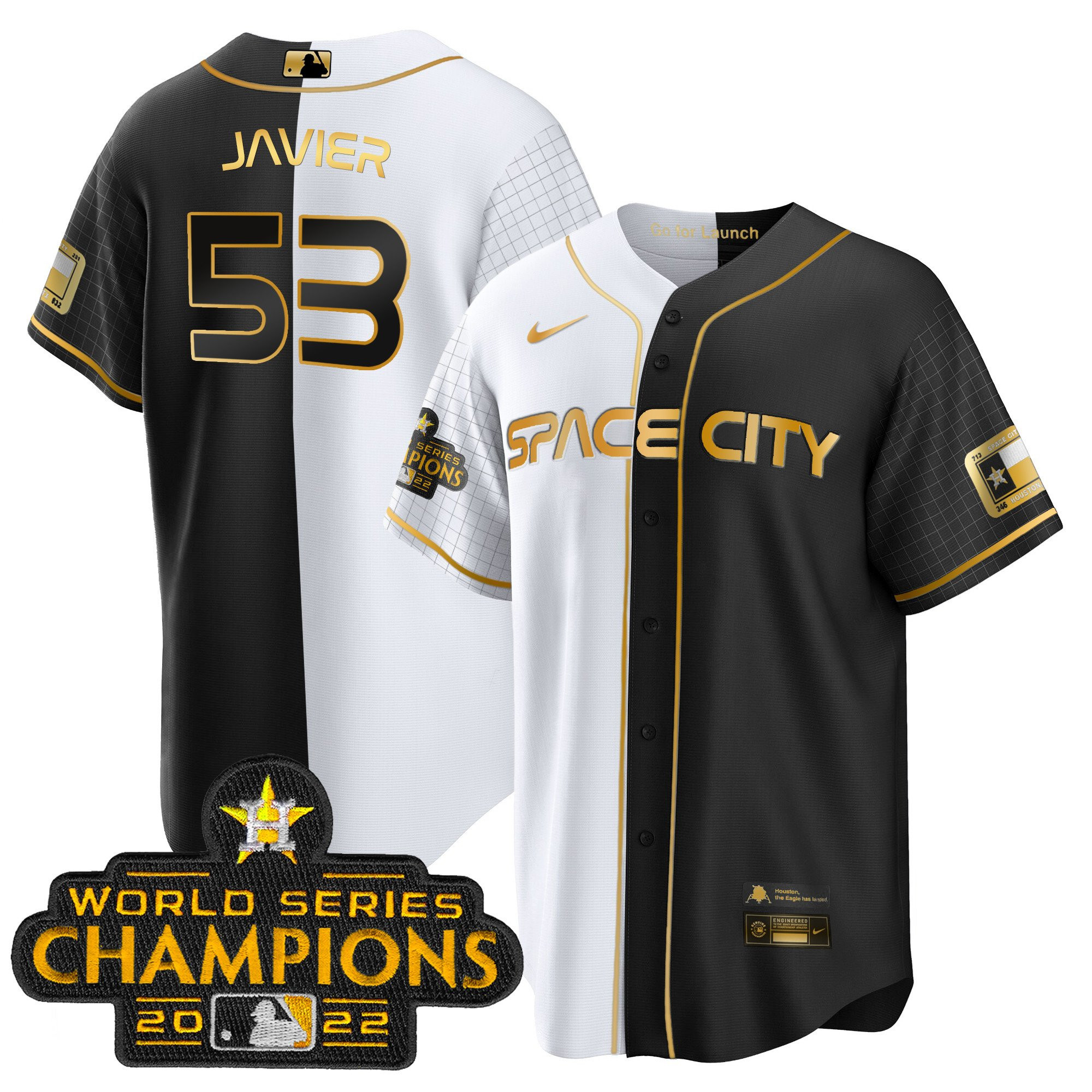 Men’s Astros 2023 Space City Champions Gold Split Jersey – All Stitched
