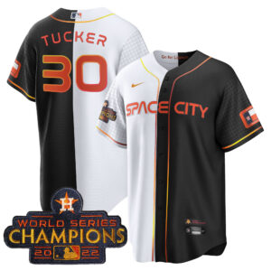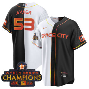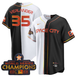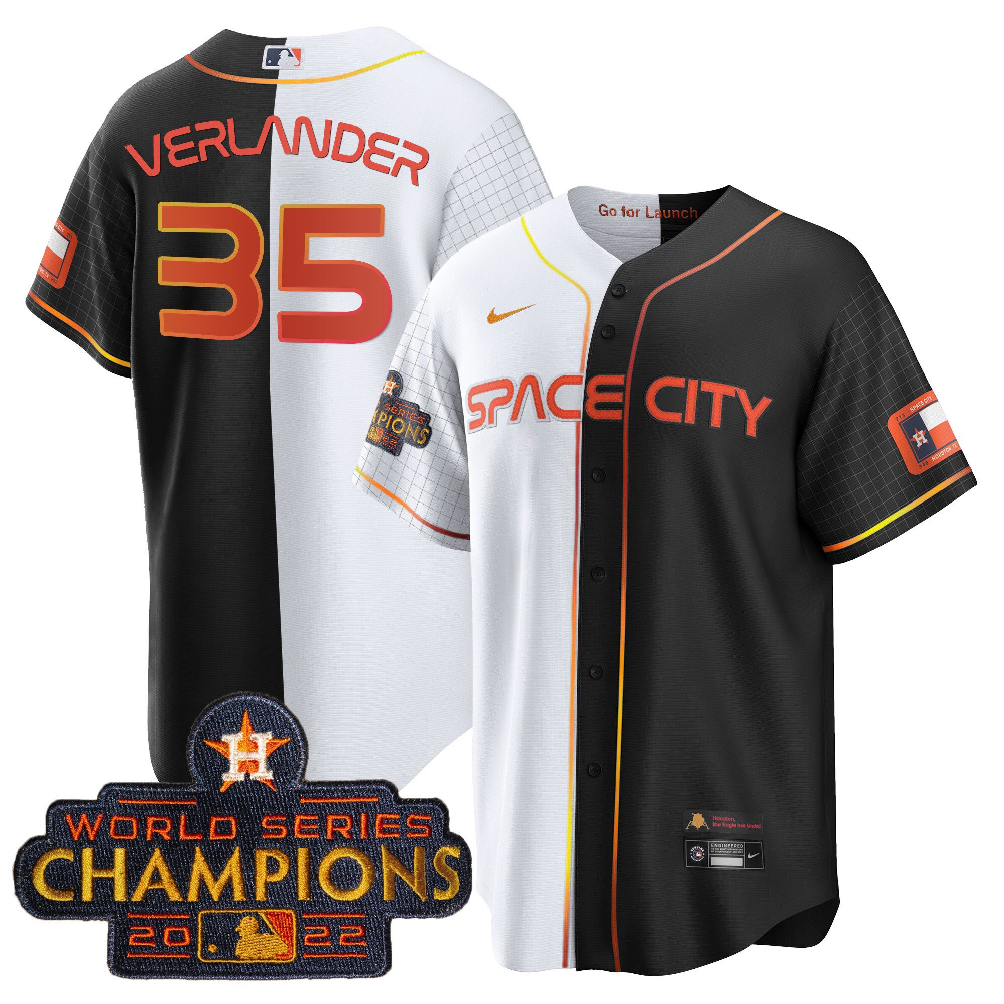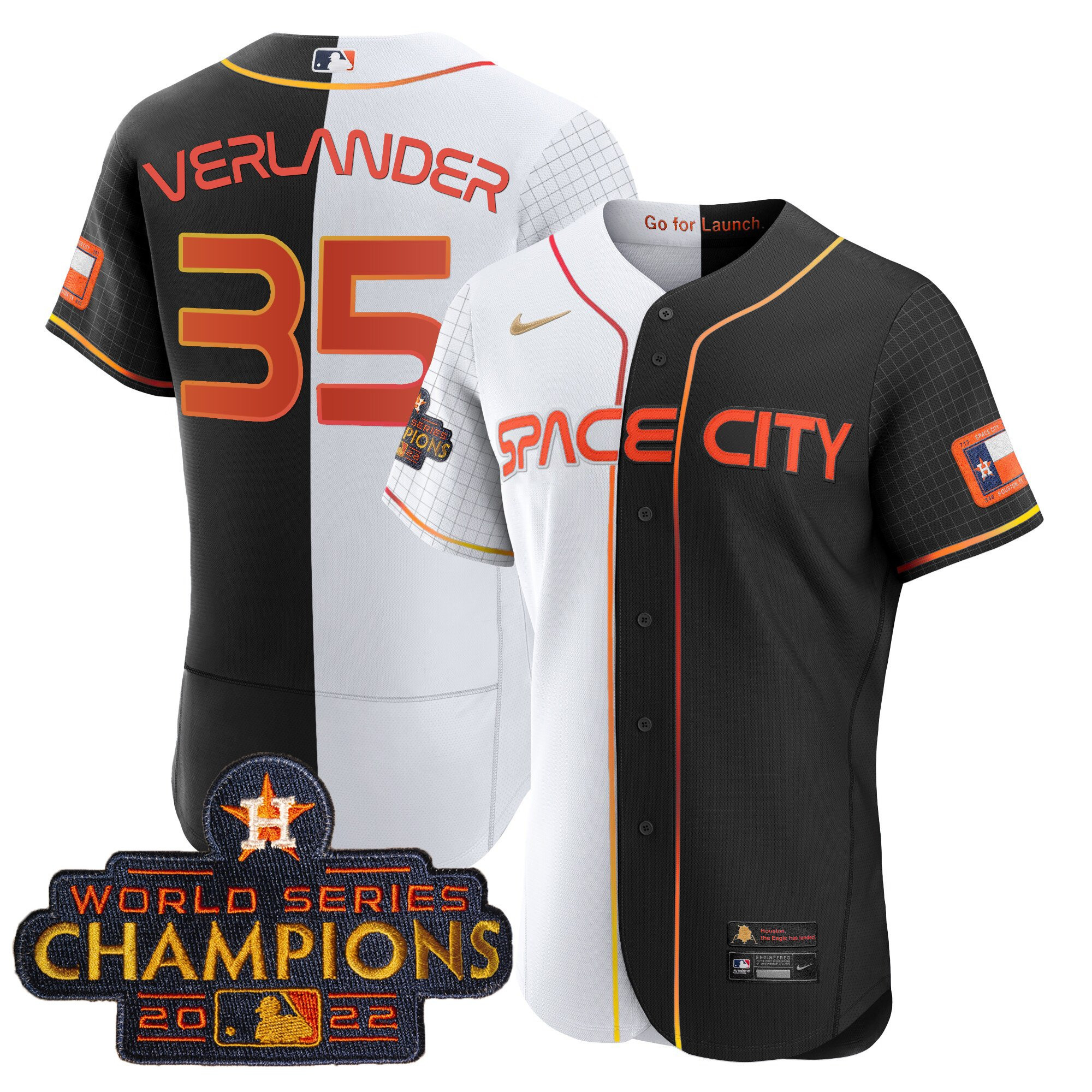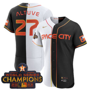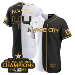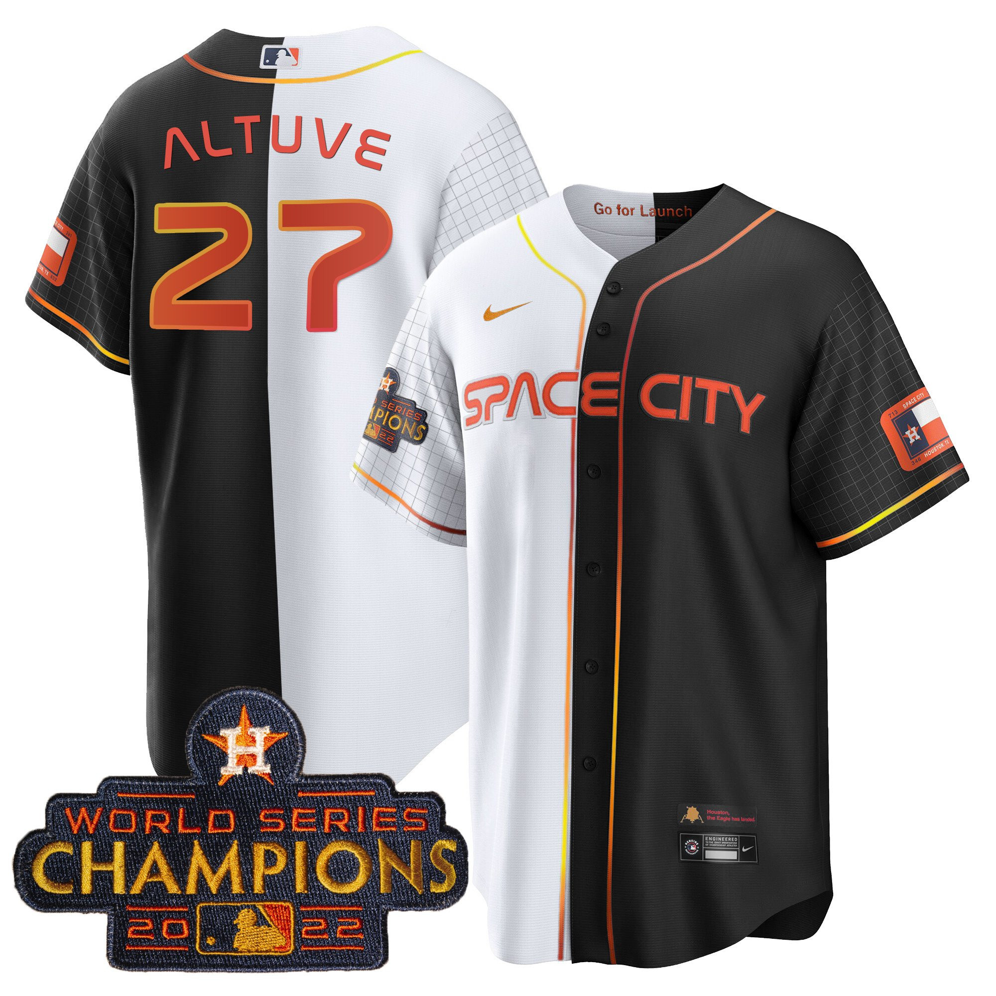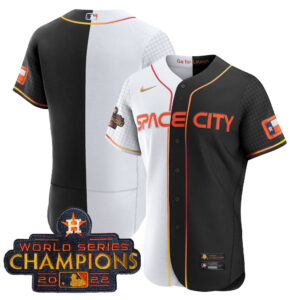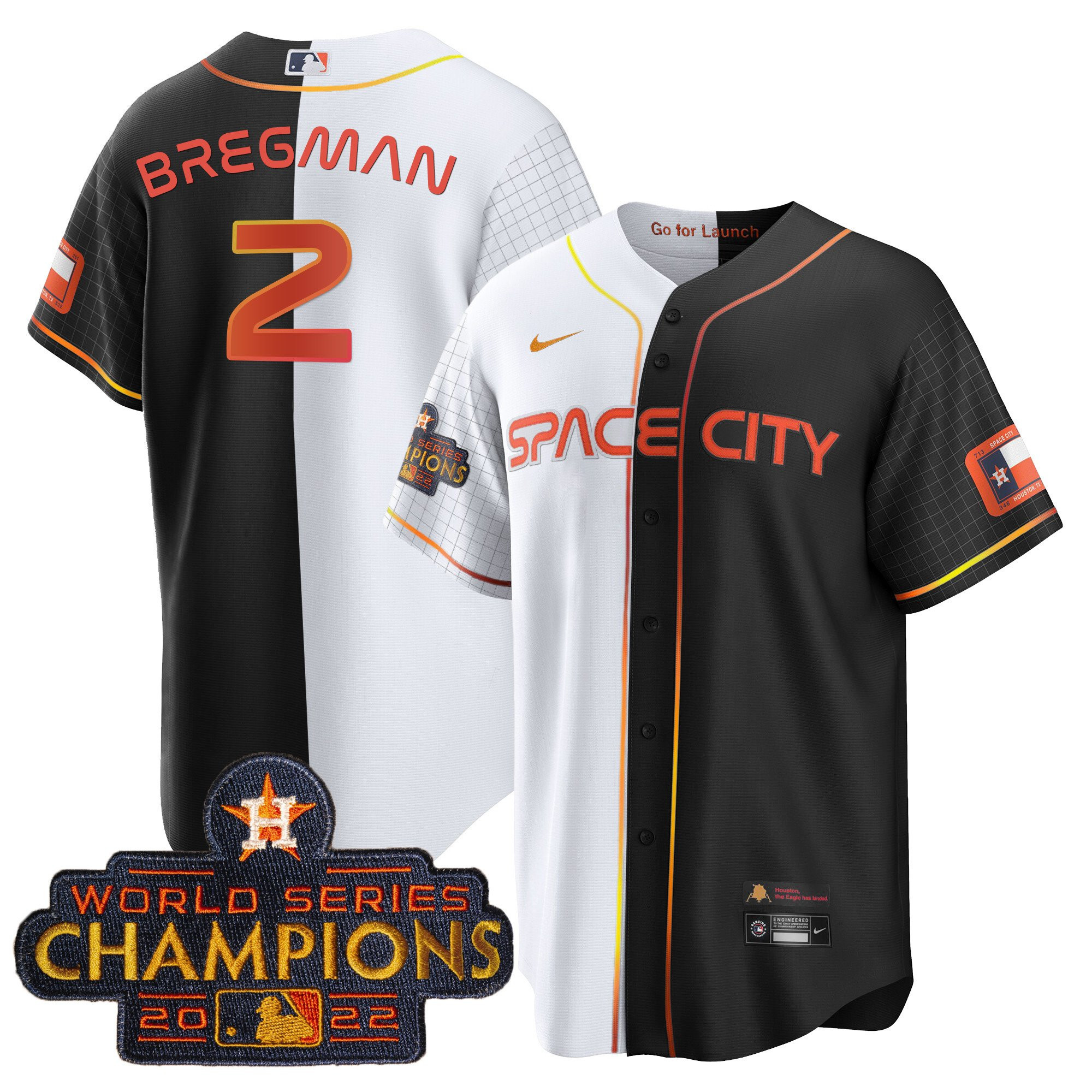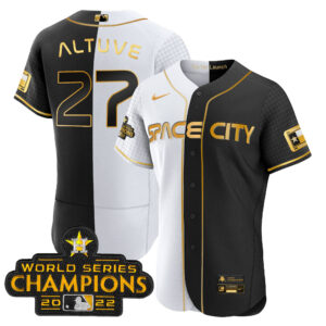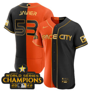 Men’s Astros 2023 Space City Champions Gold Split Jersey – All Stitched