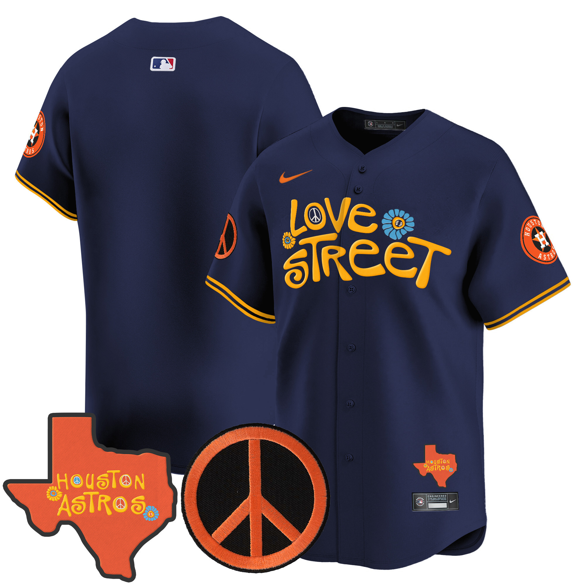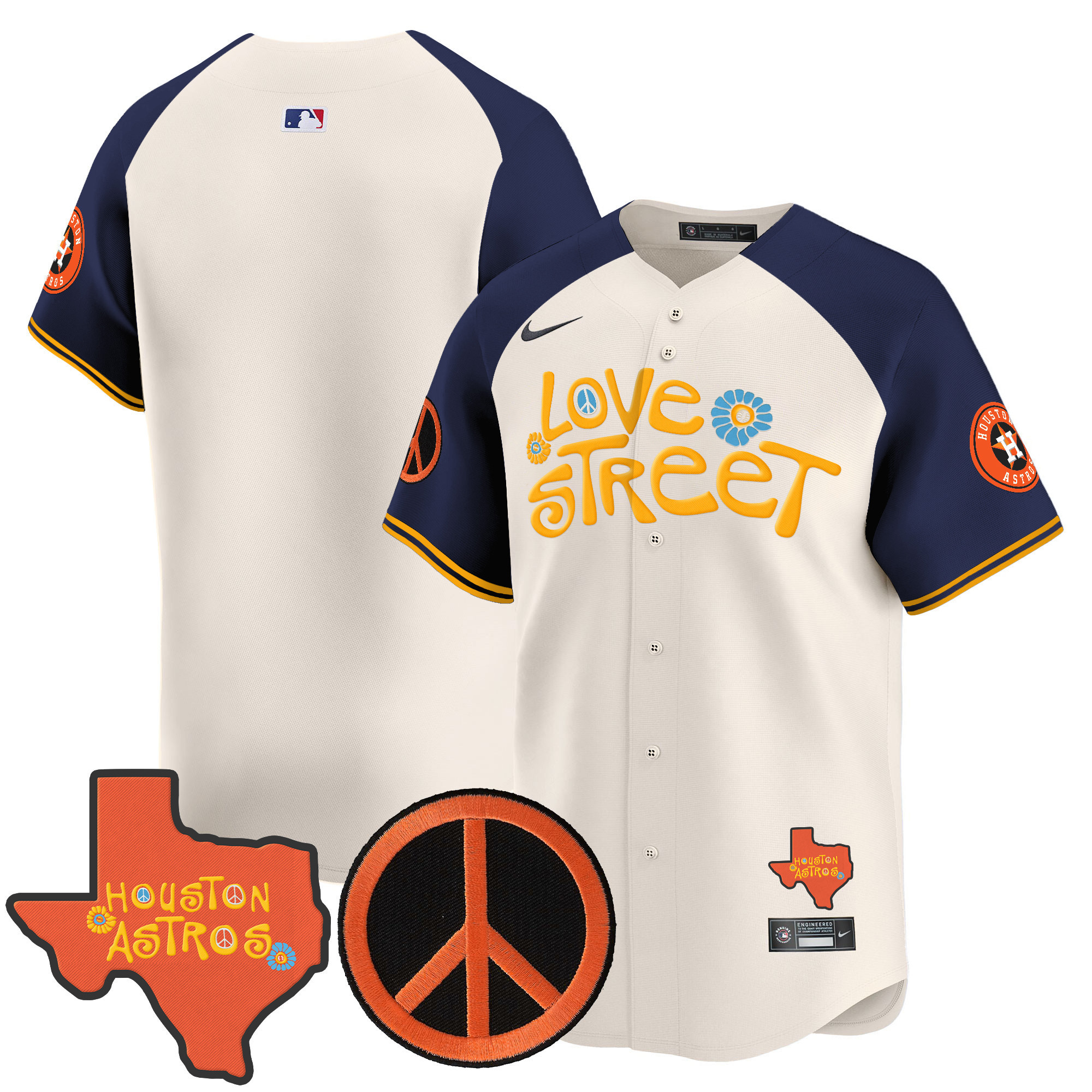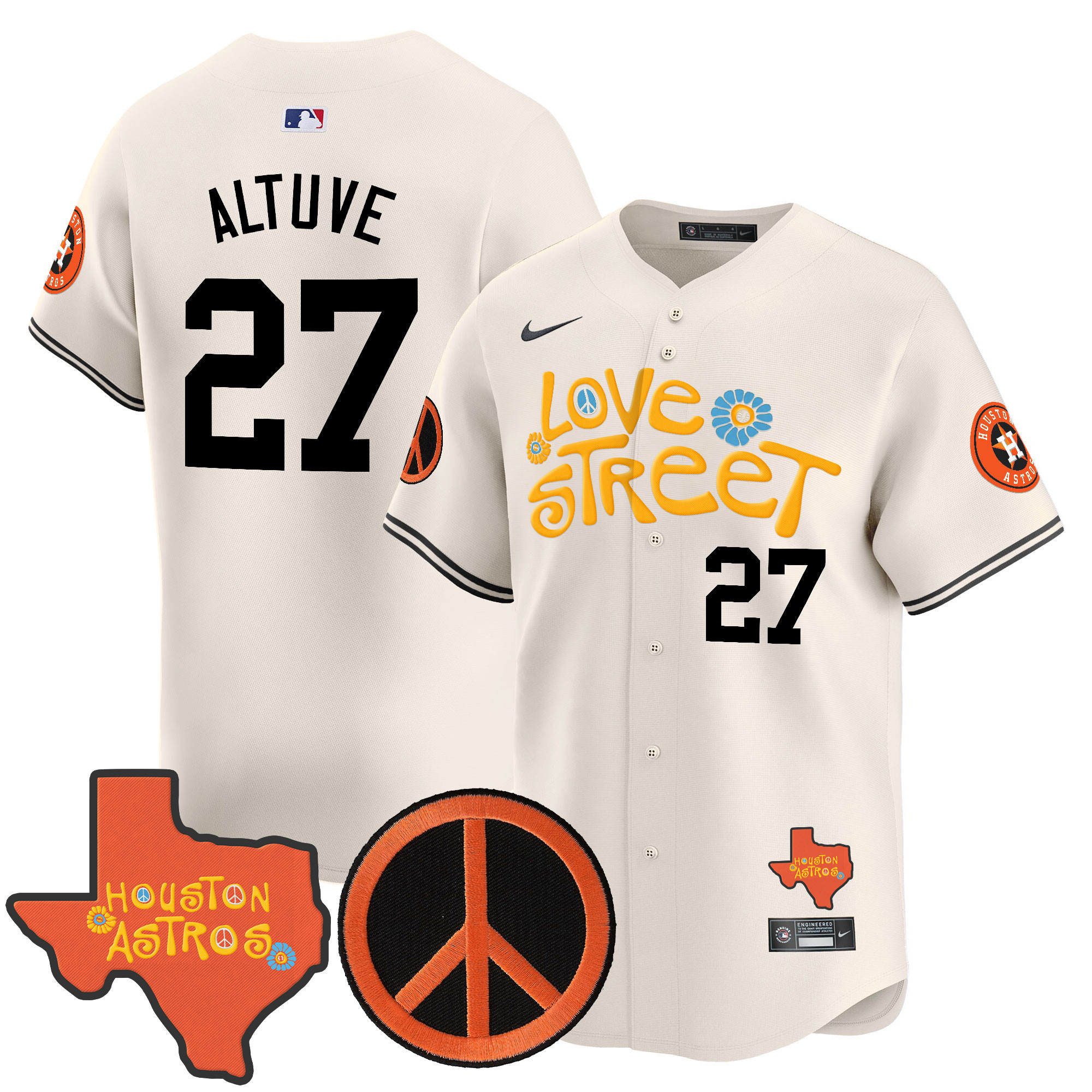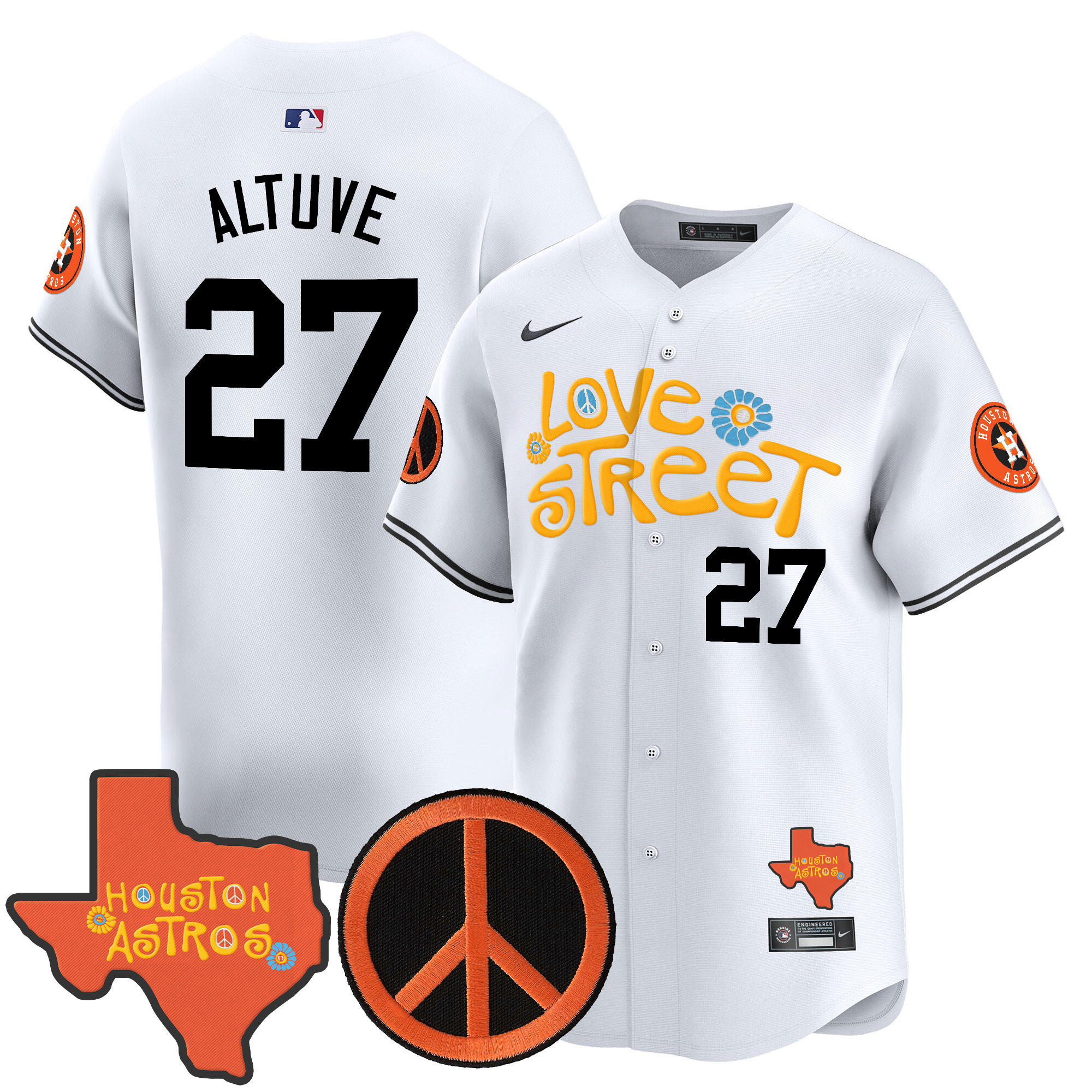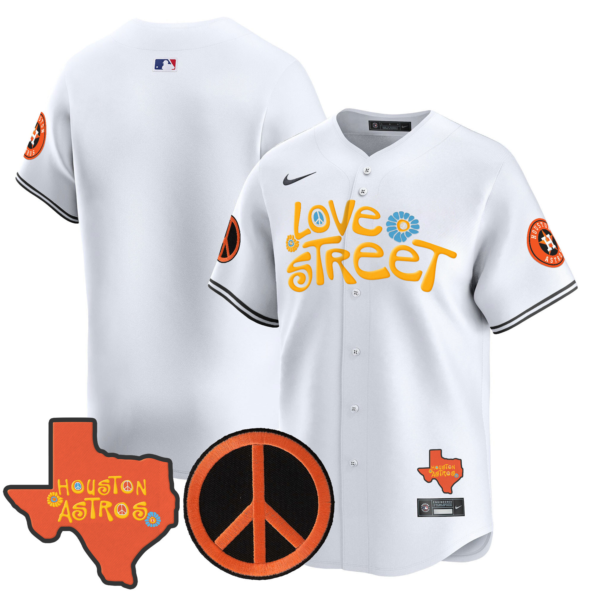 Men’s Astros Love Street & Peace Sign Patch Vapor Premier Limited Jersey V3 – All Stitched