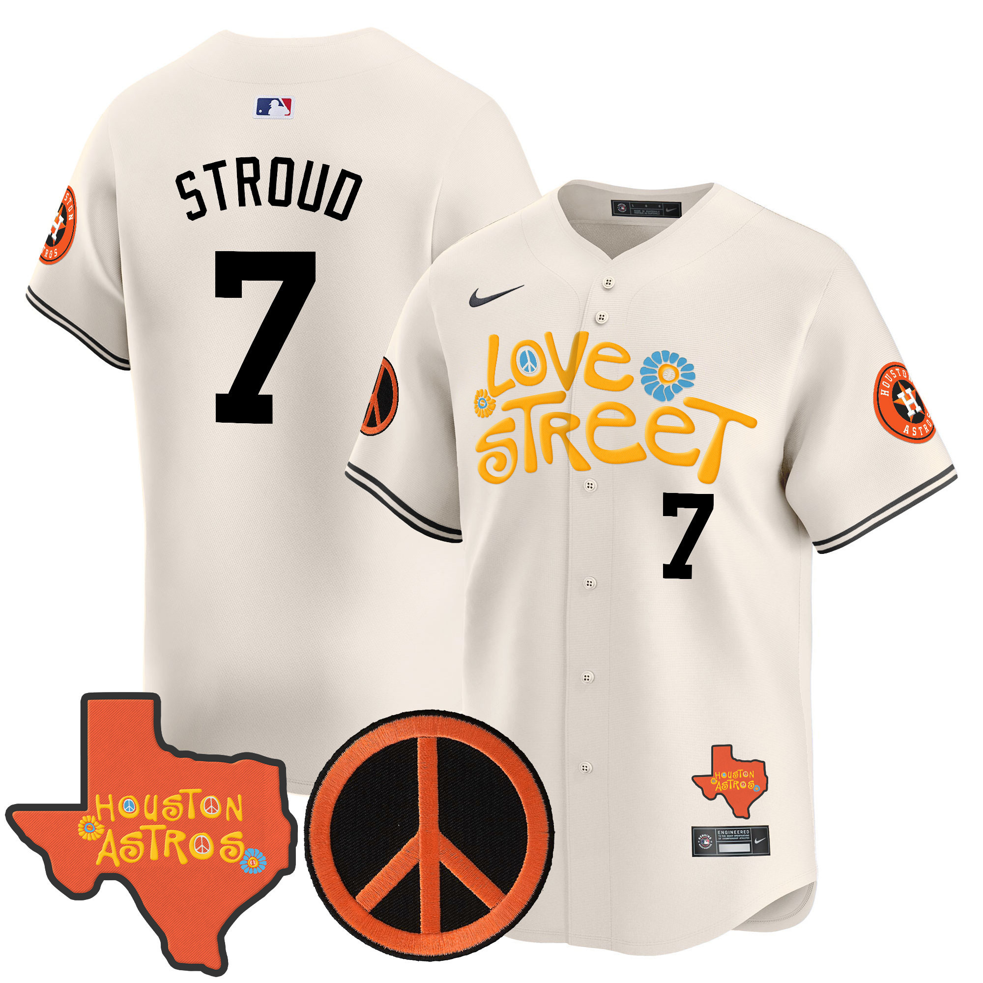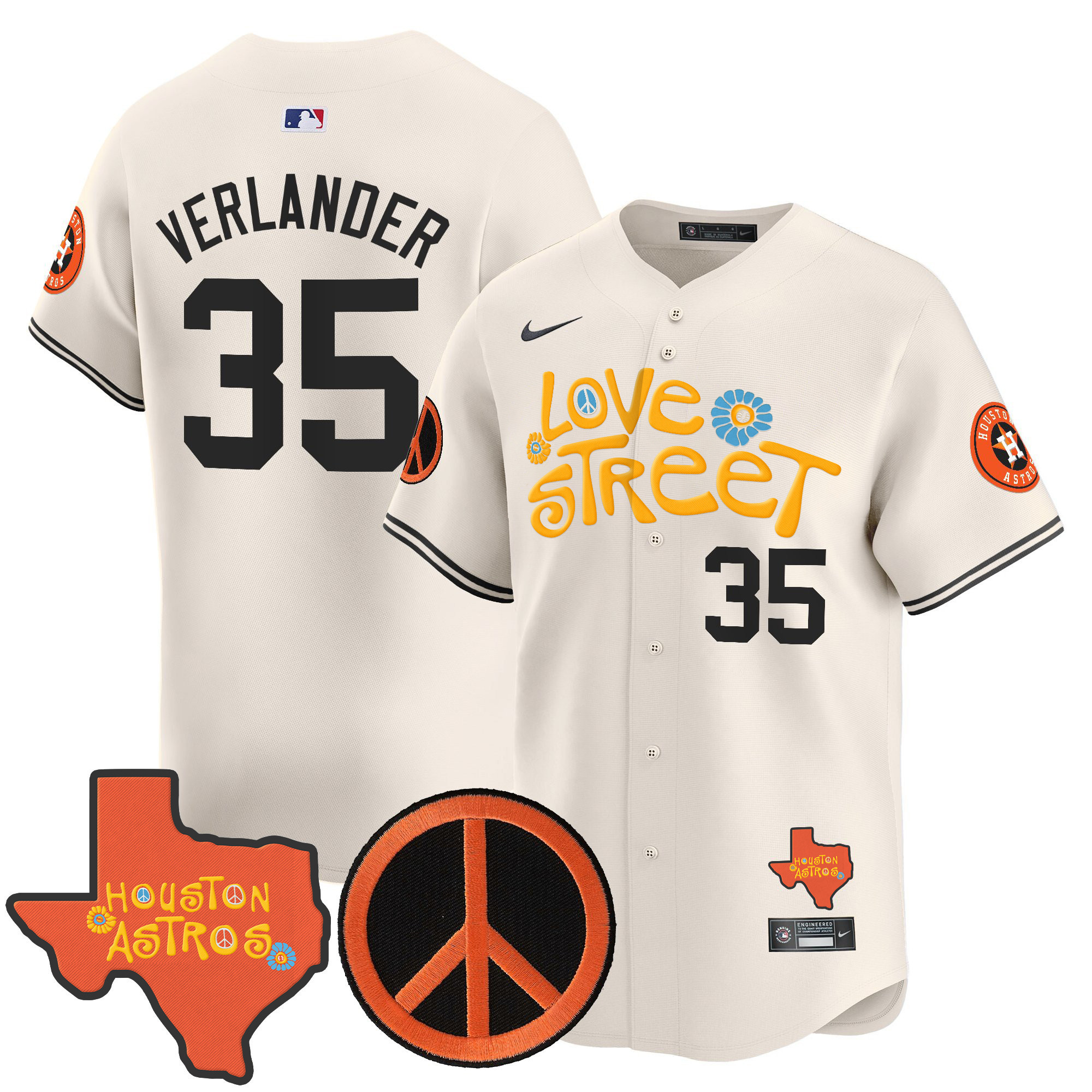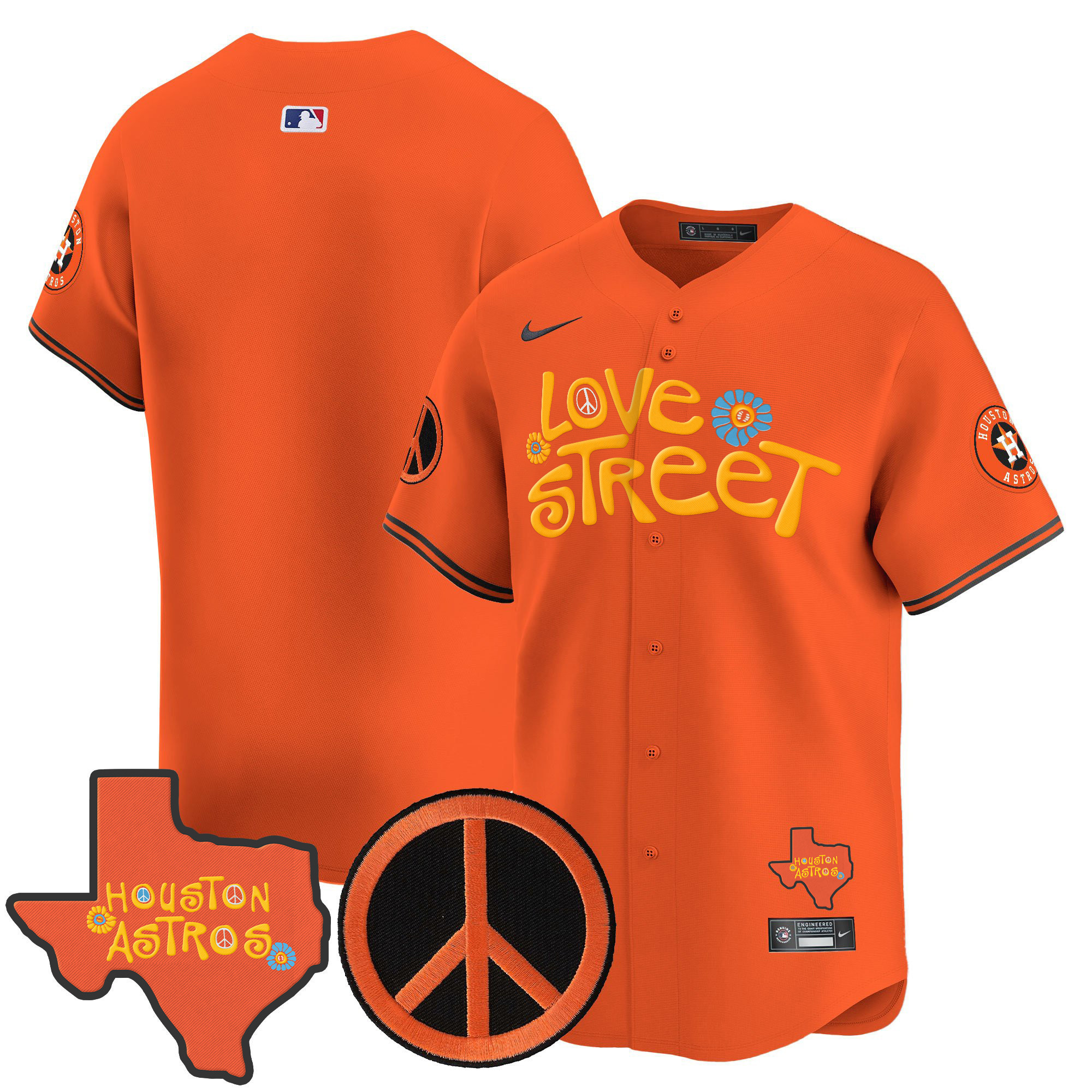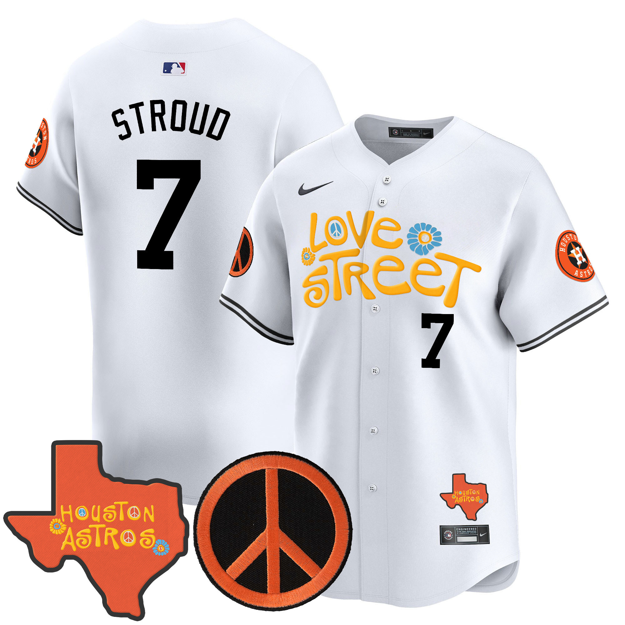 Men’s Astros Love Street & Peace Sign Patch Vapor Premier Limited Jersey V3 – All Stitched