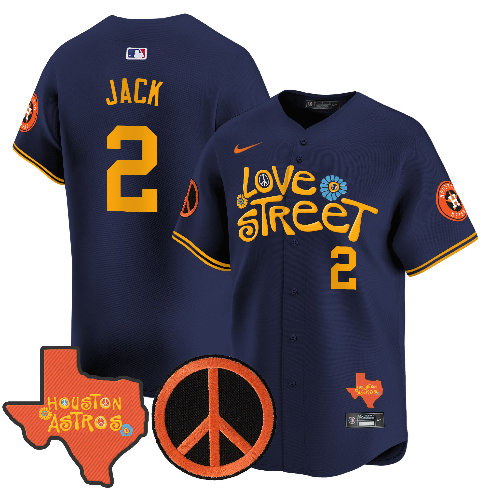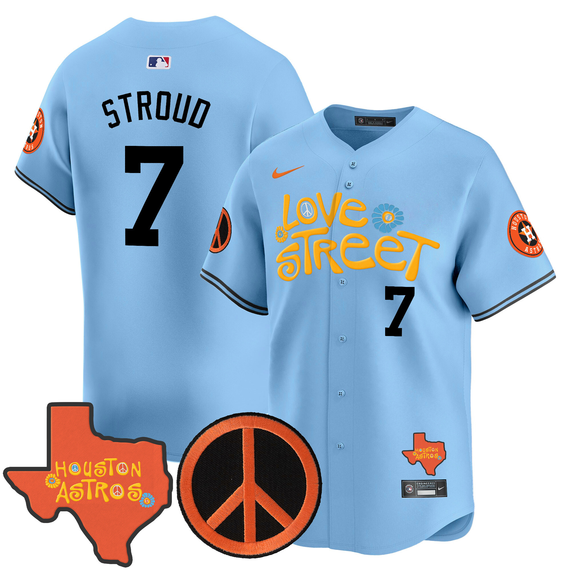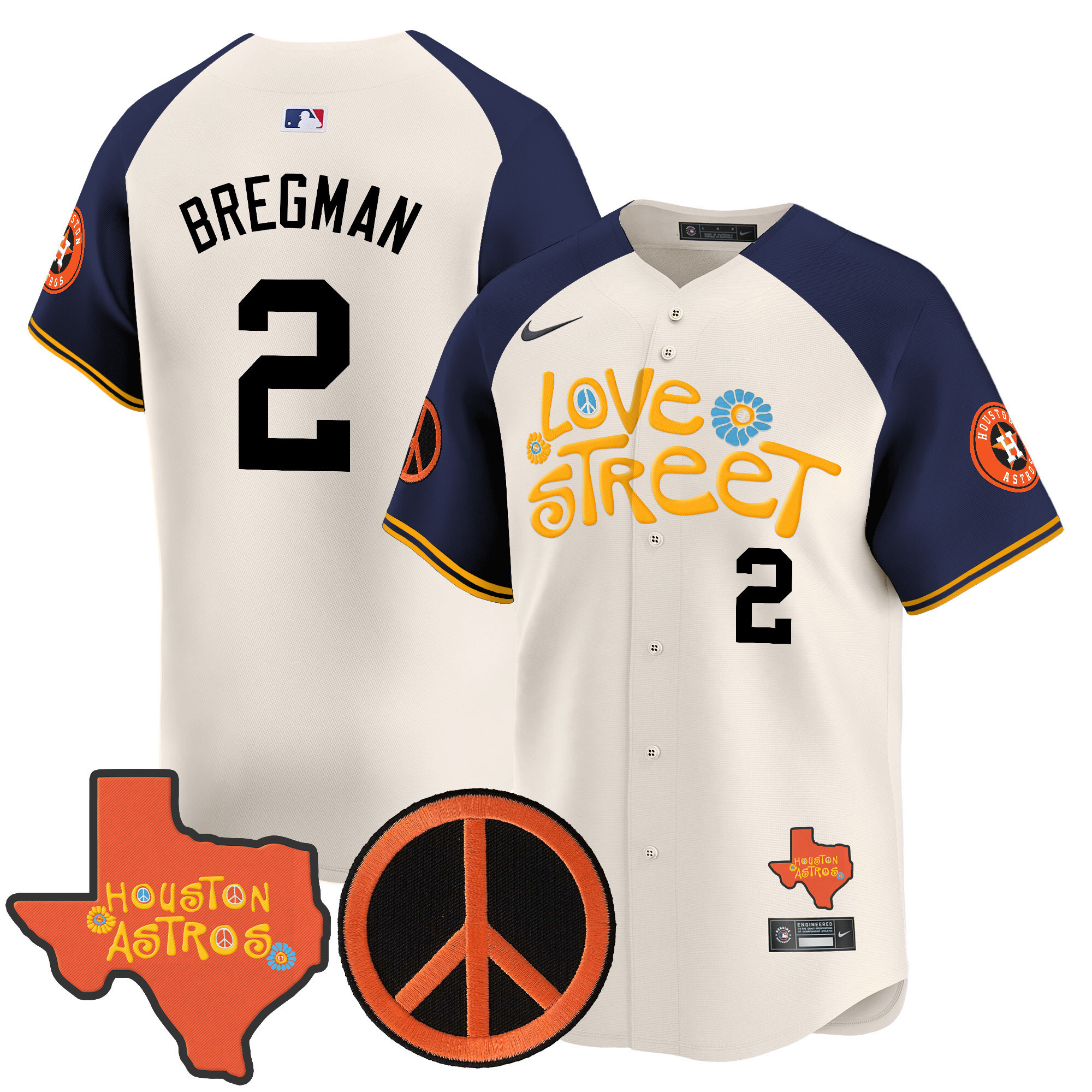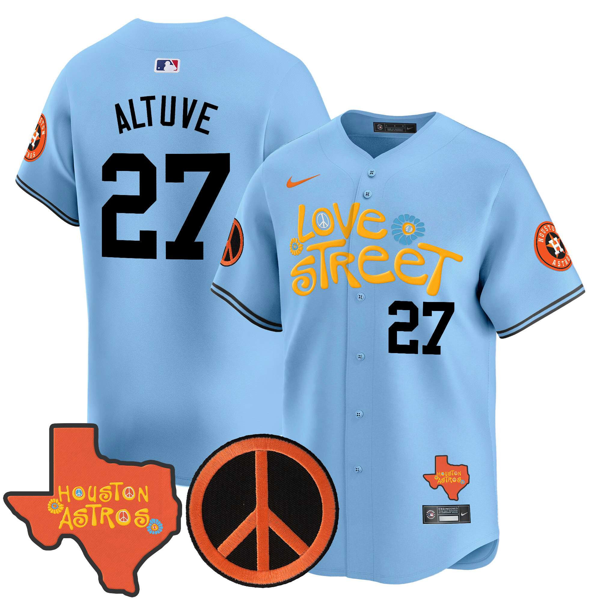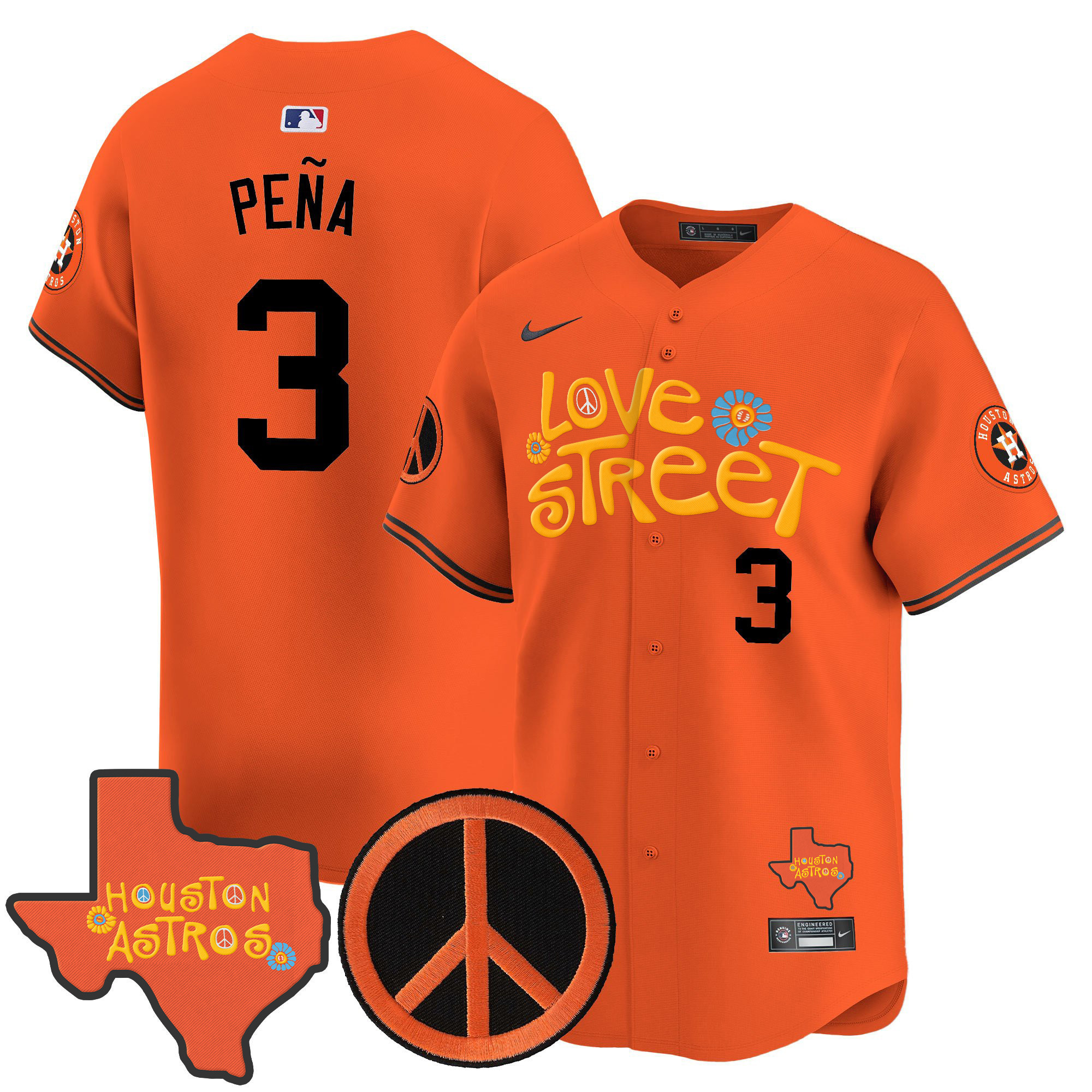 Men’s Astros Love Street & Peace Sign Patch Vapor Premier Limited Jersey V3 – All Stitched