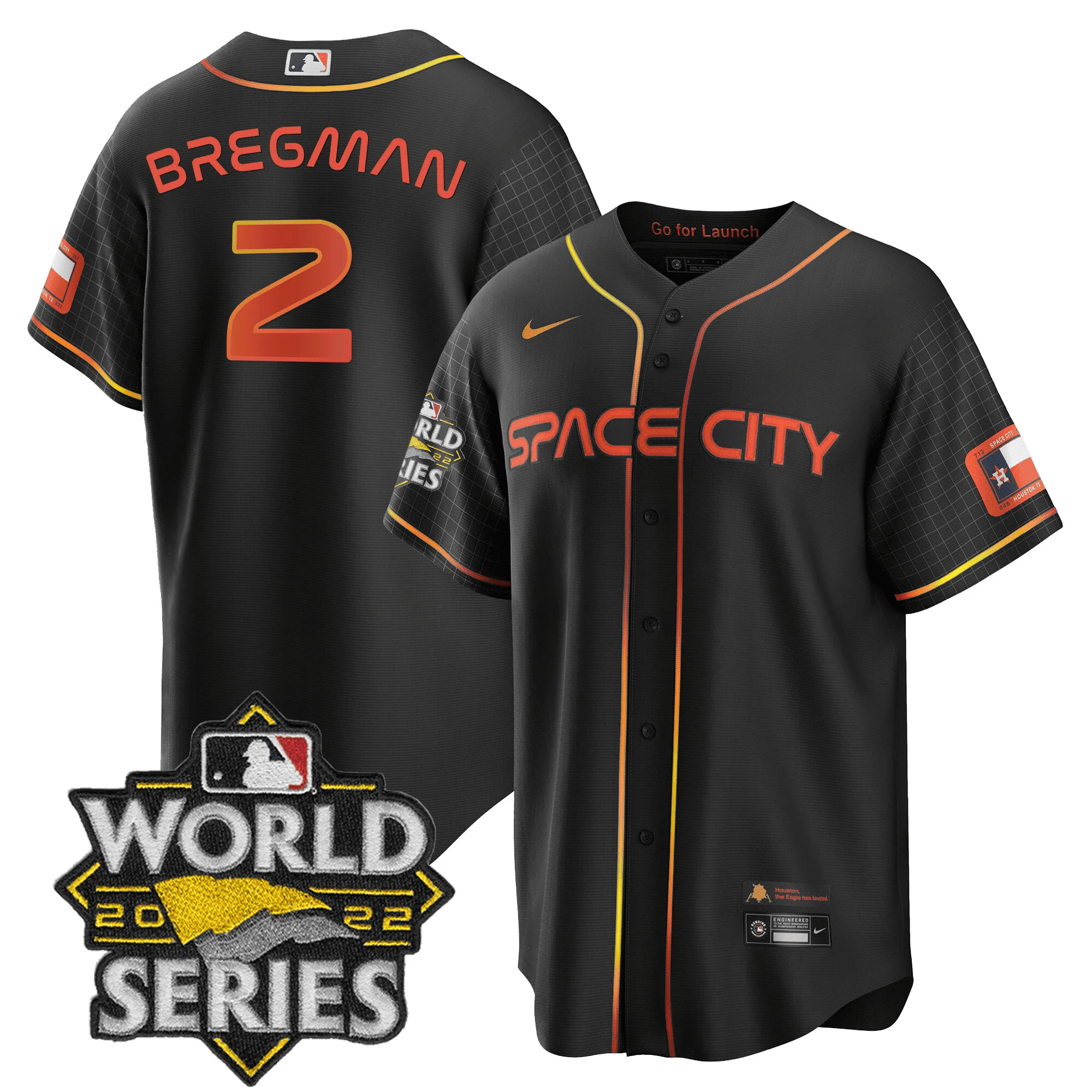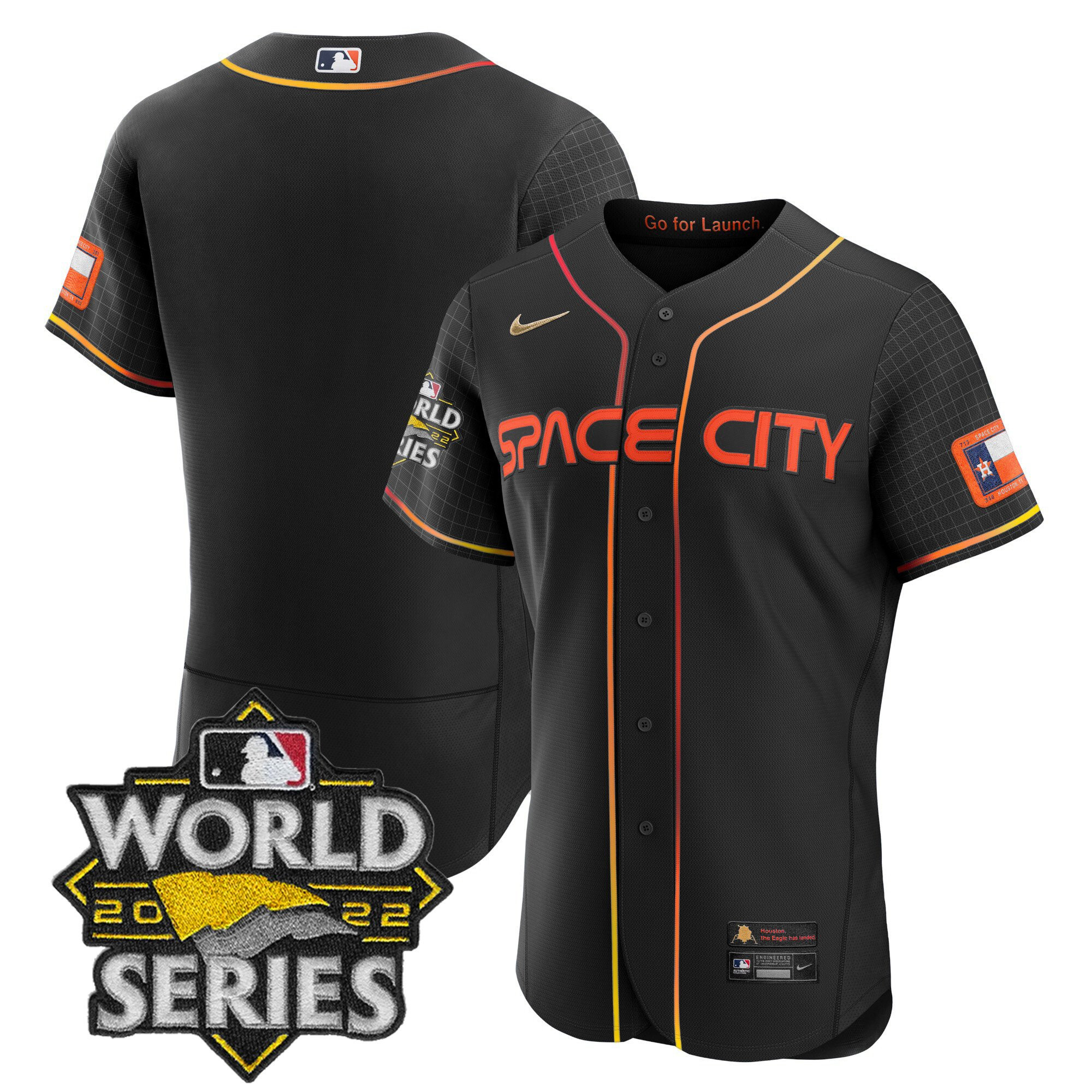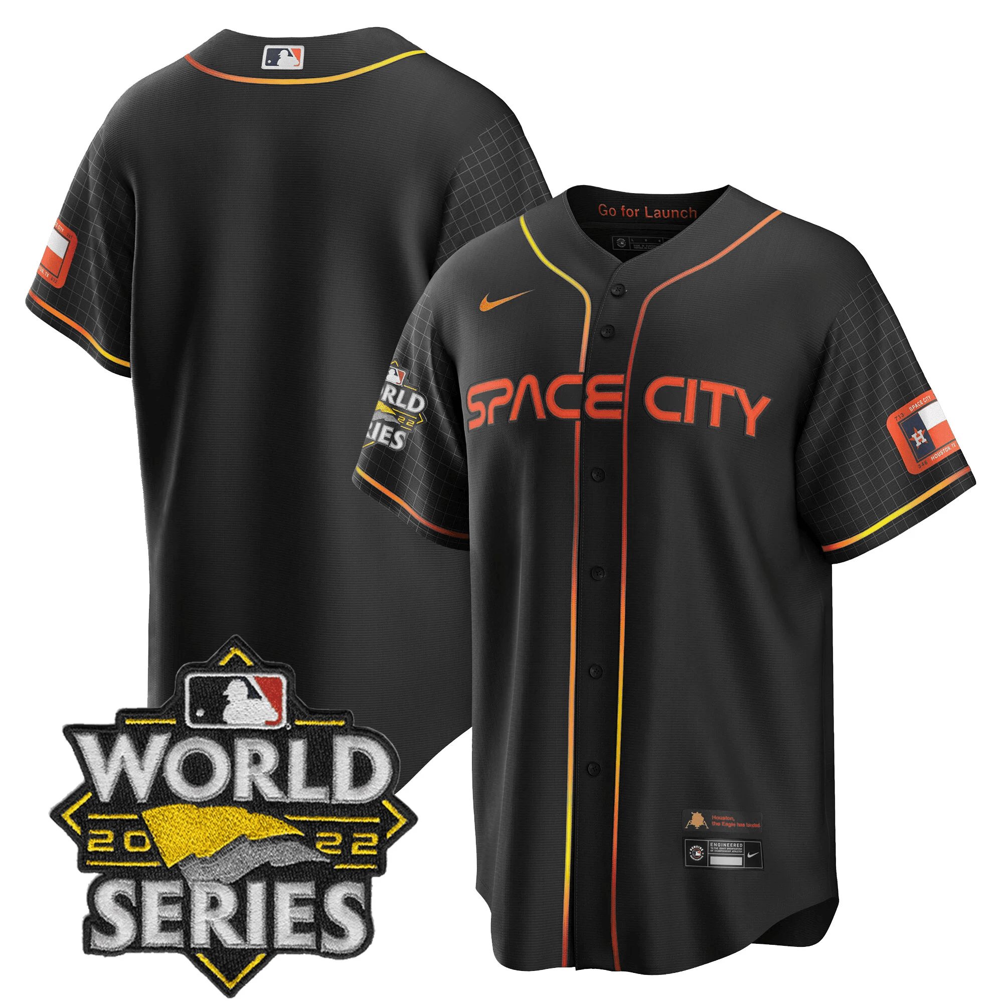 Men’s Astros Space City Black & White Jersey – All Stitched