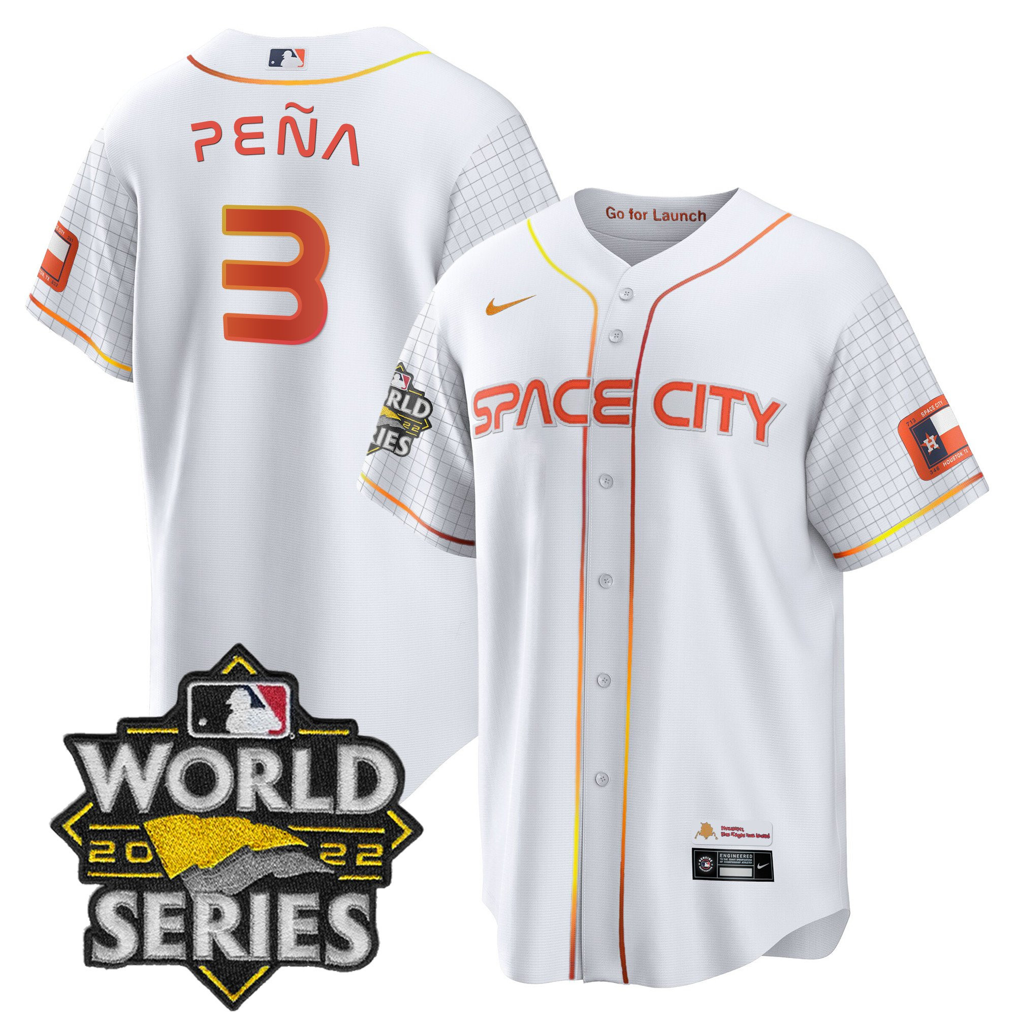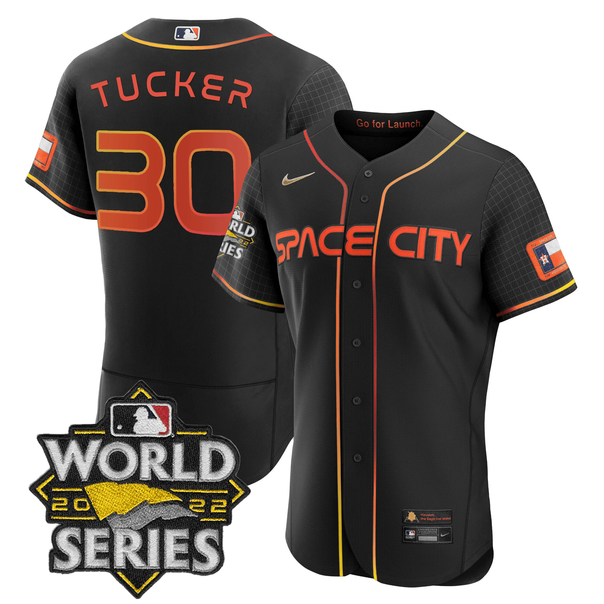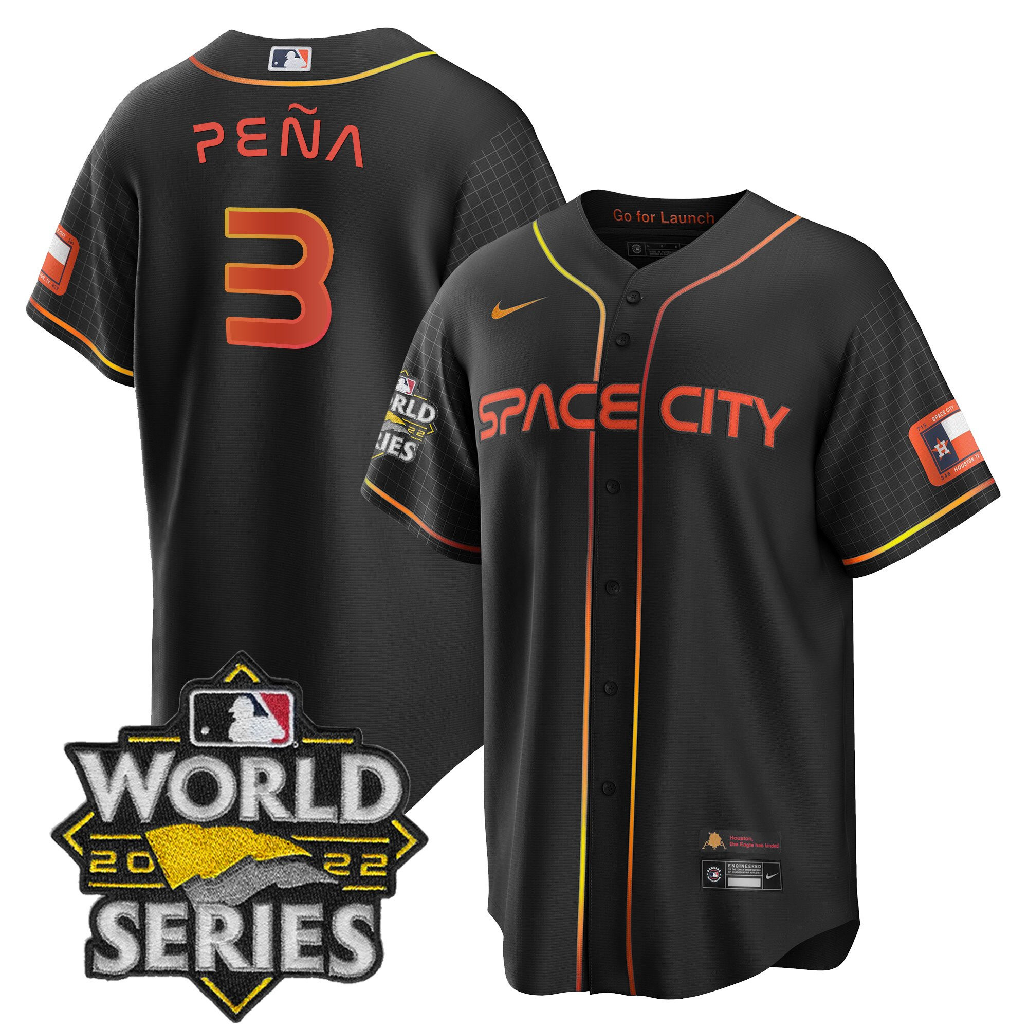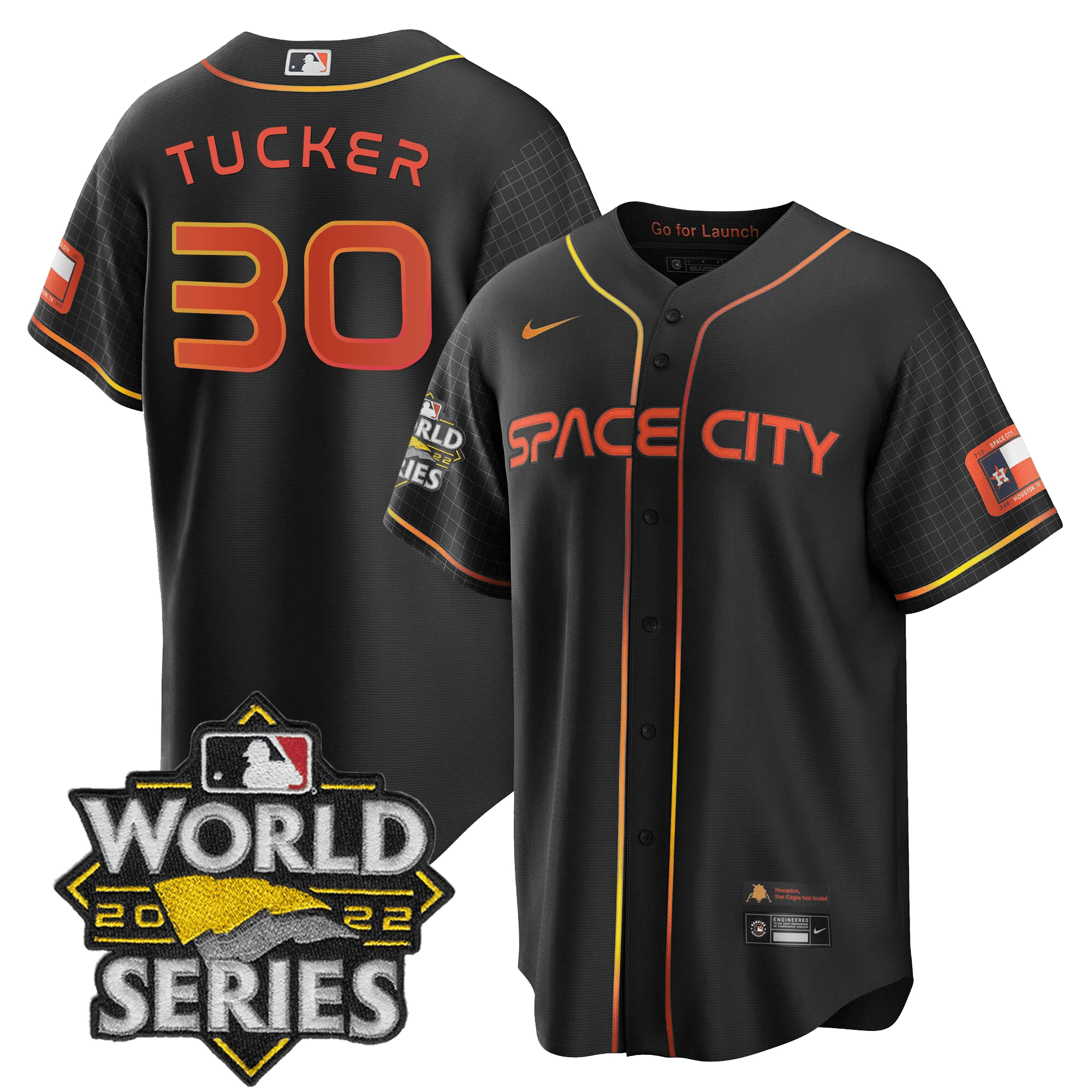 Men’s Astros Space City Black & White Jersey – All Stitched