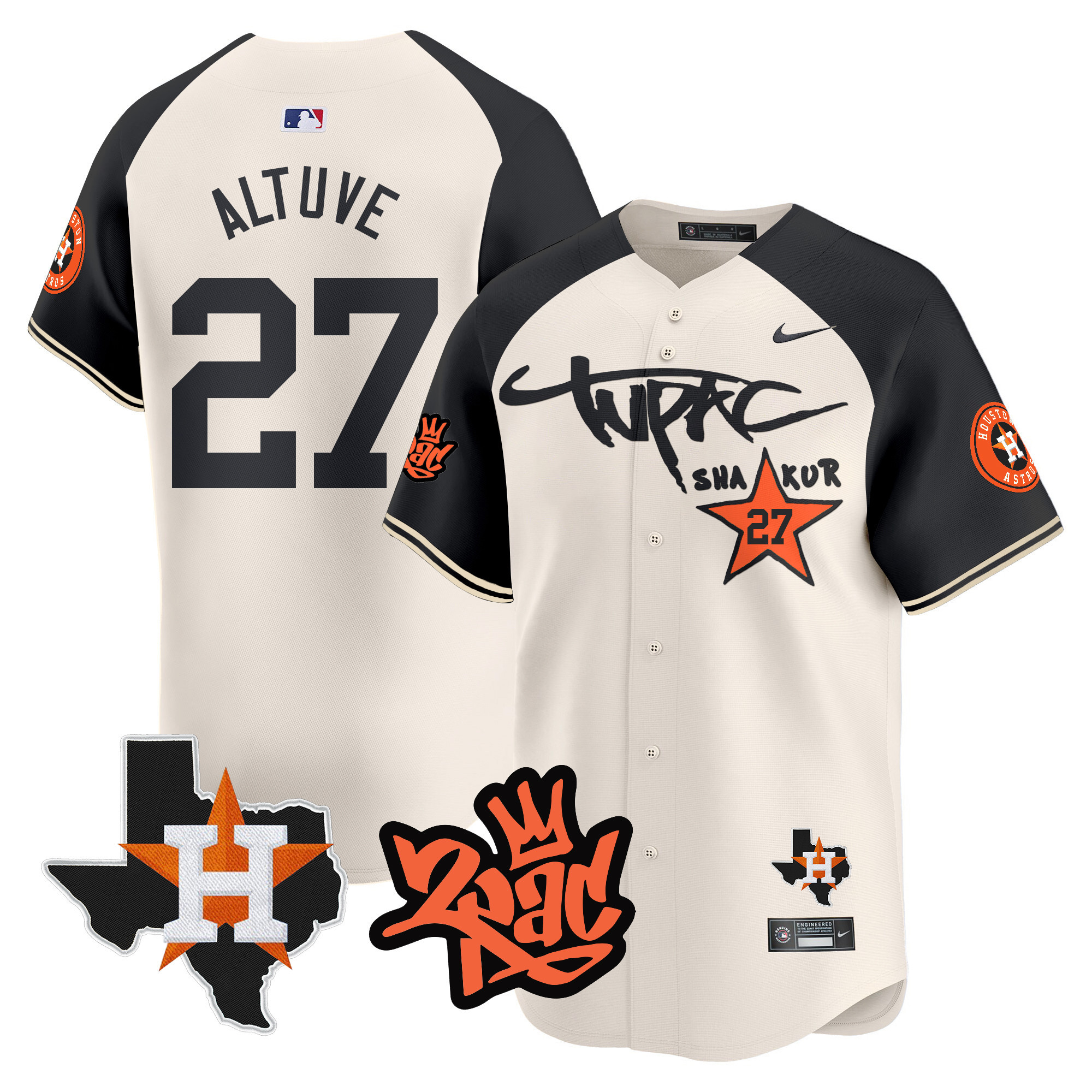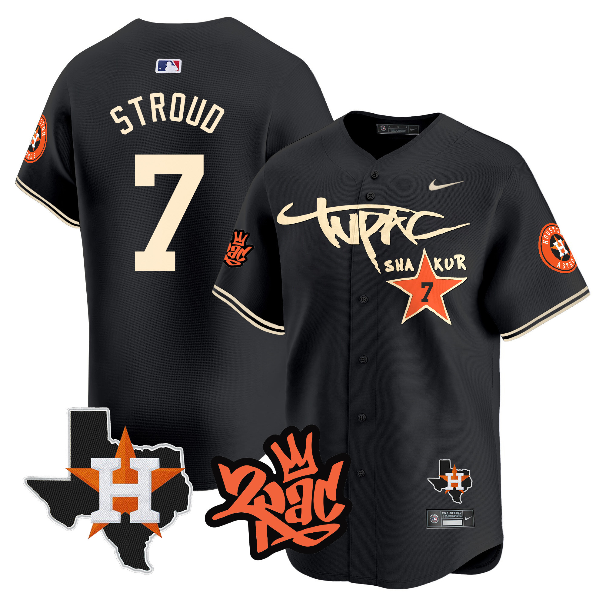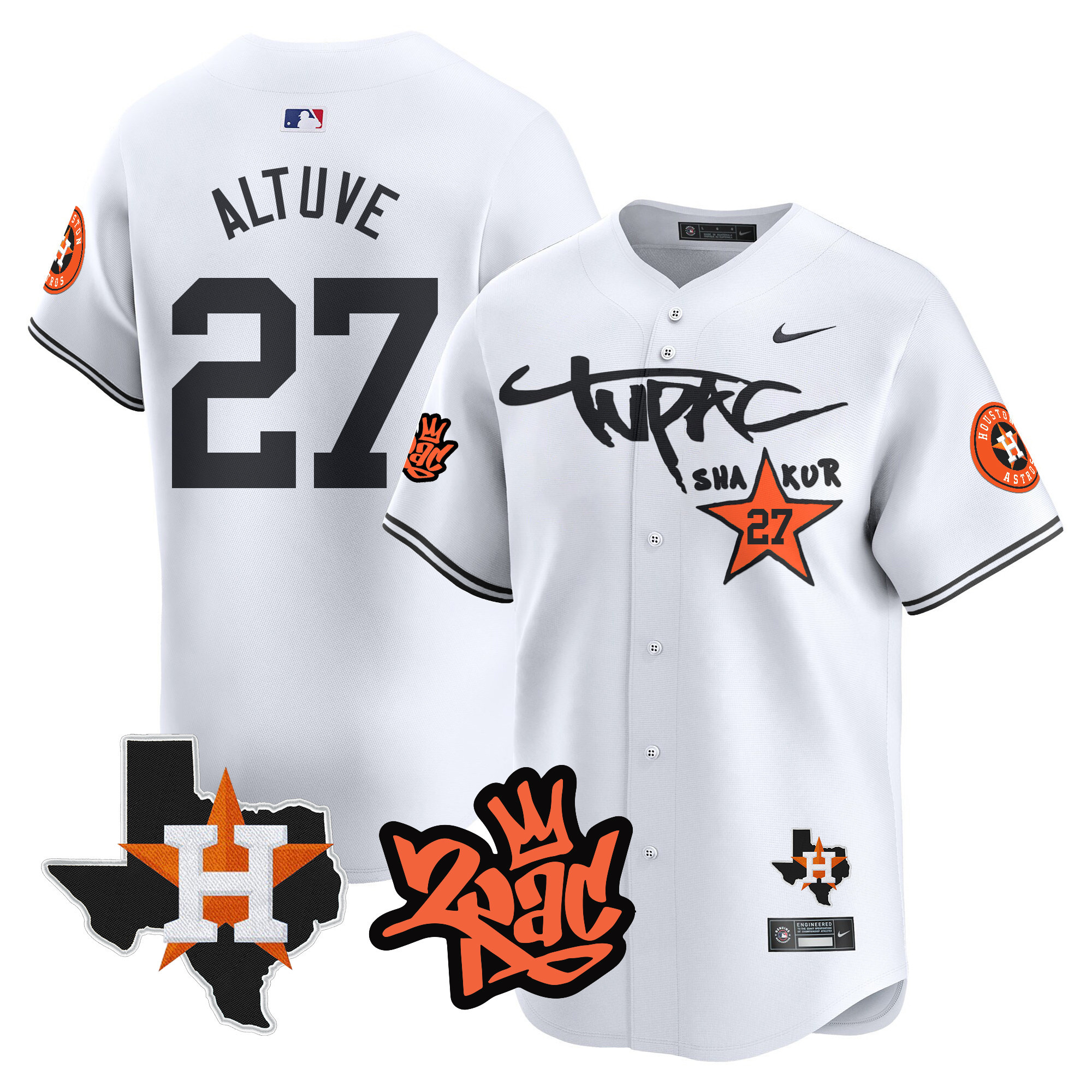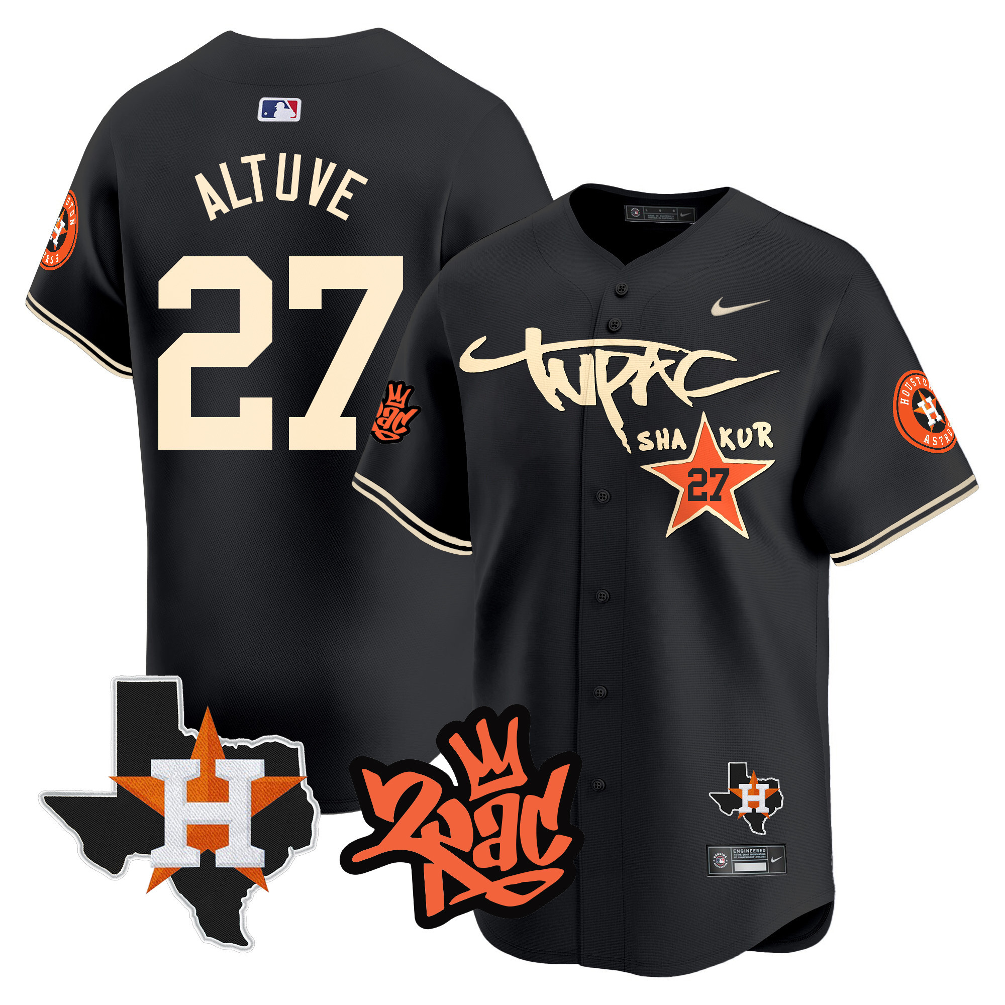 Men’s Astros Tupac Shakur Vapor Premier Limited Jersey – All Stitched