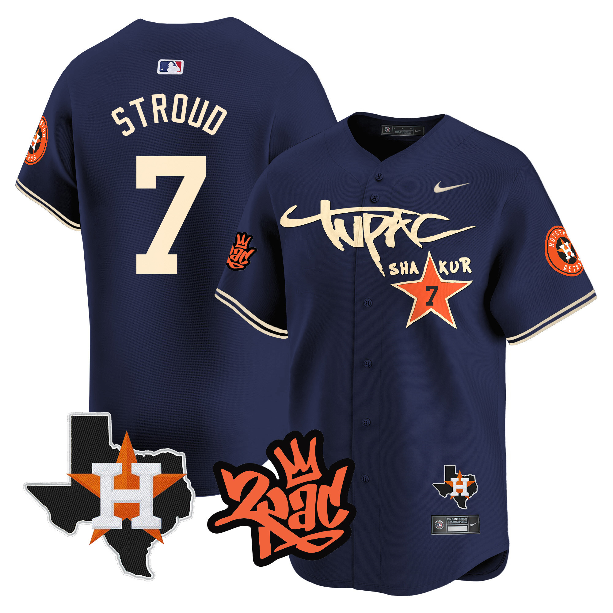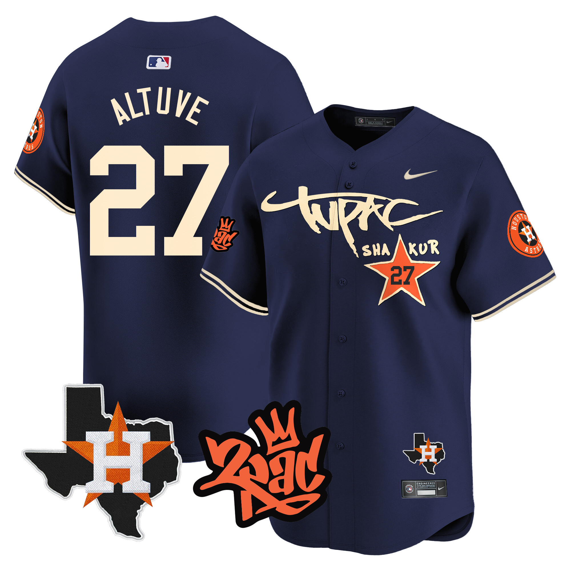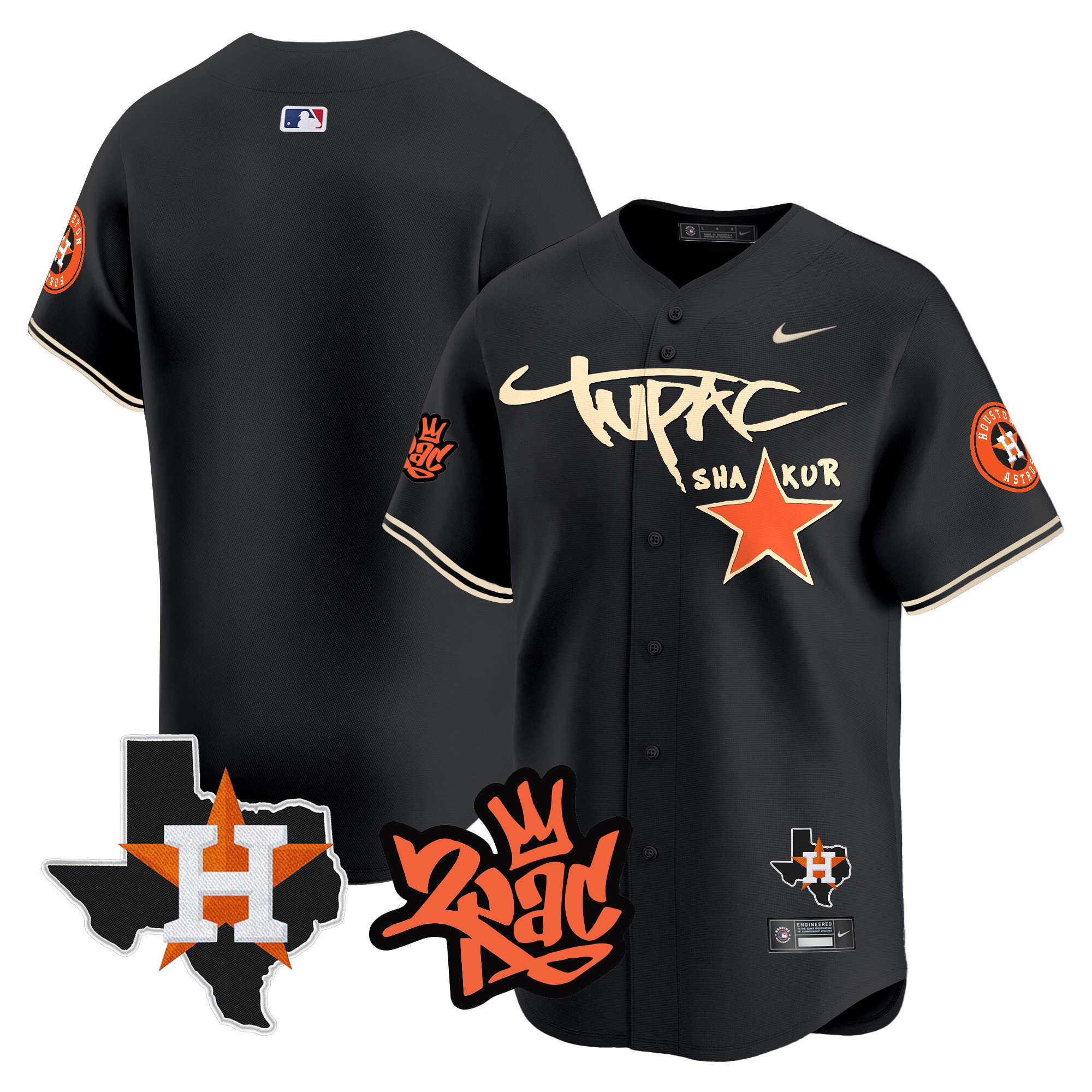 Men’s Astros Tupac Shakur Vapor Premier Limited Jersey – All Stitched