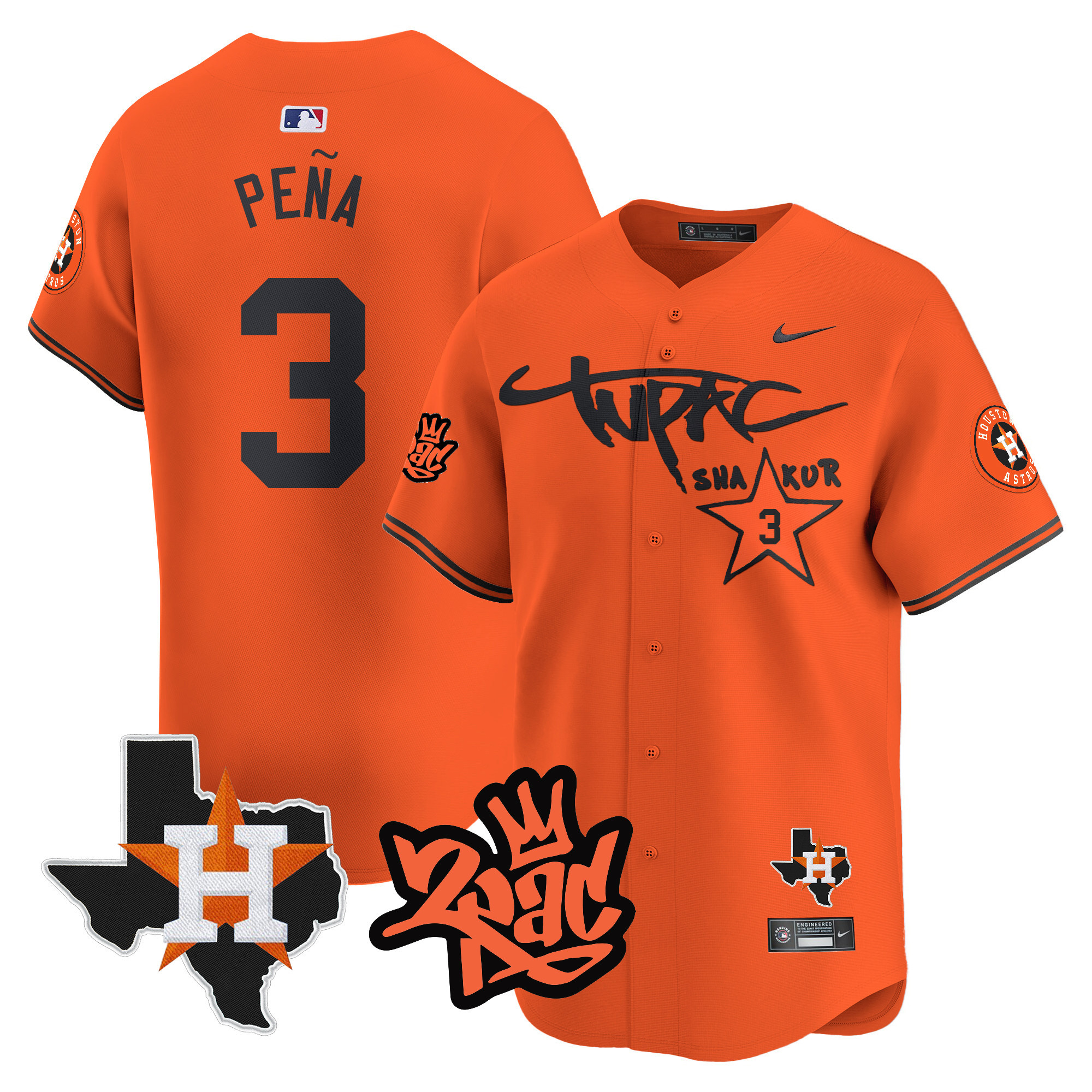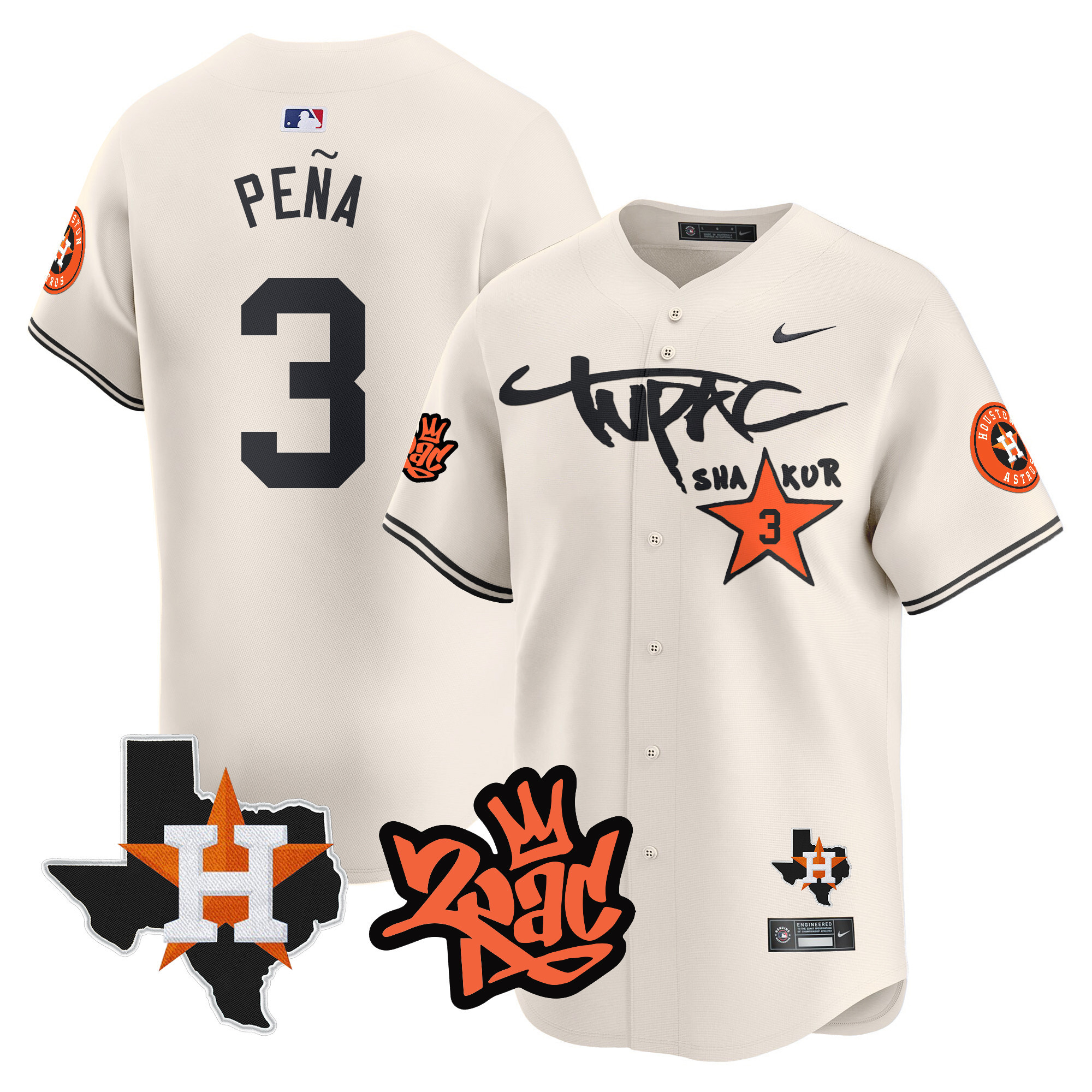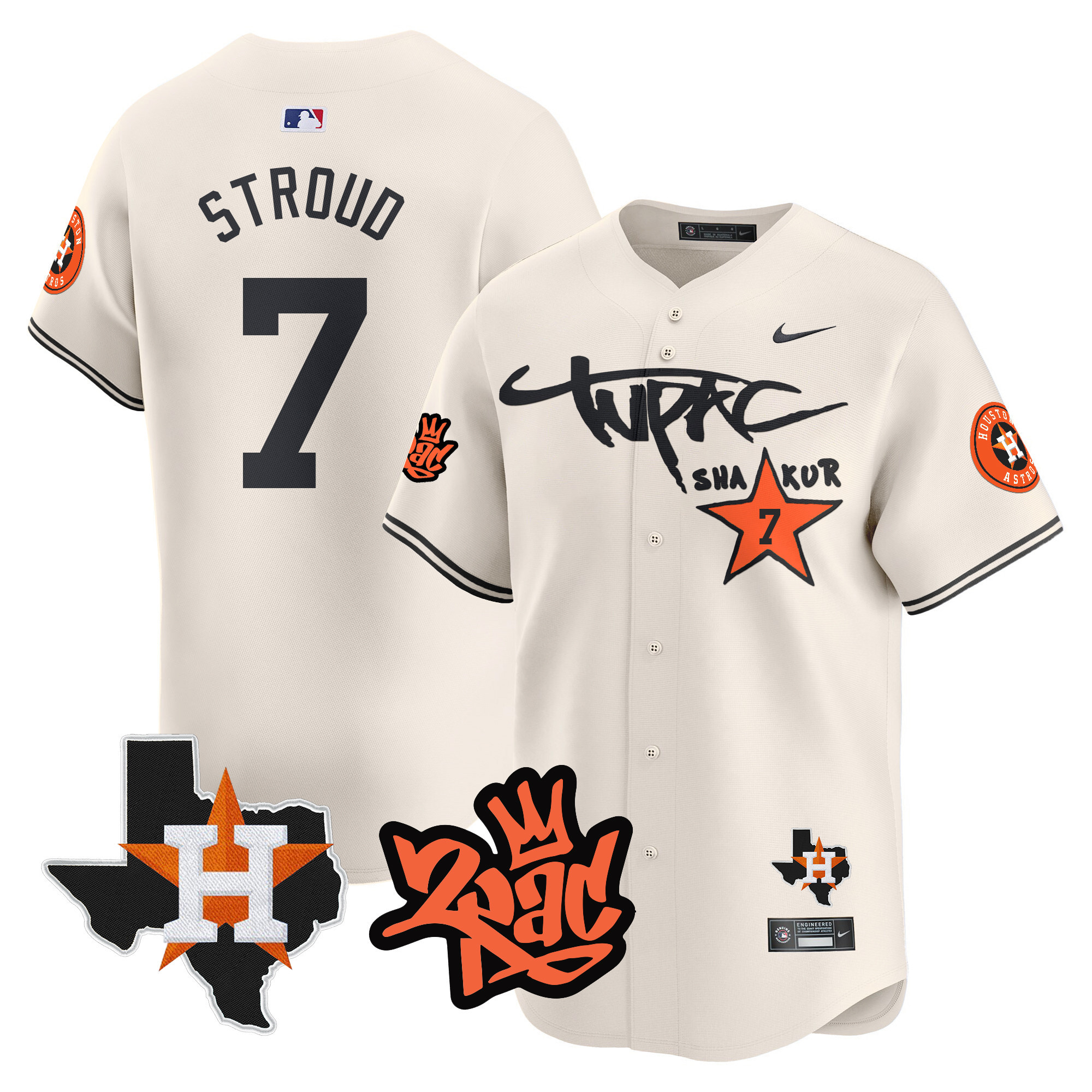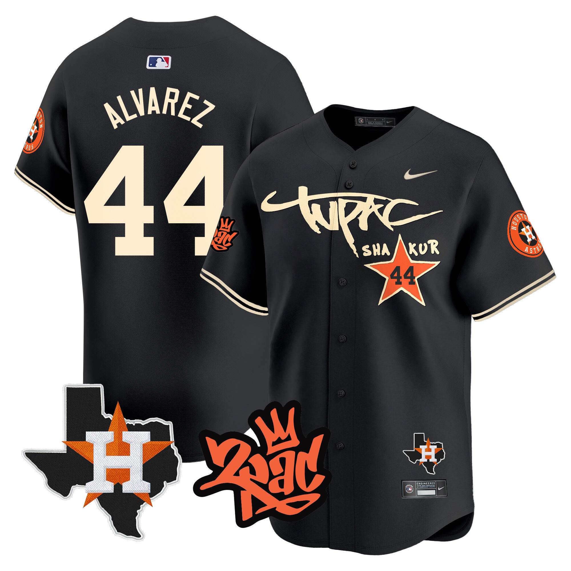 Men’s Astros Tupac Shakur Vapor Premier Limited Jersey – All Stitched
