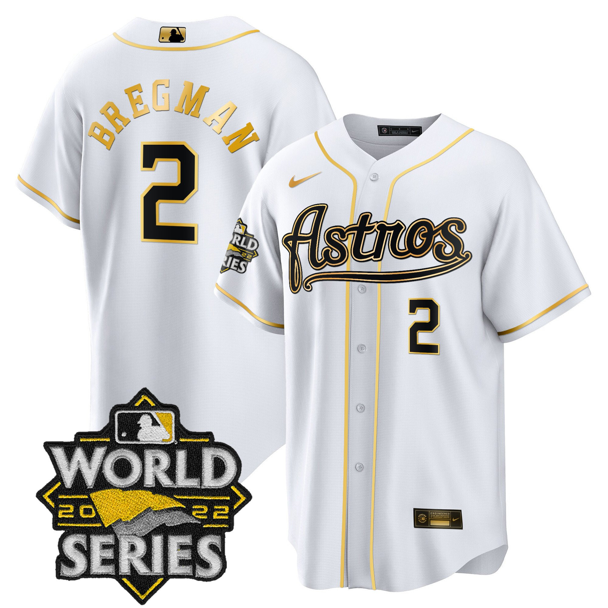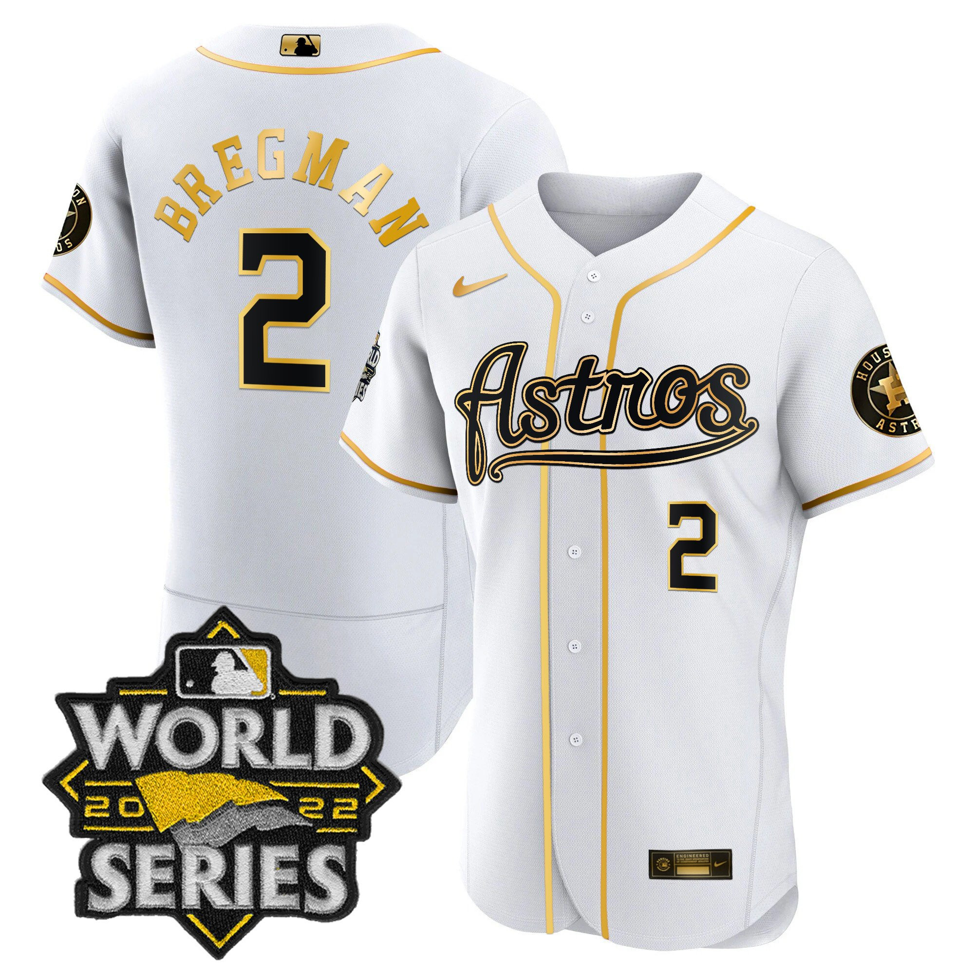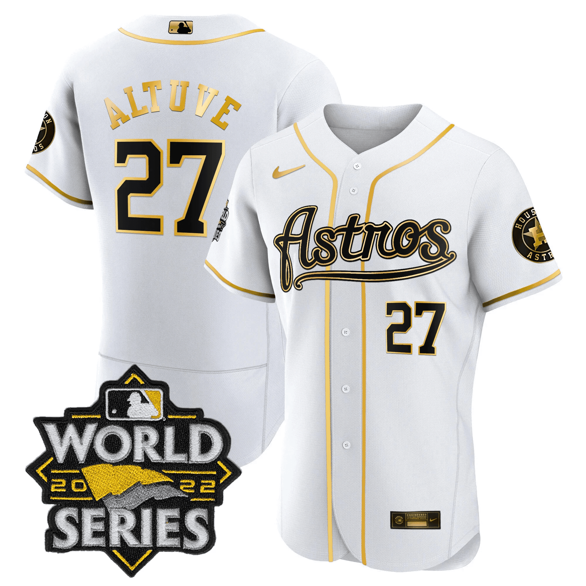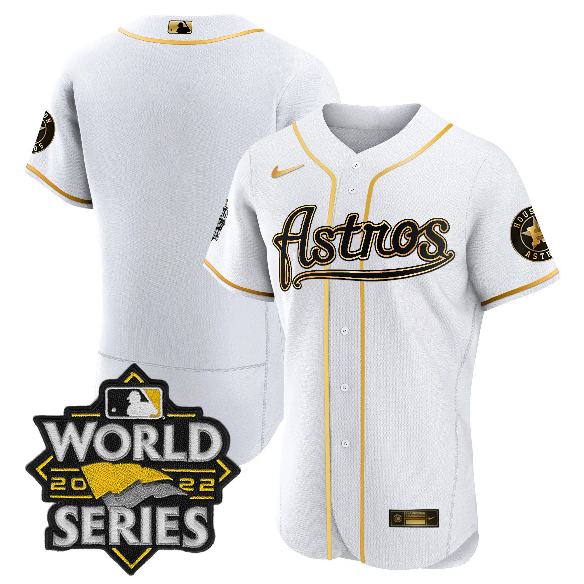 Men’s Astros World Series & Throwback Patch Gold Jersey V2 – All Stitched