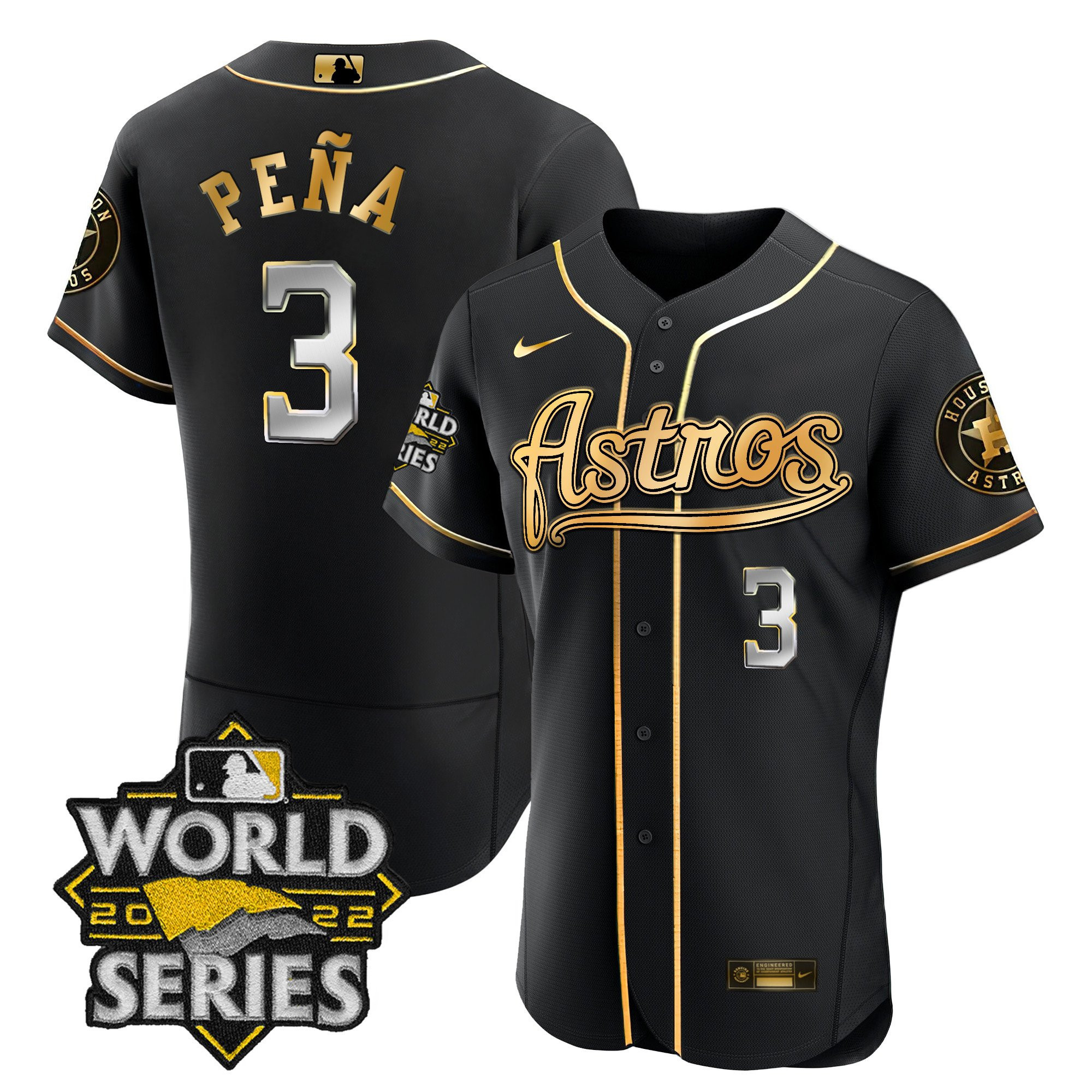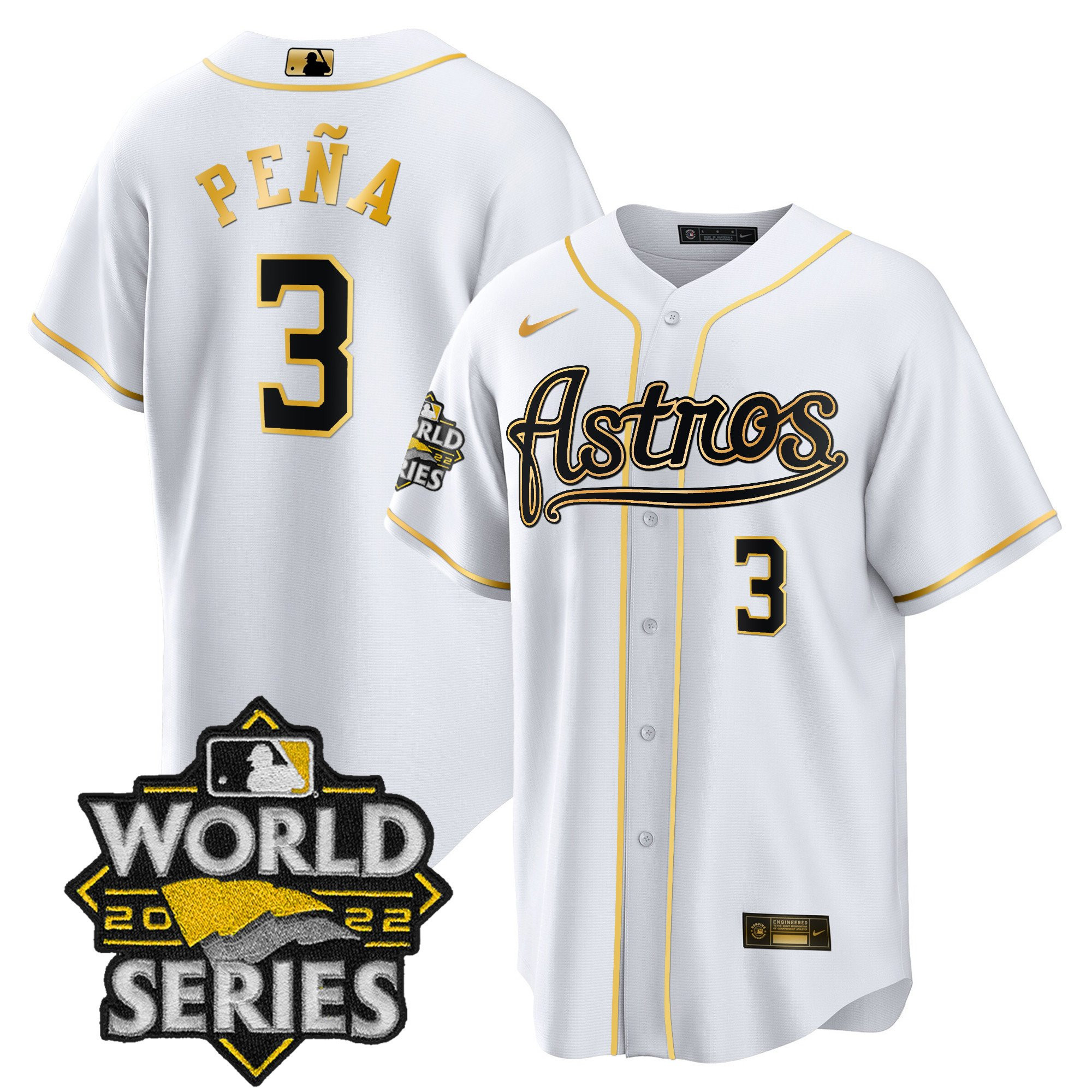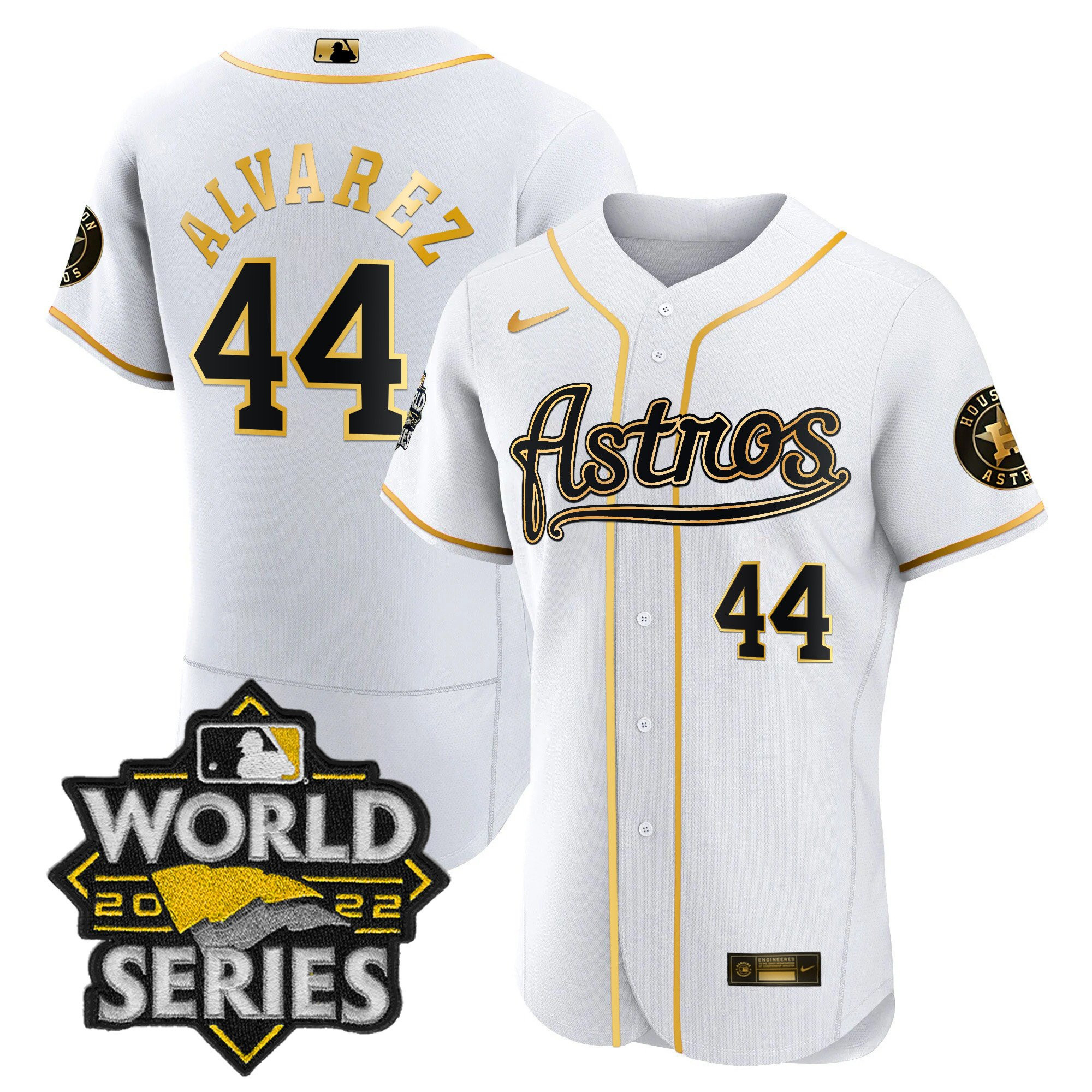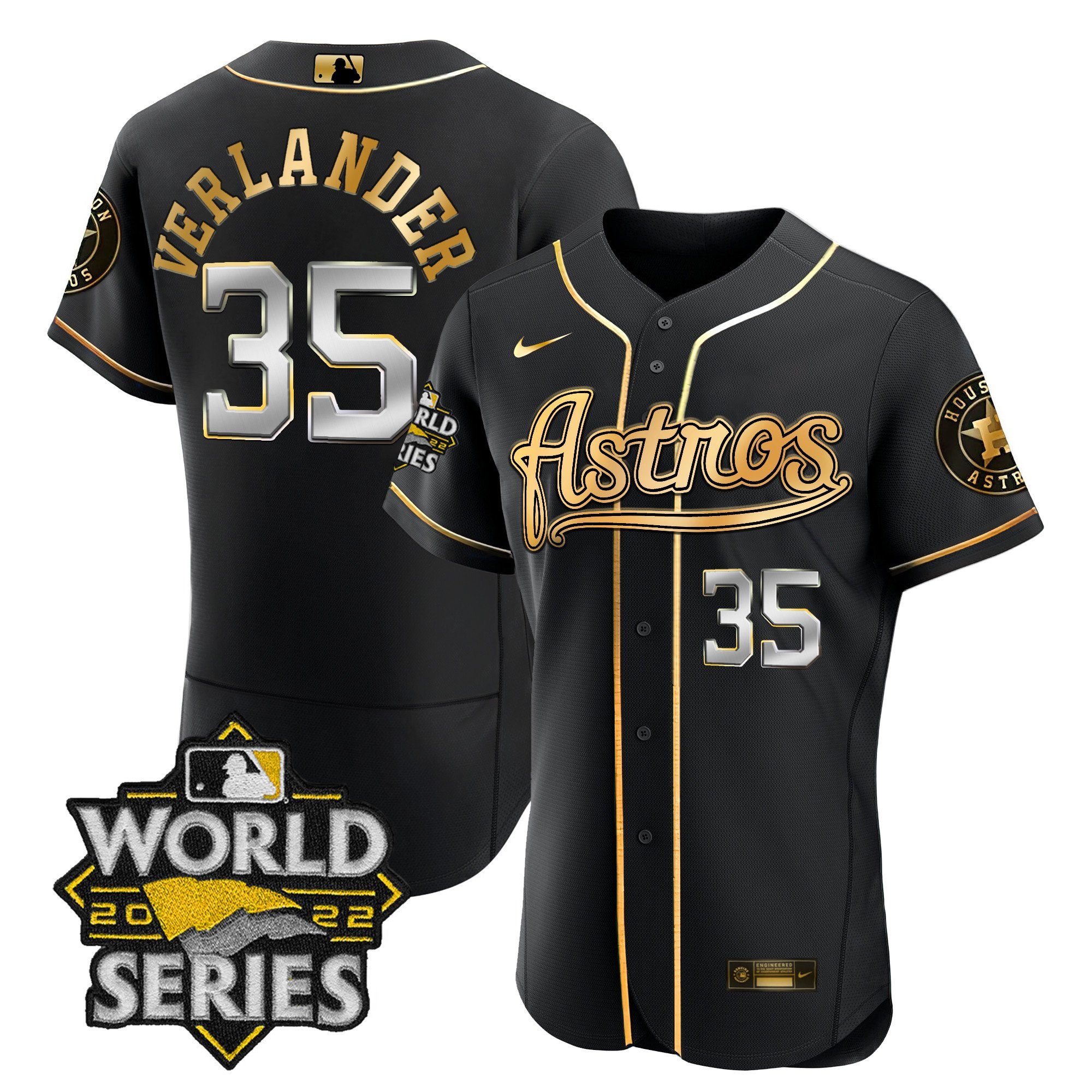 Men’s Astros World Series & Throwback Patch Gold Jersey V2 – All Stitched
