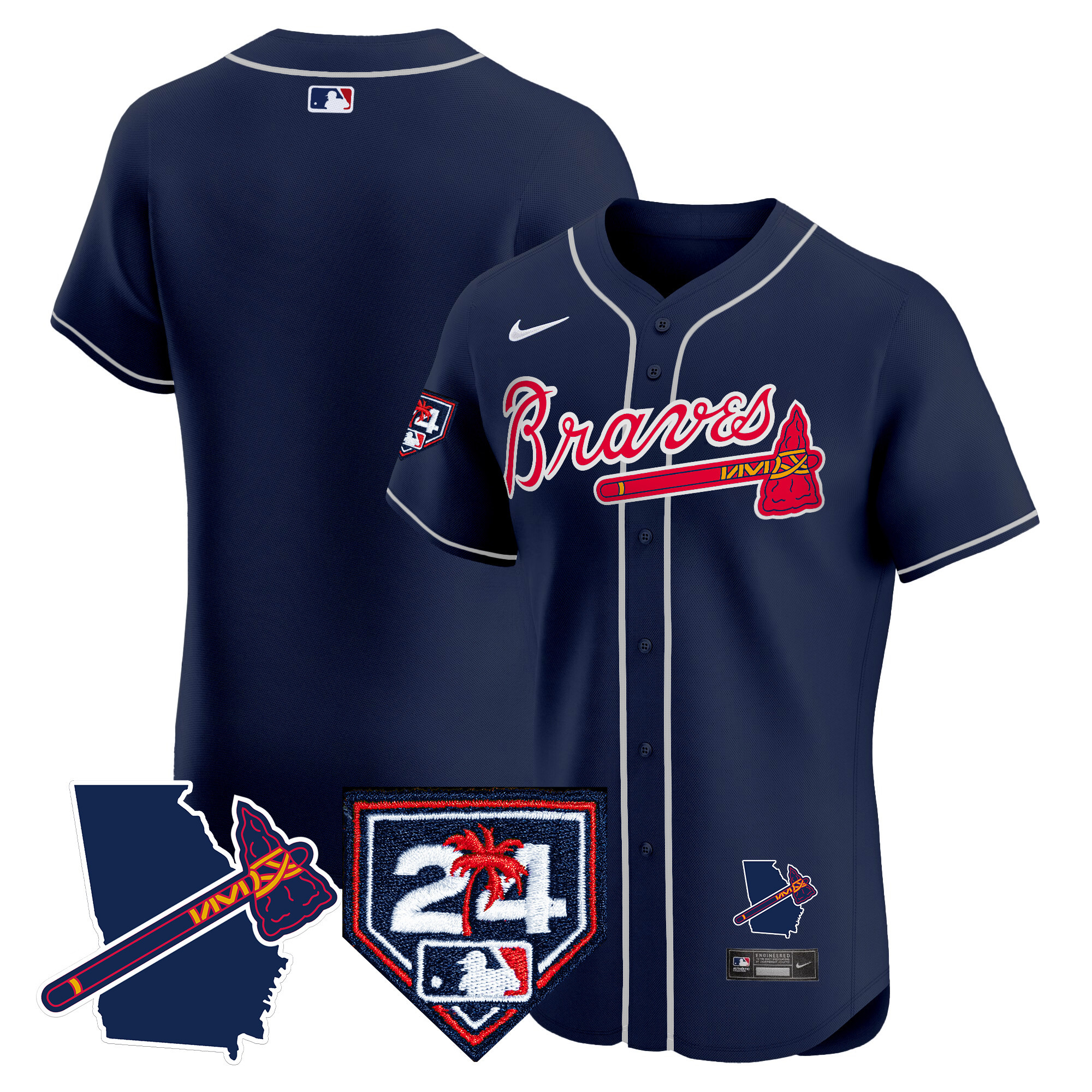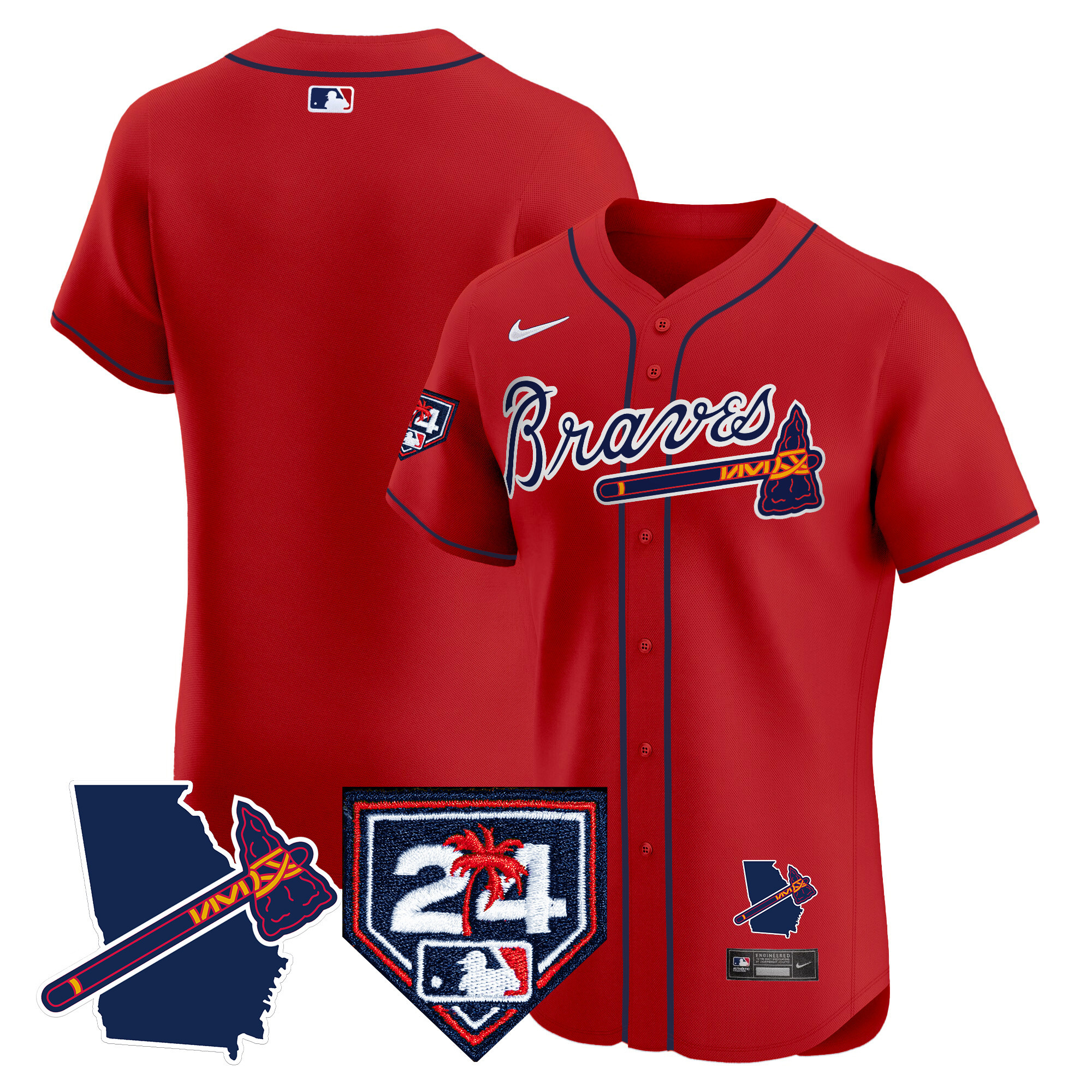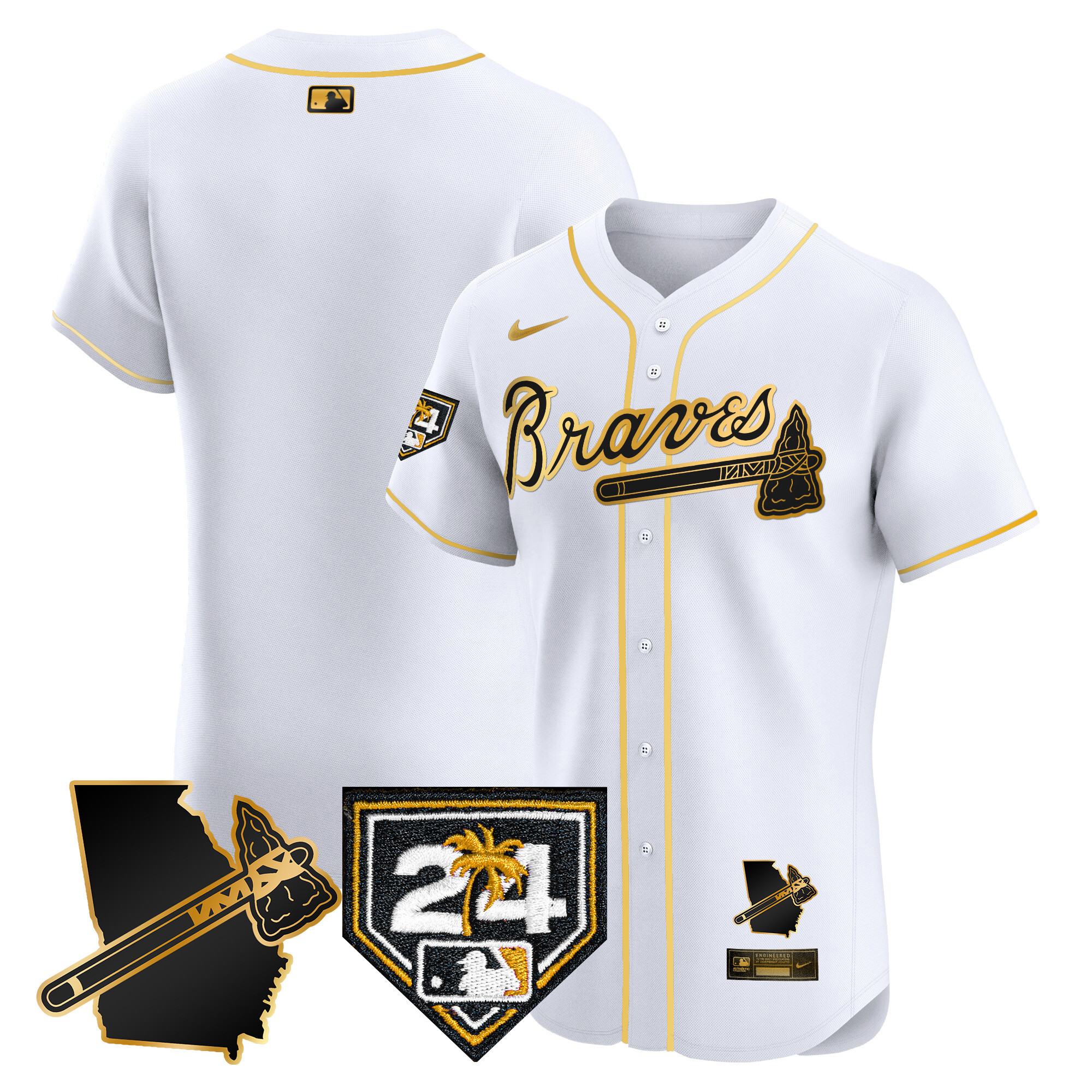 Men’s Atlanta Braves 2024 Spring Training & Georgia Patch Vapor Premier Elite Jersey – All Stitched