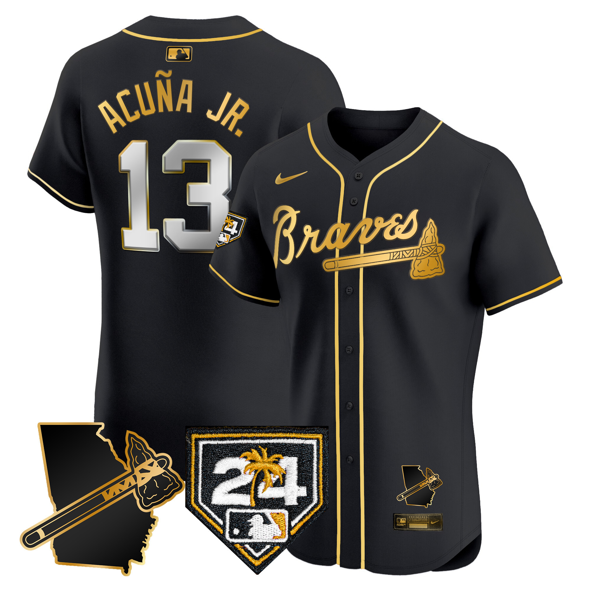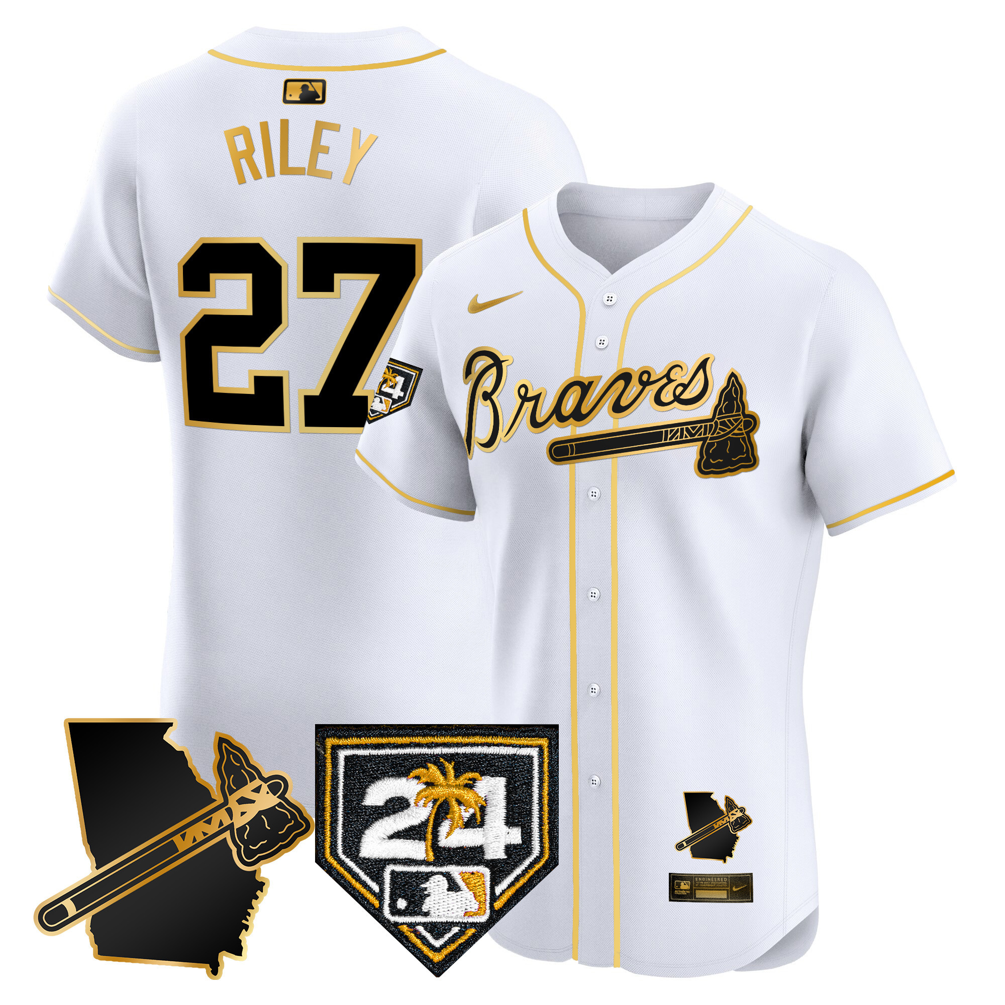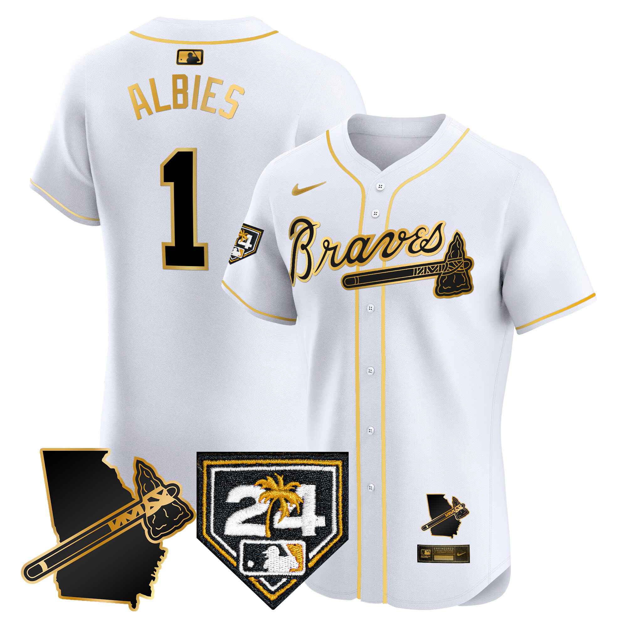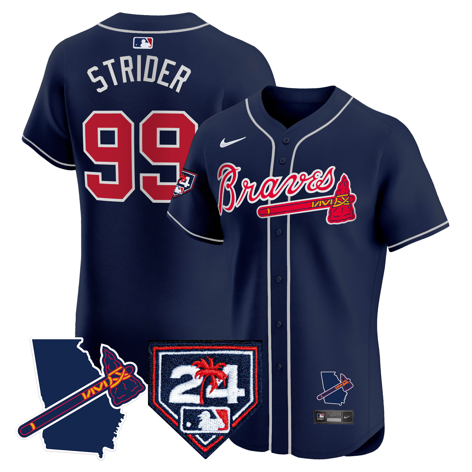 Men’s Atlanta Braves 2024 Spring Training & Georgia Patch Vapor Premier Elite Jersey – All Stitched