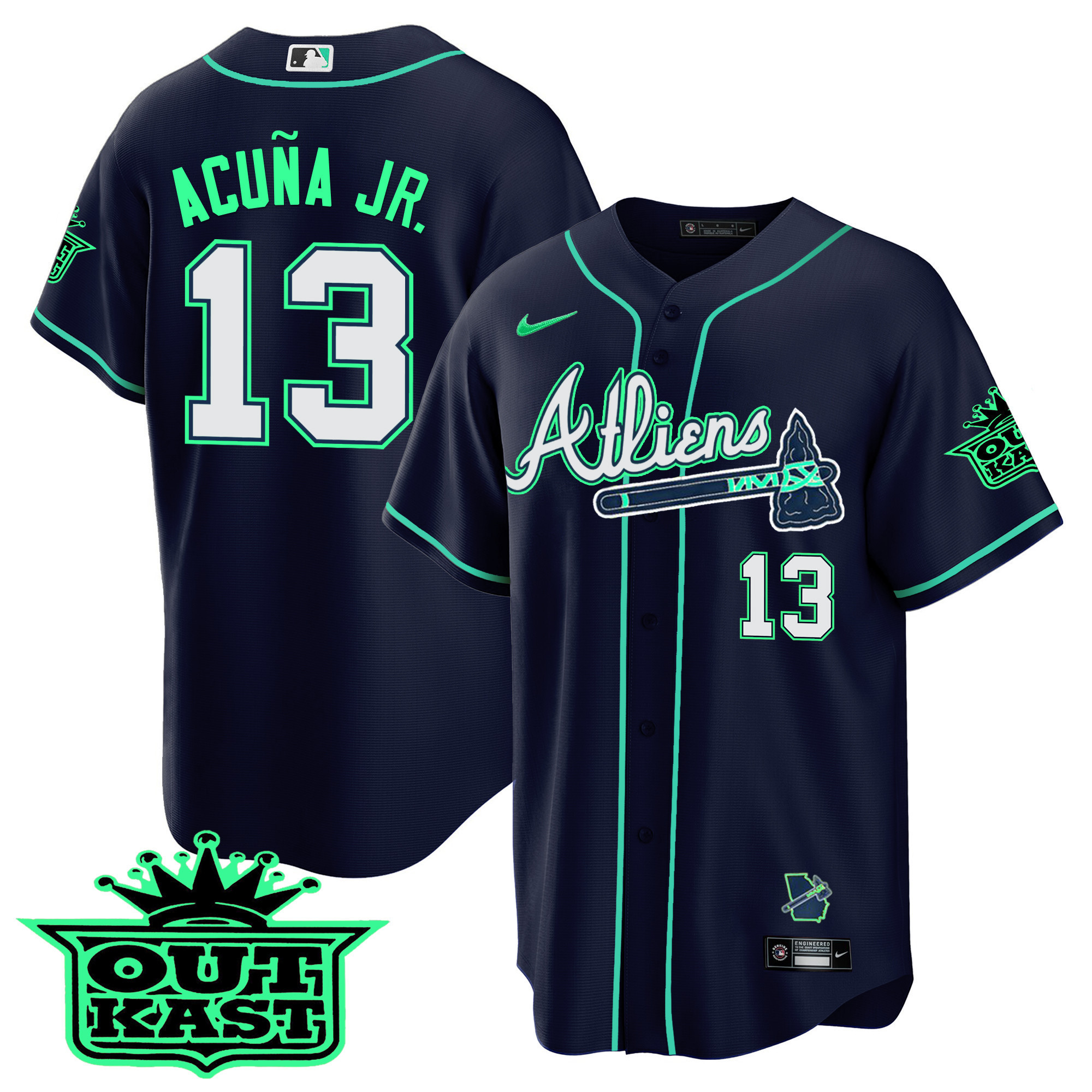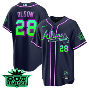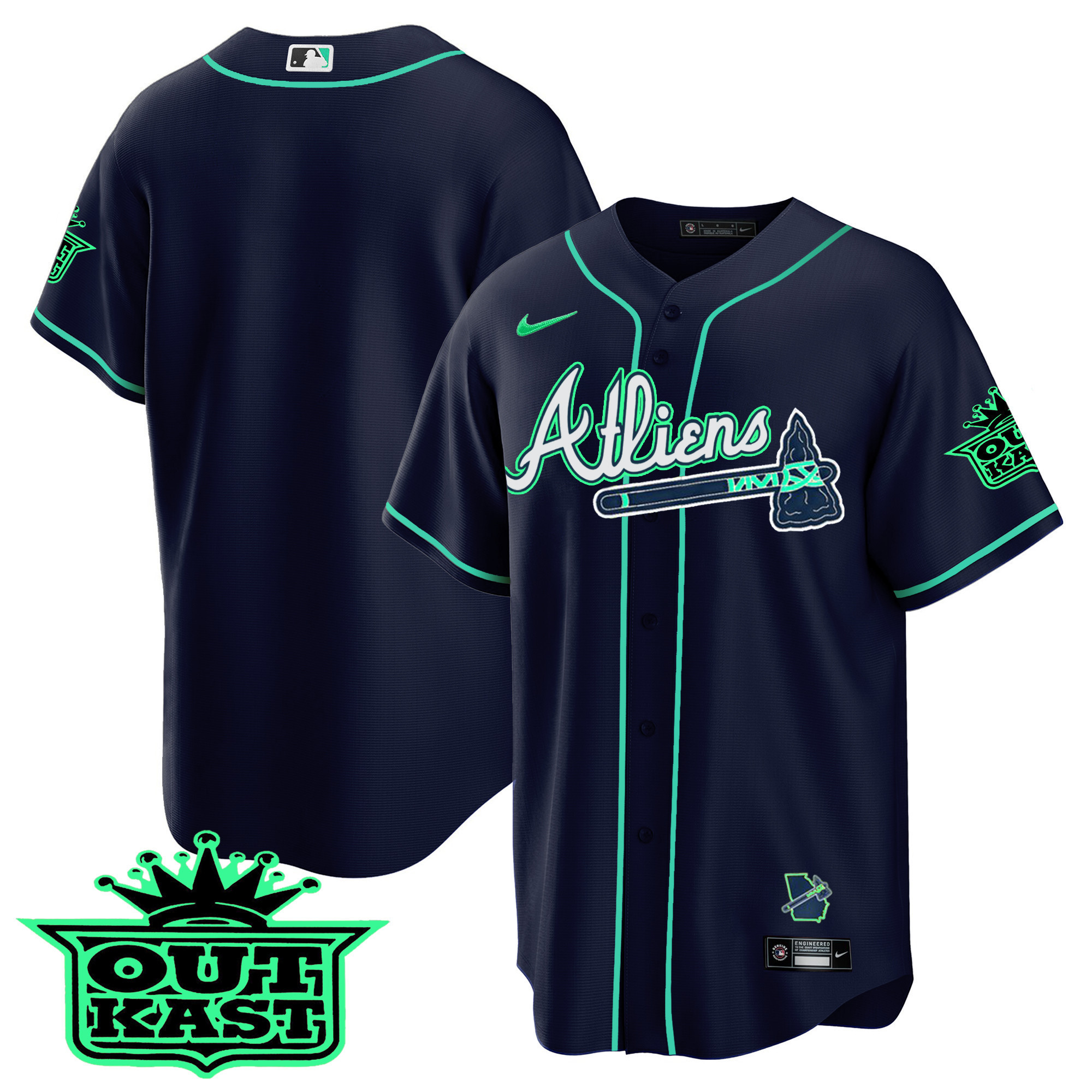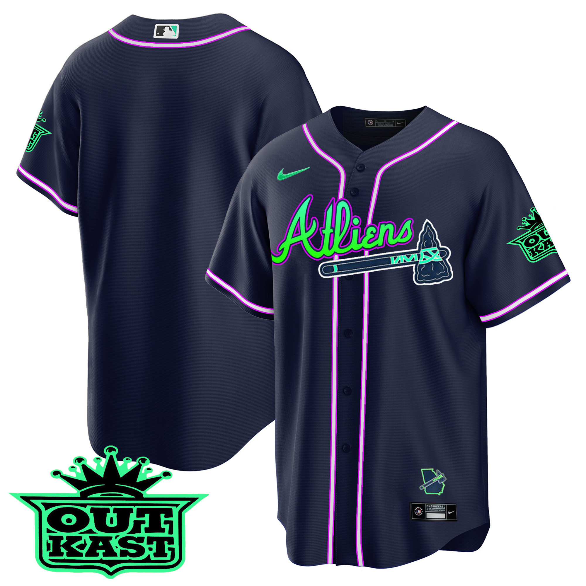 Men’s Atlanta Braves Atliens Cool Base Jersey – Galaxy Version – Stitched