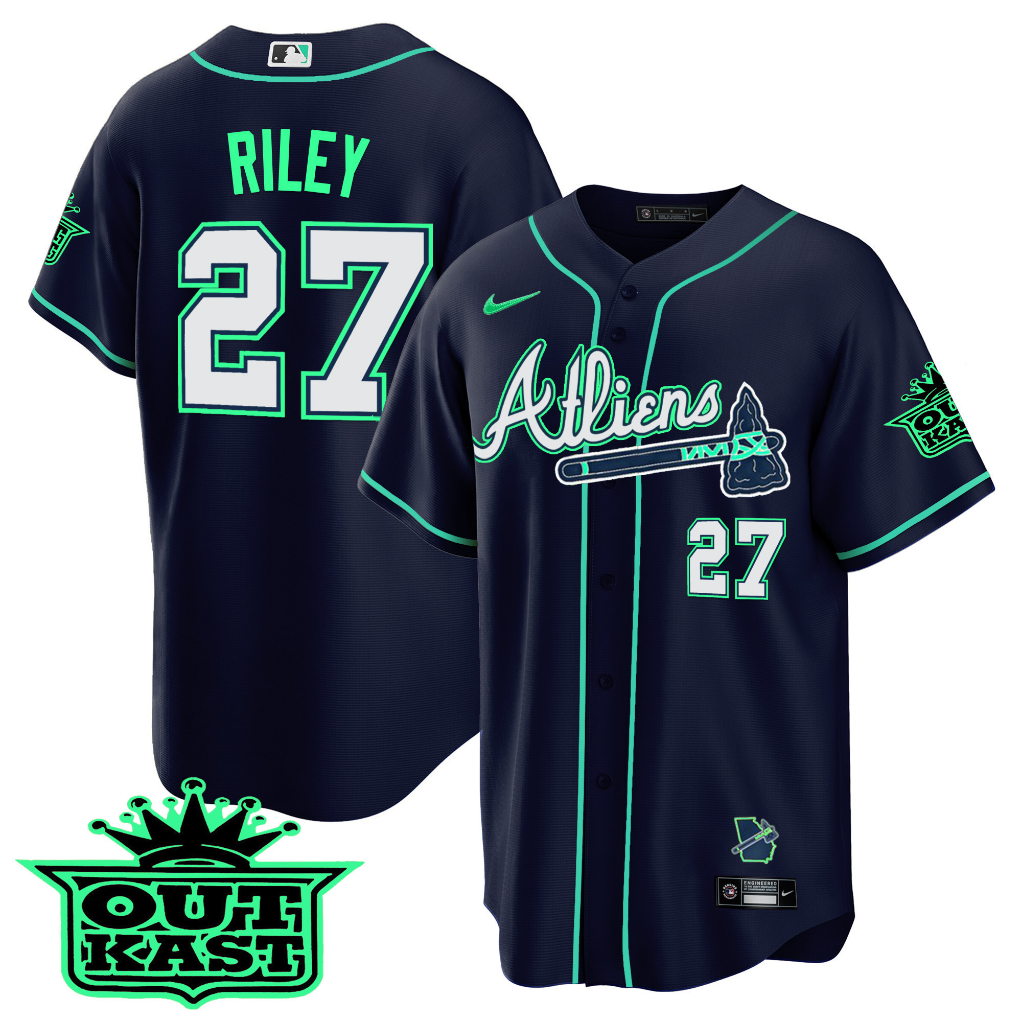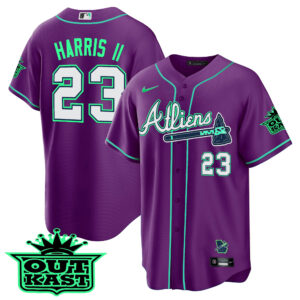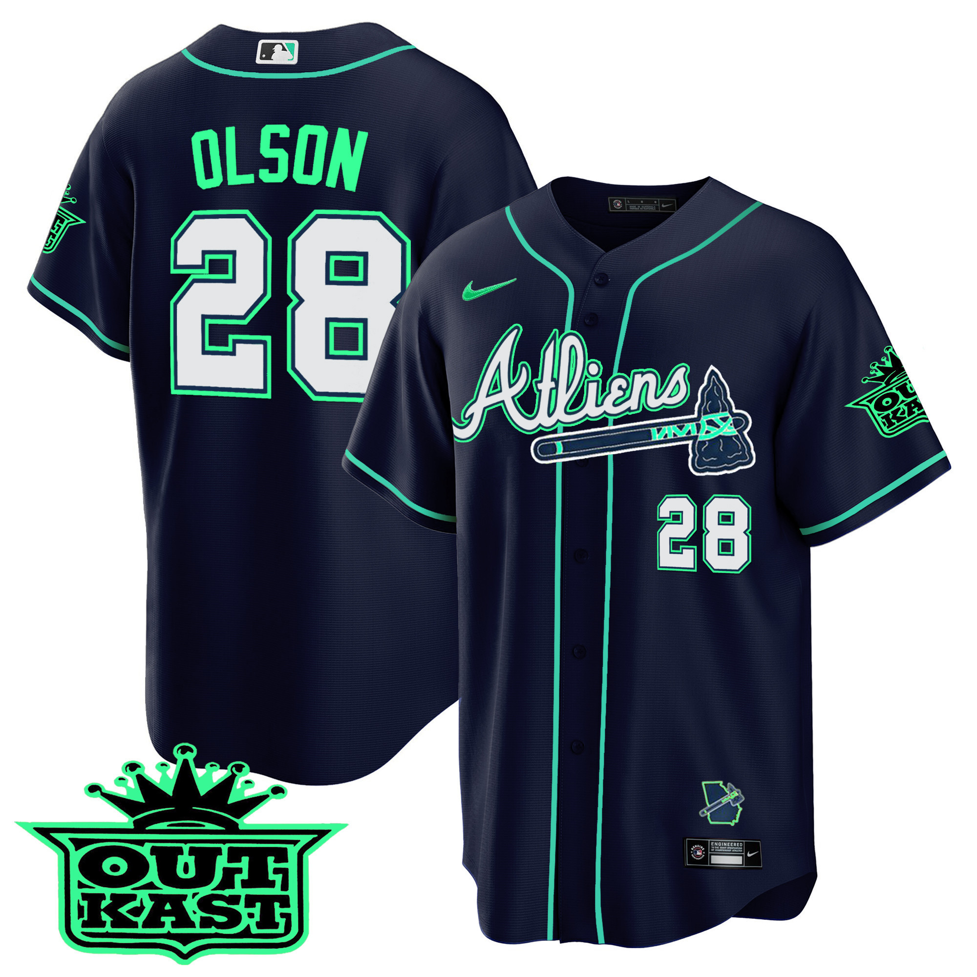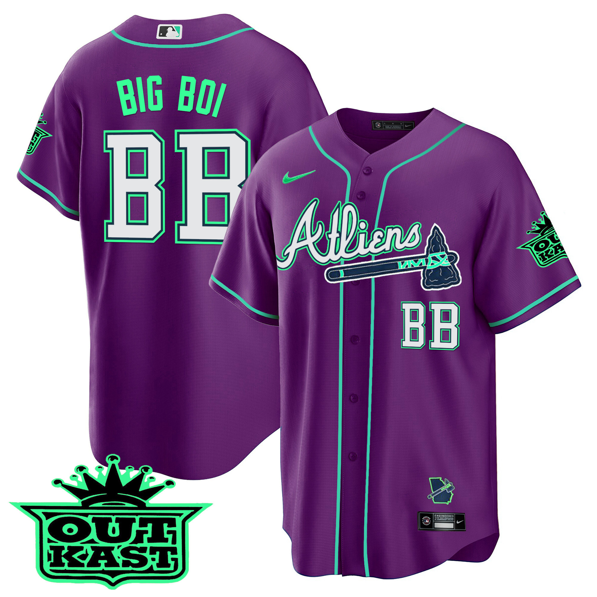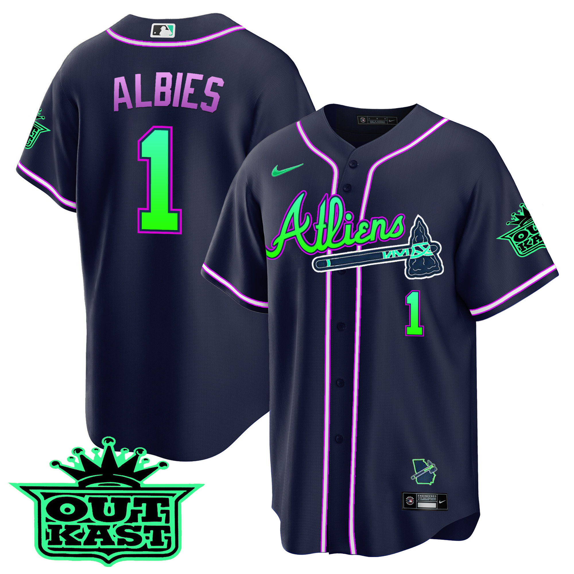 Men’s Atlanta Braves Atliens Cool Base Jersey – Galaxy Version – Stitched