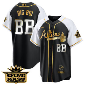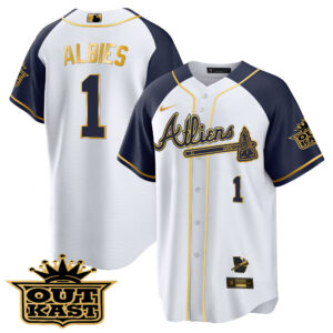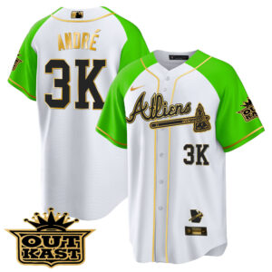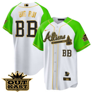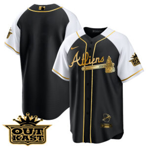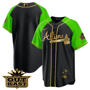 Men’s Atlanta Braves Atliens Gold Alternate Cool Base Jersey – All Stitched