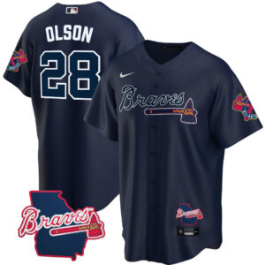 Men’s Atlanta Braves Georgia State Patch Jersey – Navy – All Stitched