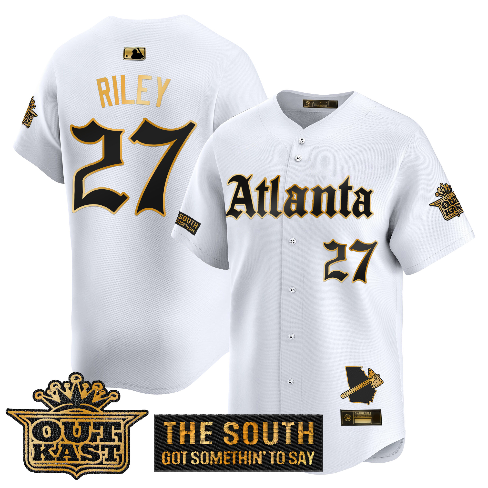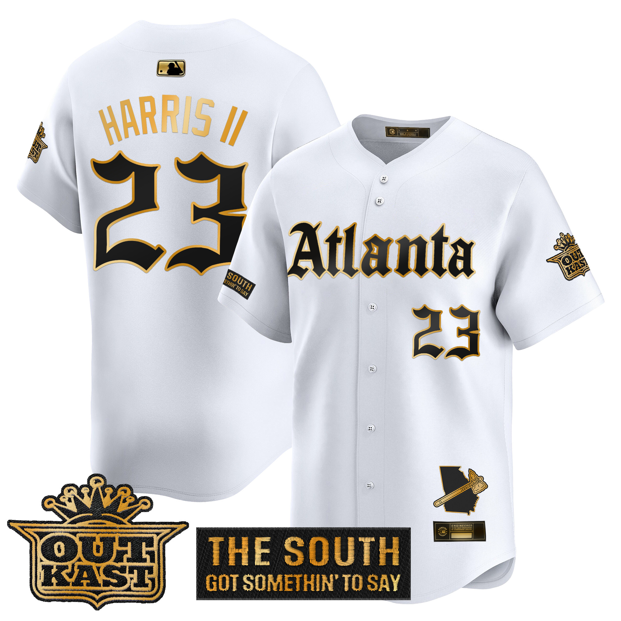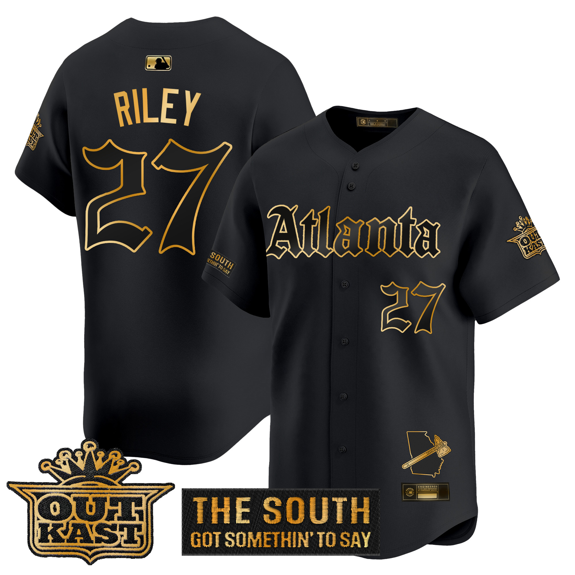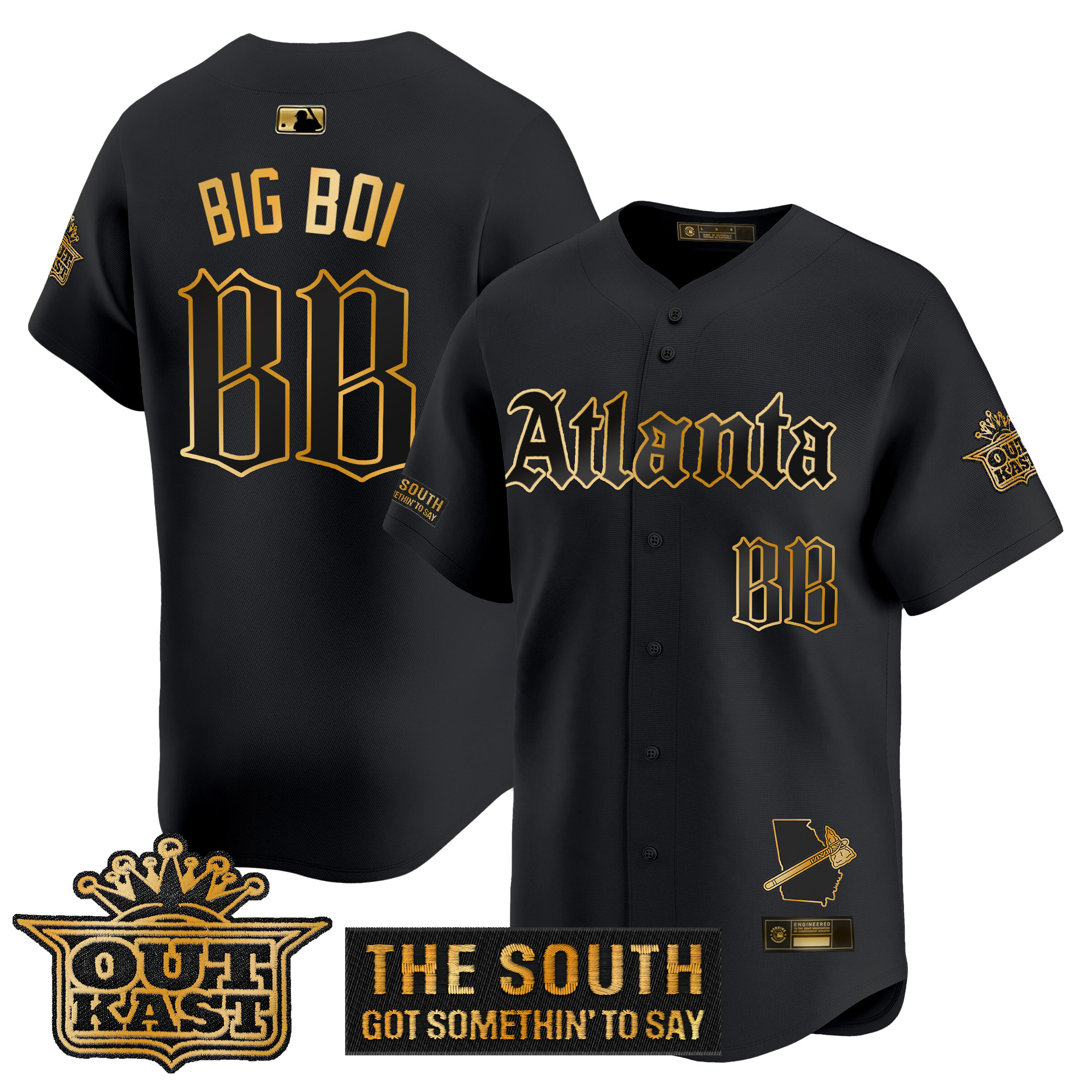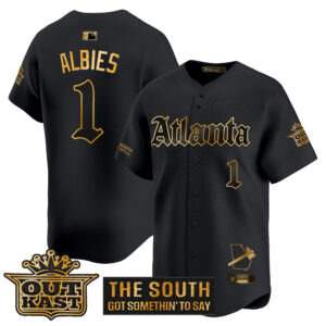Men’s Atlanta Braves ‘Gothic South x Outkast Edition’ Gold Vapor Premier Limited Jersey – All Stitched