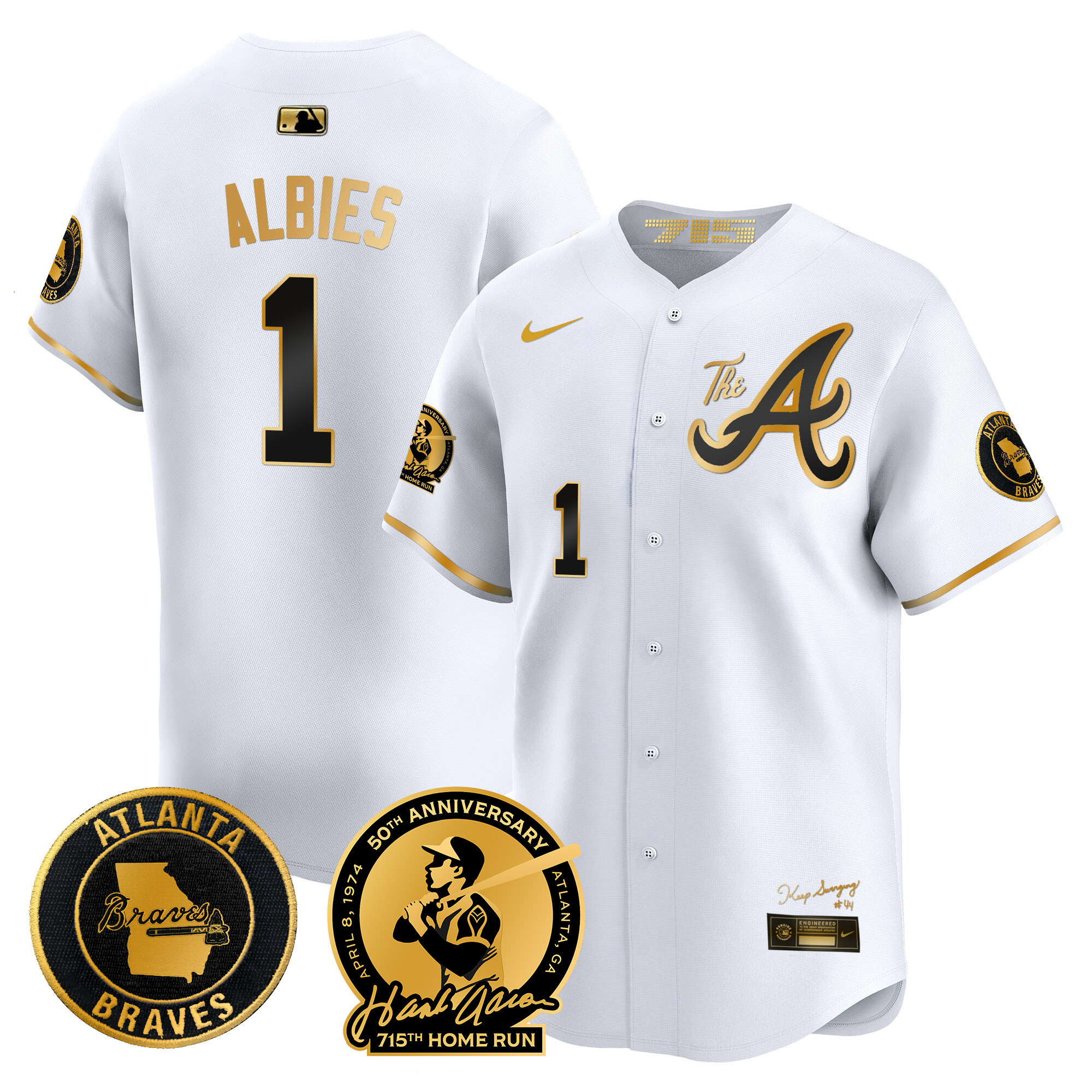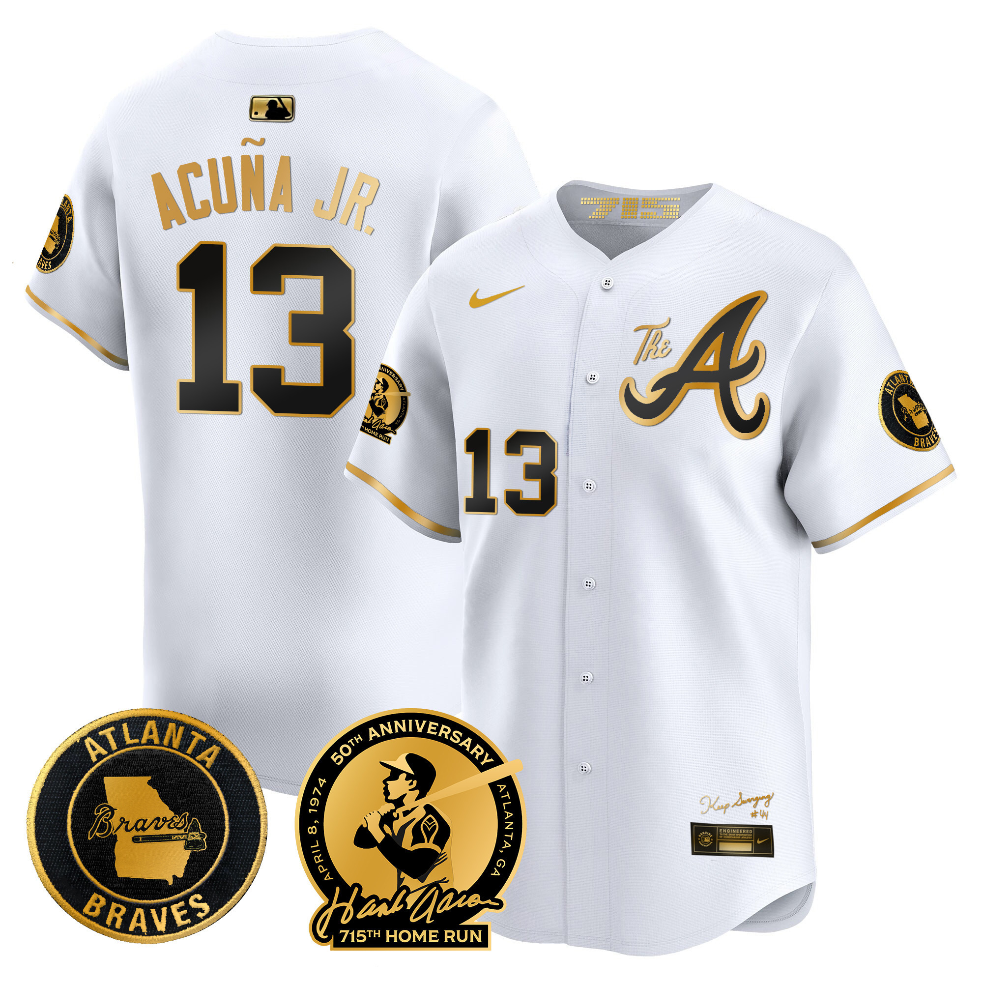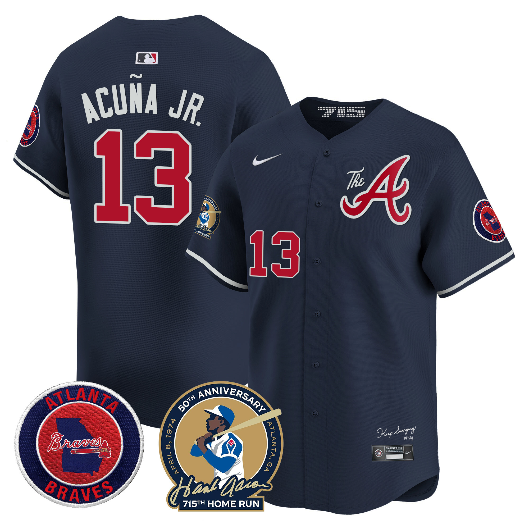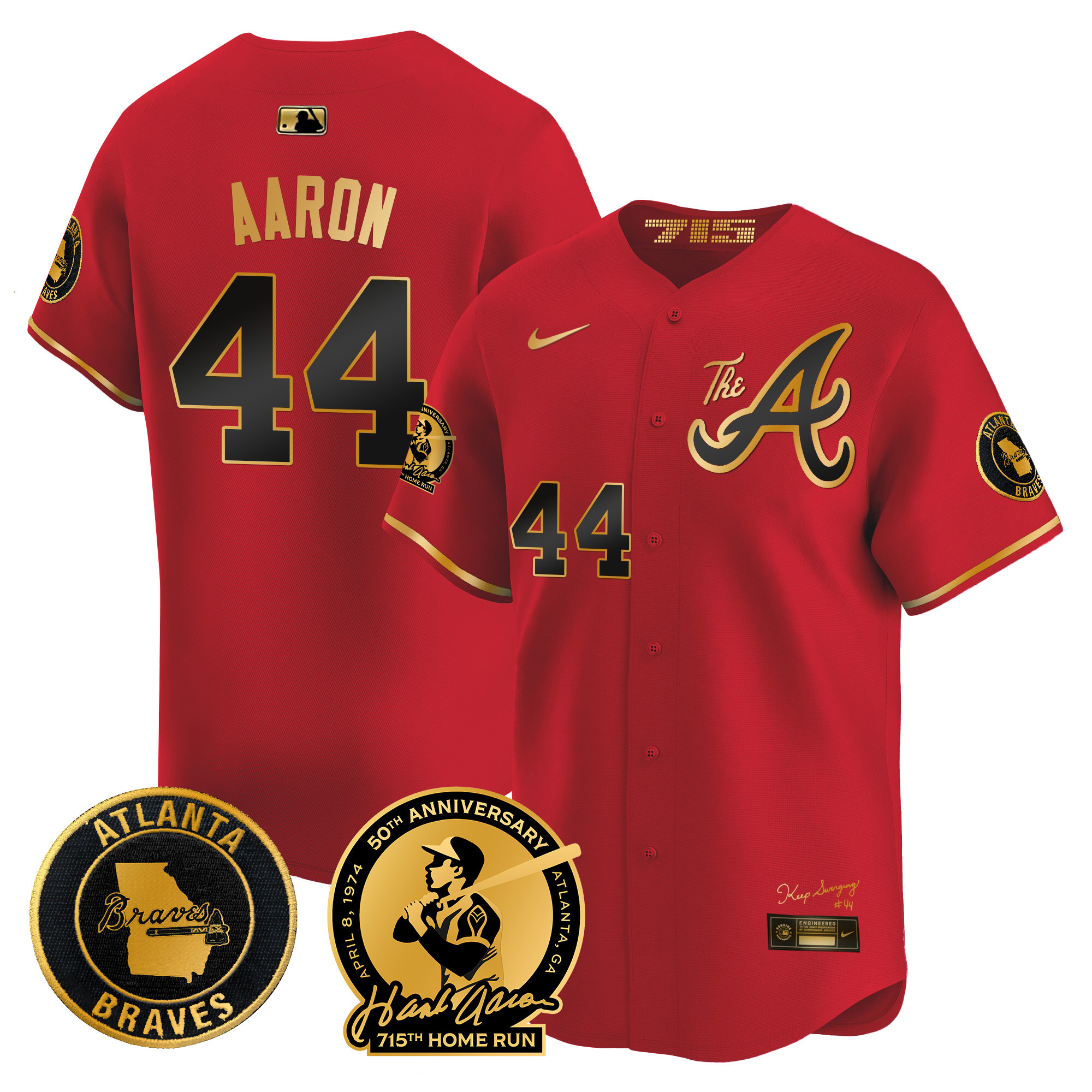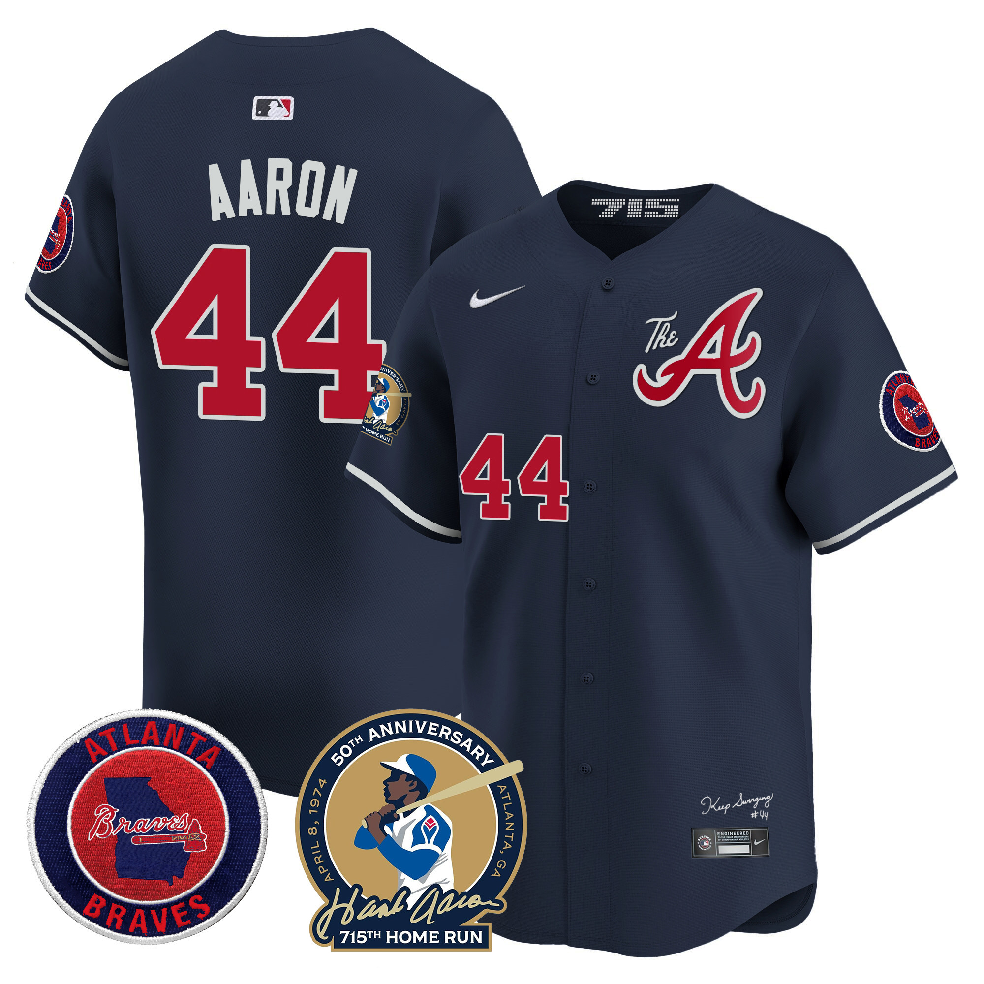 Men’s Atlanta Braves Hank Aaron 715th Home Run Patch Vapor Premier Limited Jersey V2 – All Stitched