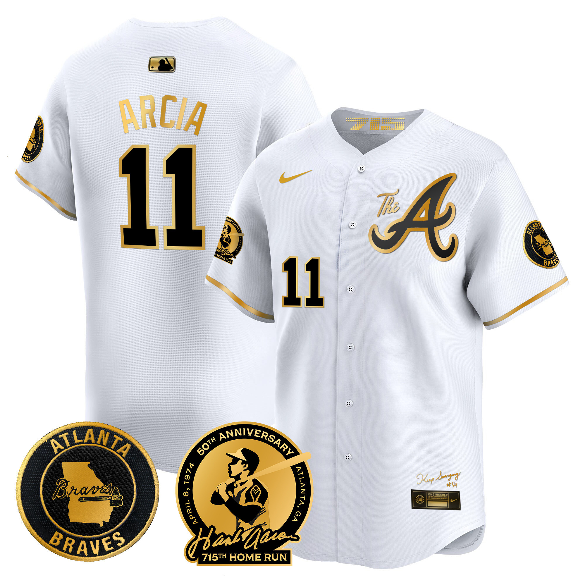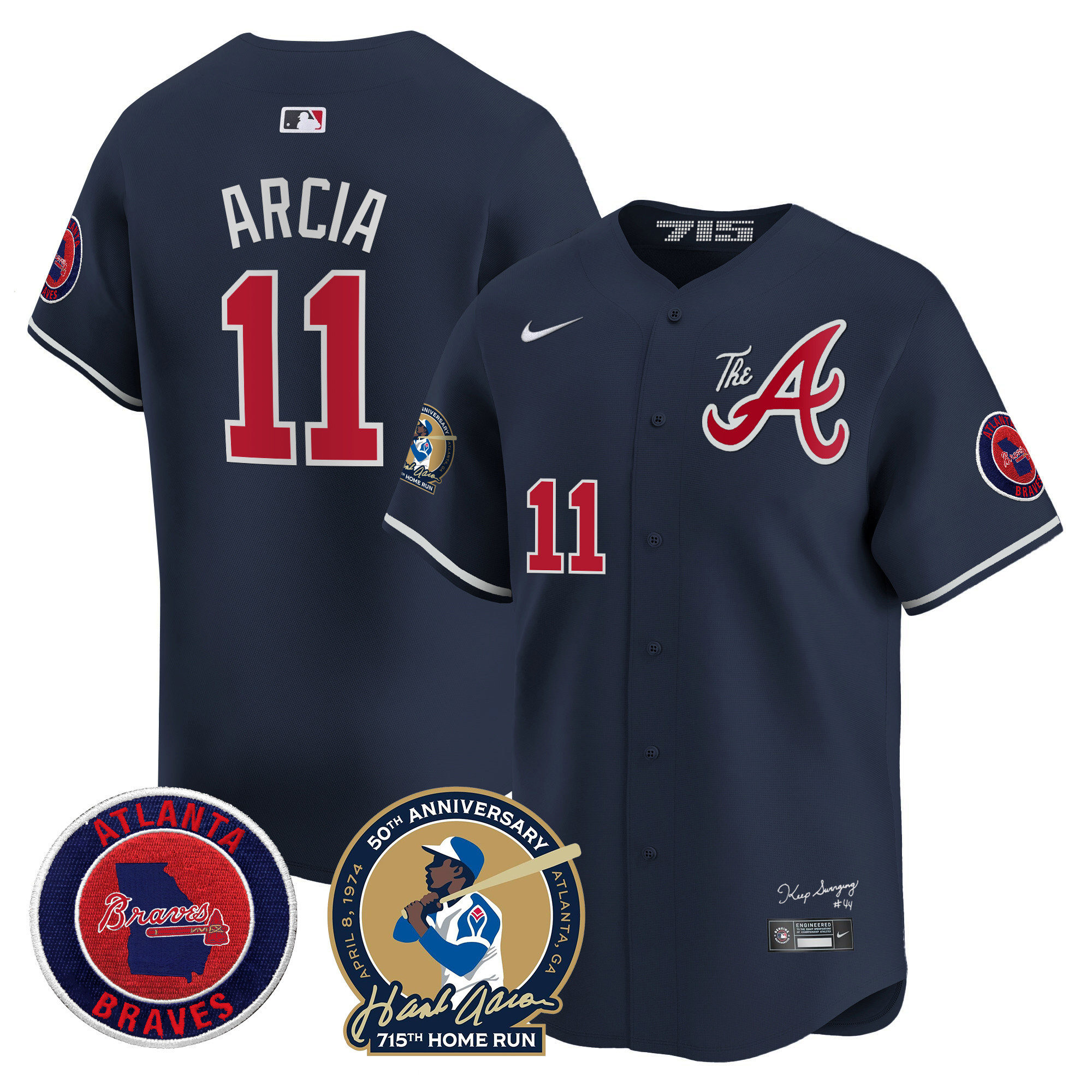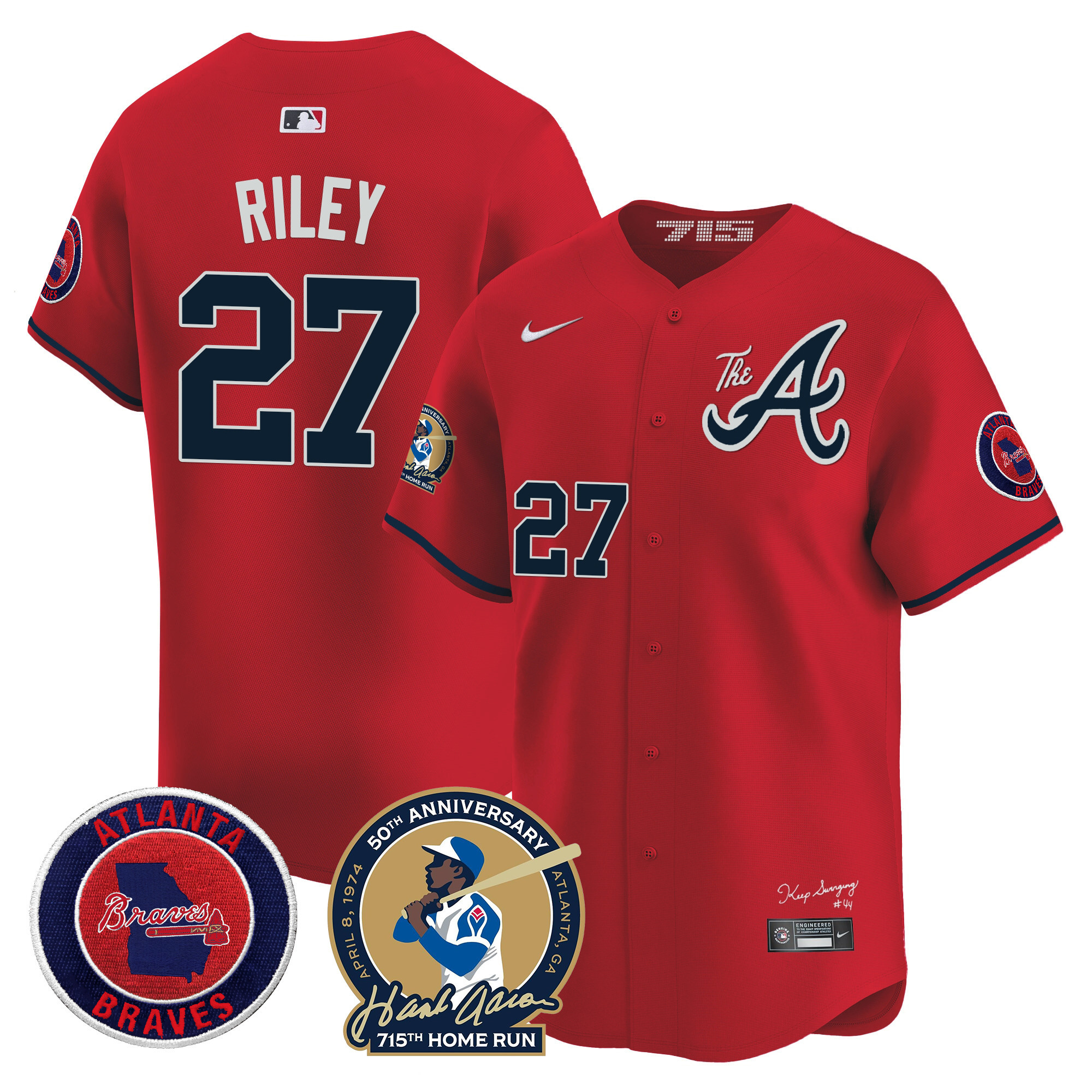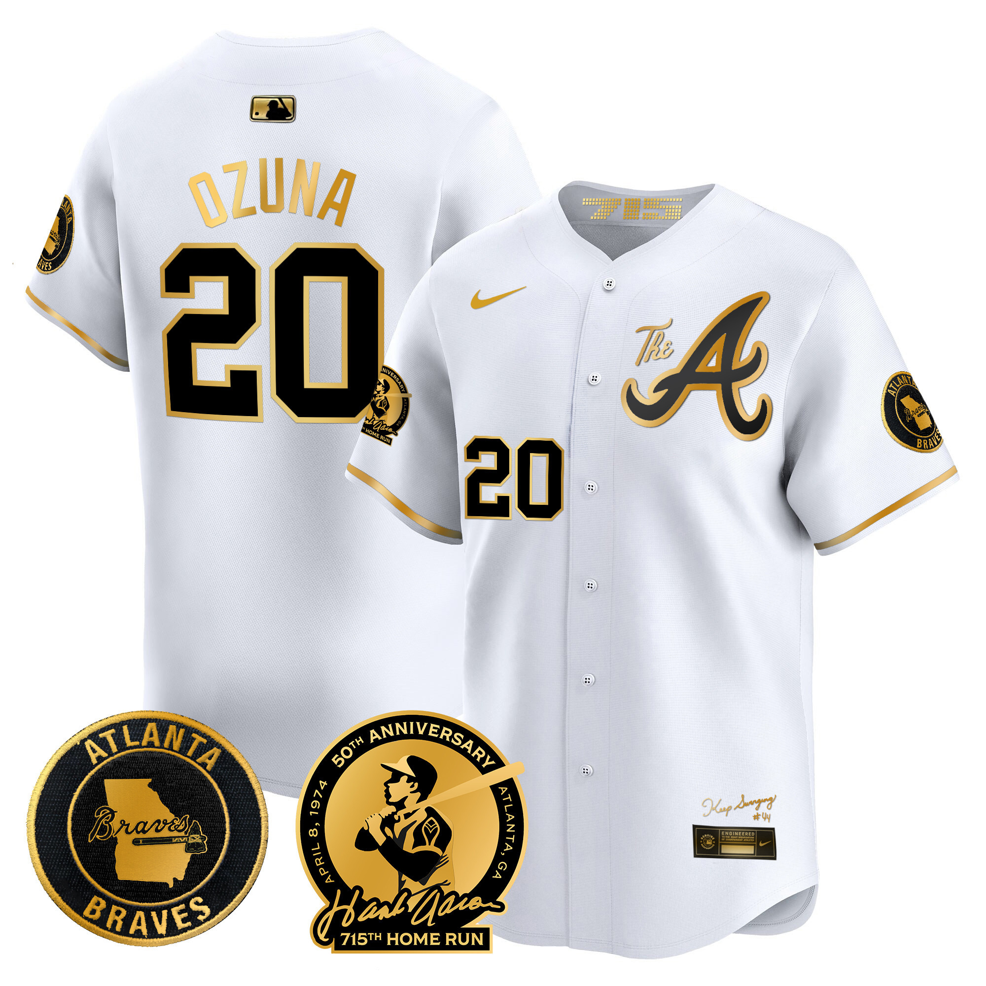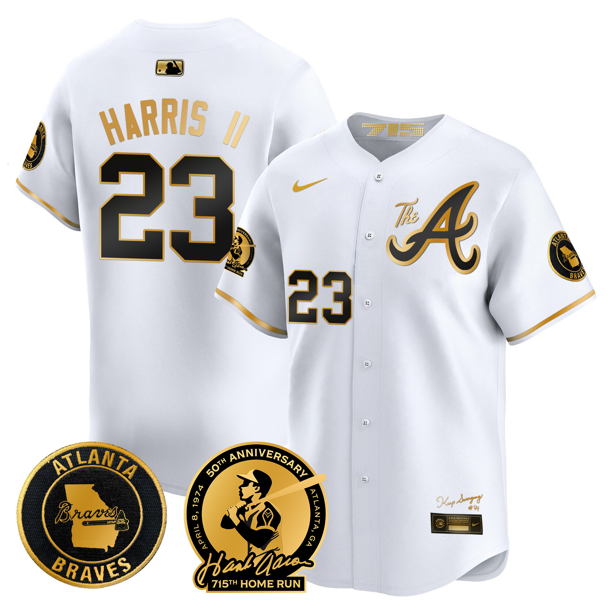Men’s Atlanta Braves Hank Aaron 715th Home Run Patch Vapor Premier Limited Jersey V2 – All Stitched