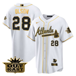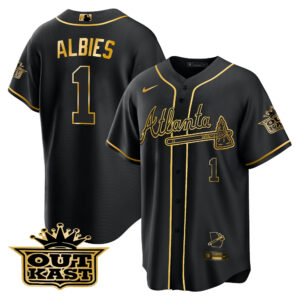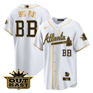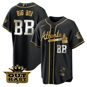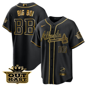 Men’s Atlanta Braves Outkast Cool Base Gold Jersey V3 – All Stitched