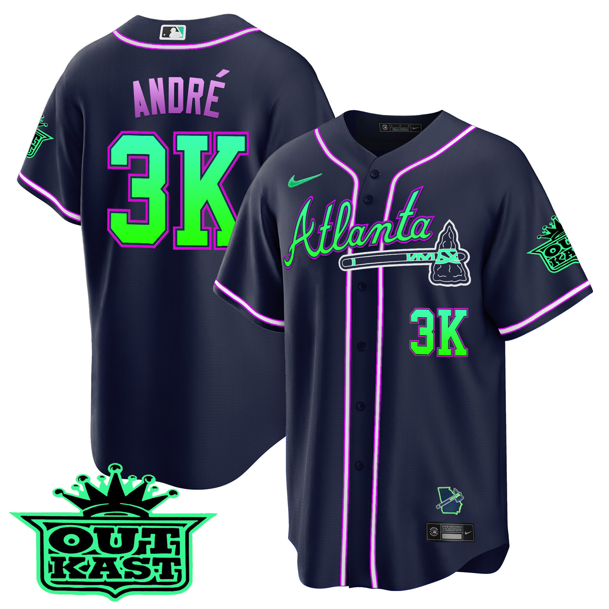 Men’s Atlanta Braves Outkast Cool Base Jersey V3 – Galaxy Version – Stitched