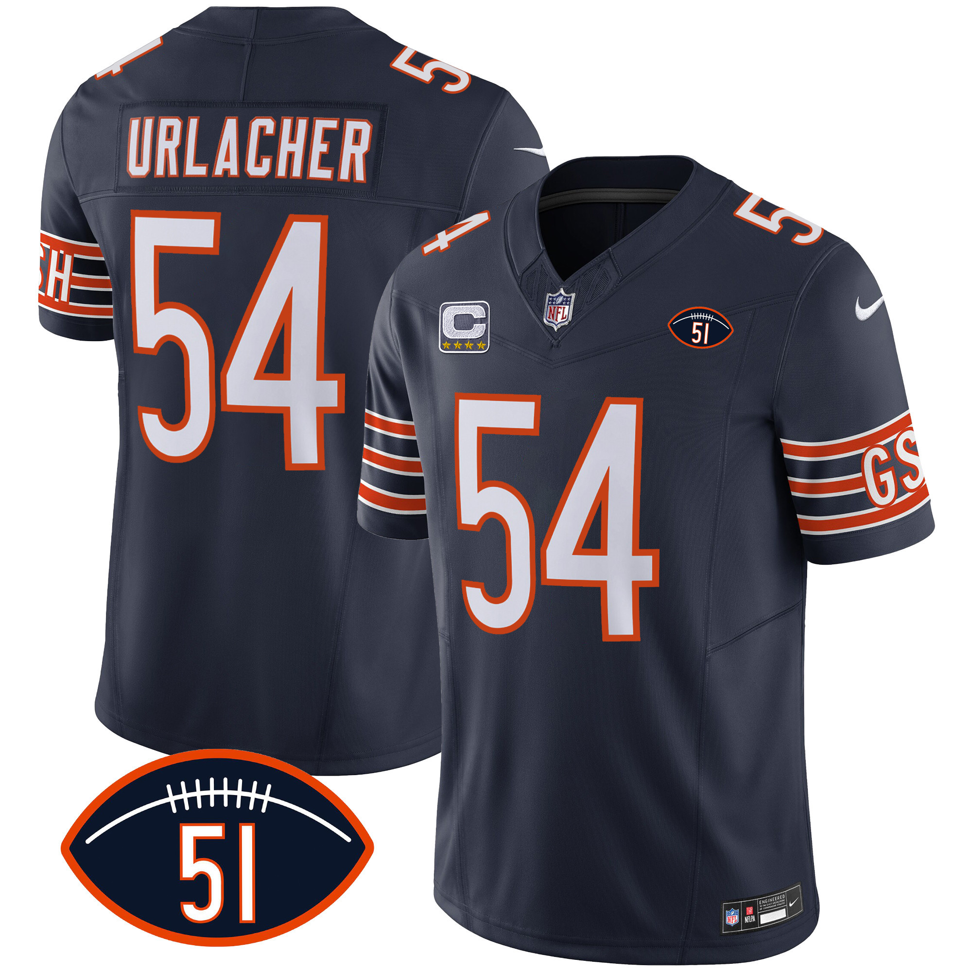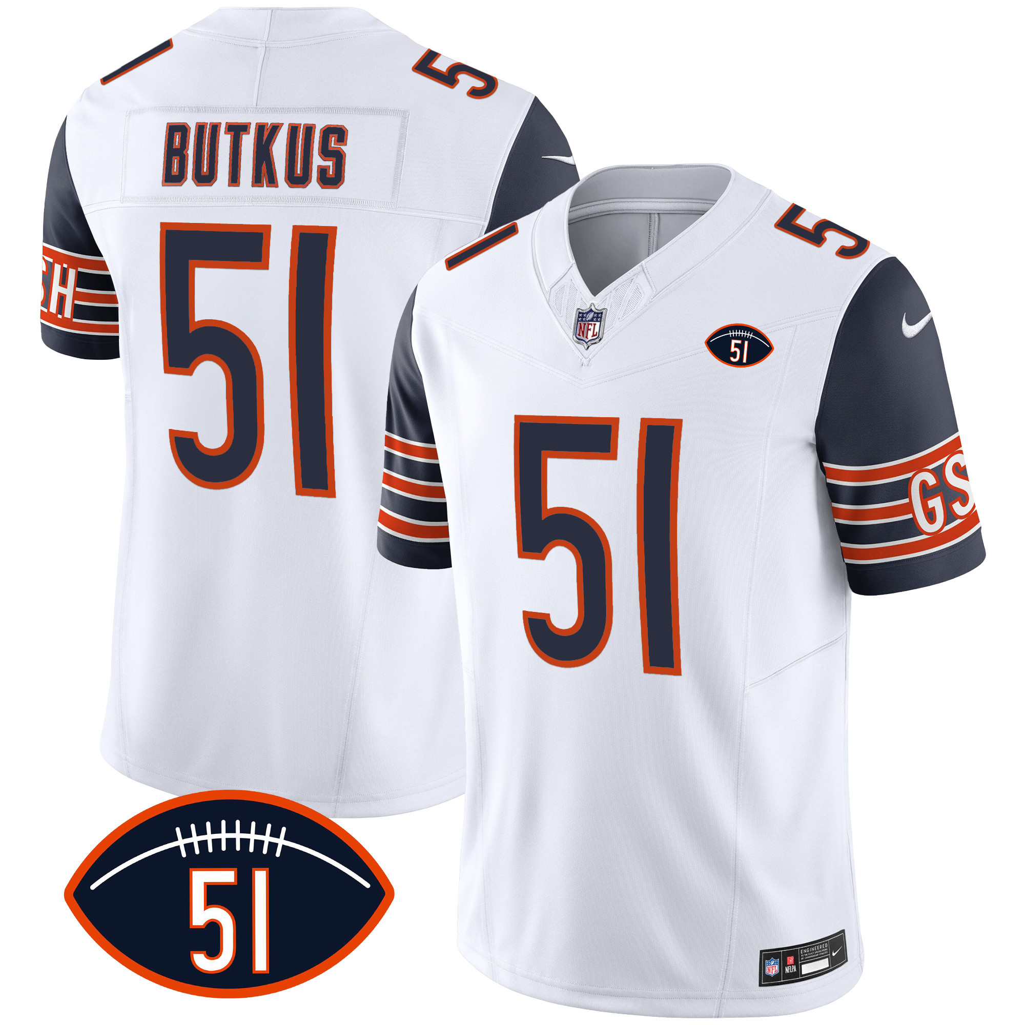 Men’s Bears Dick Butkus Patch GSH Vapor Jersey – All Stitched
