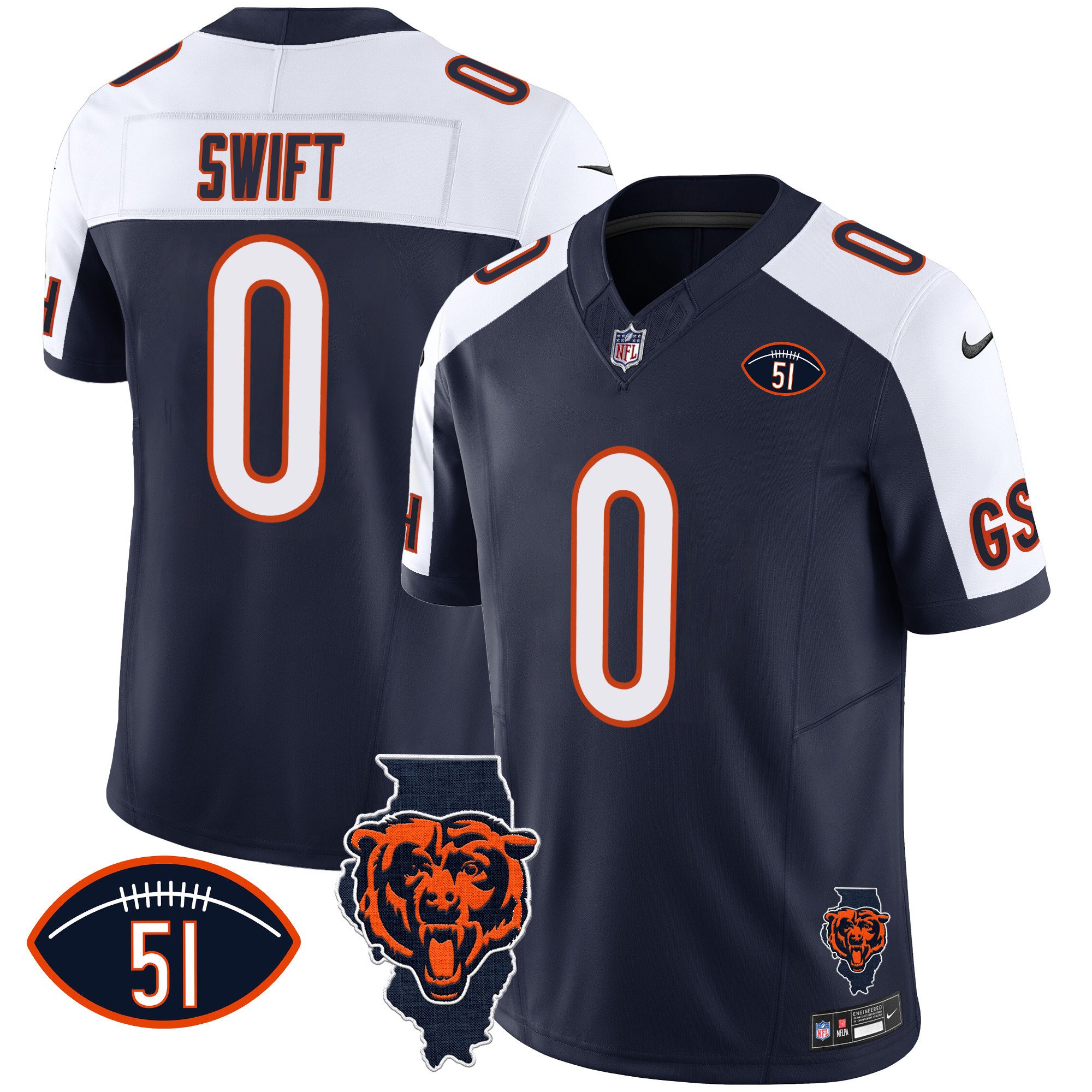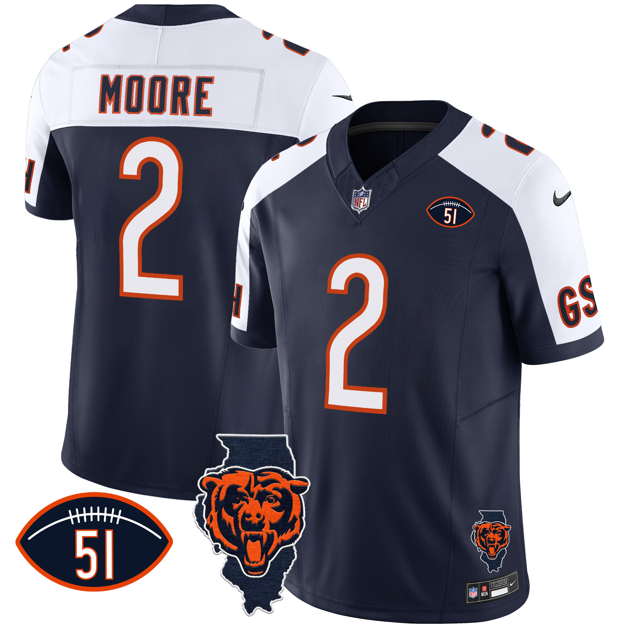 Men’s Bears Illinois Patch Vapor Jersey – All Stitched