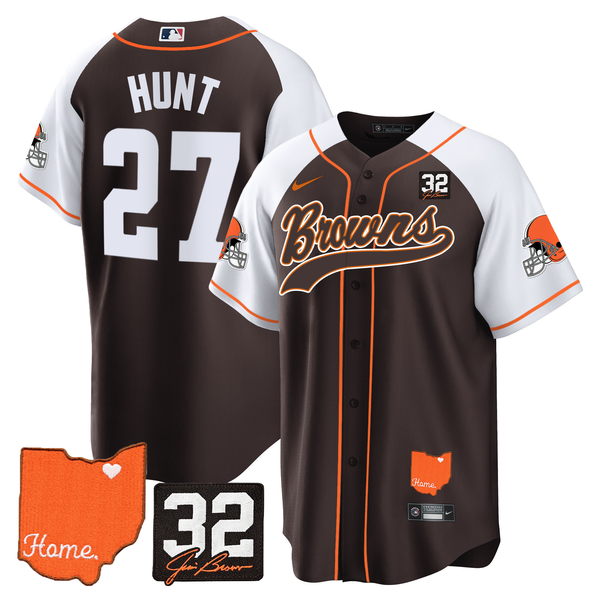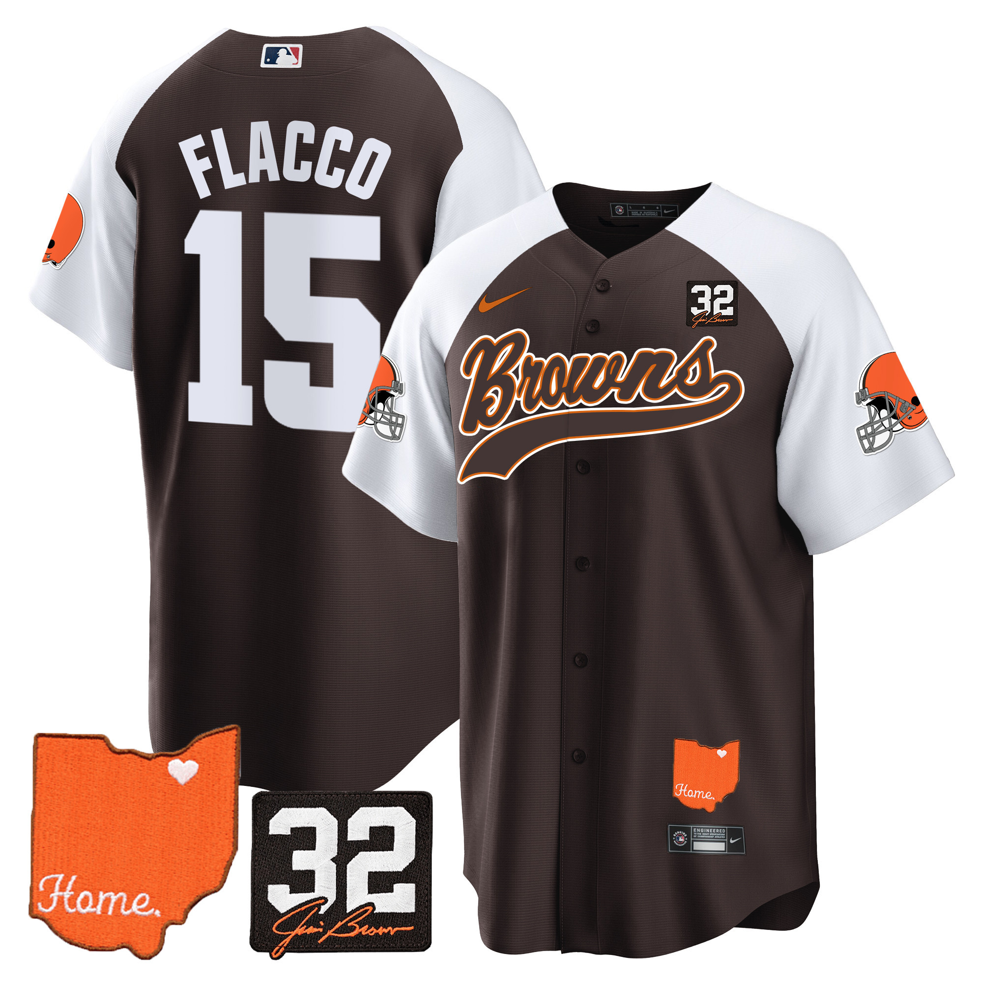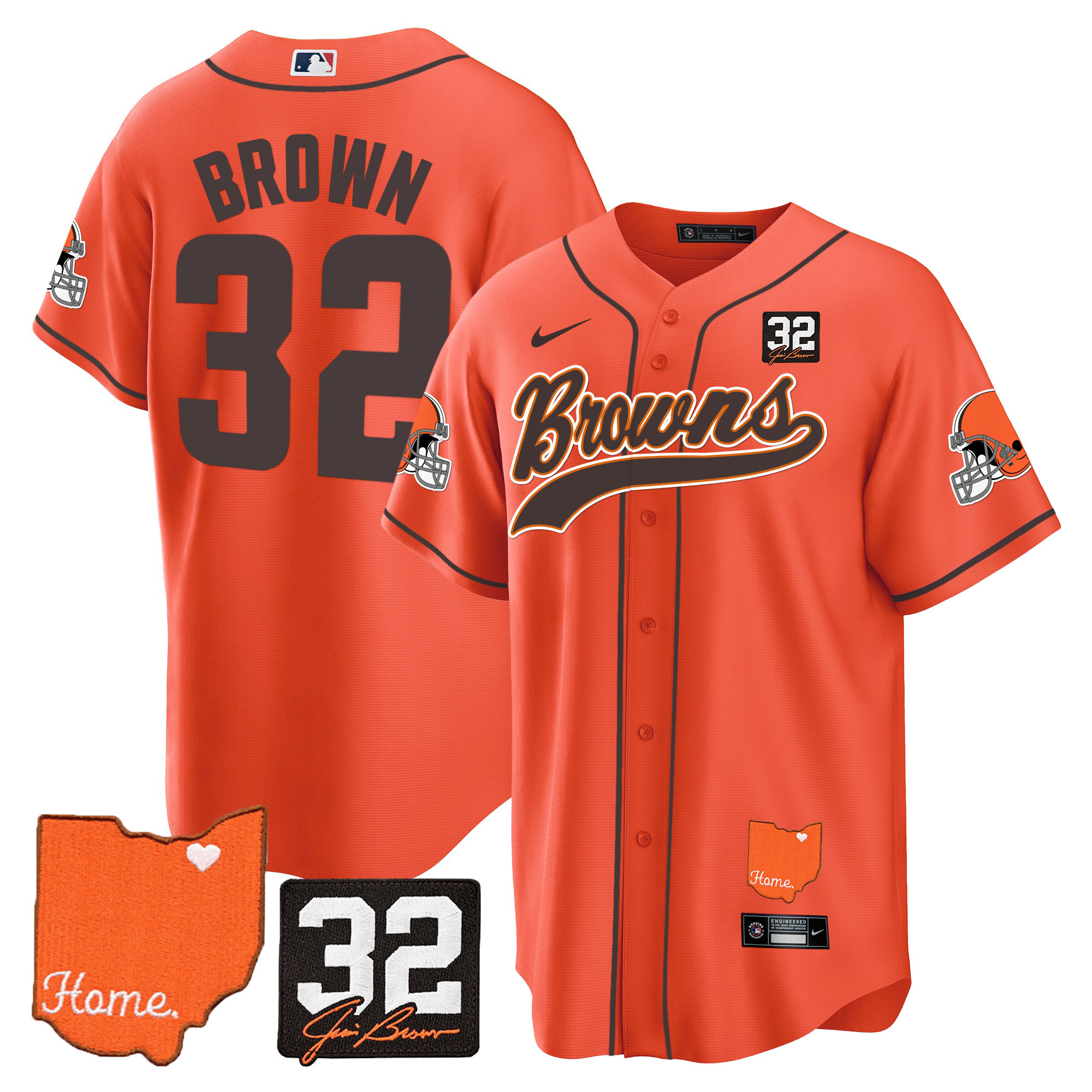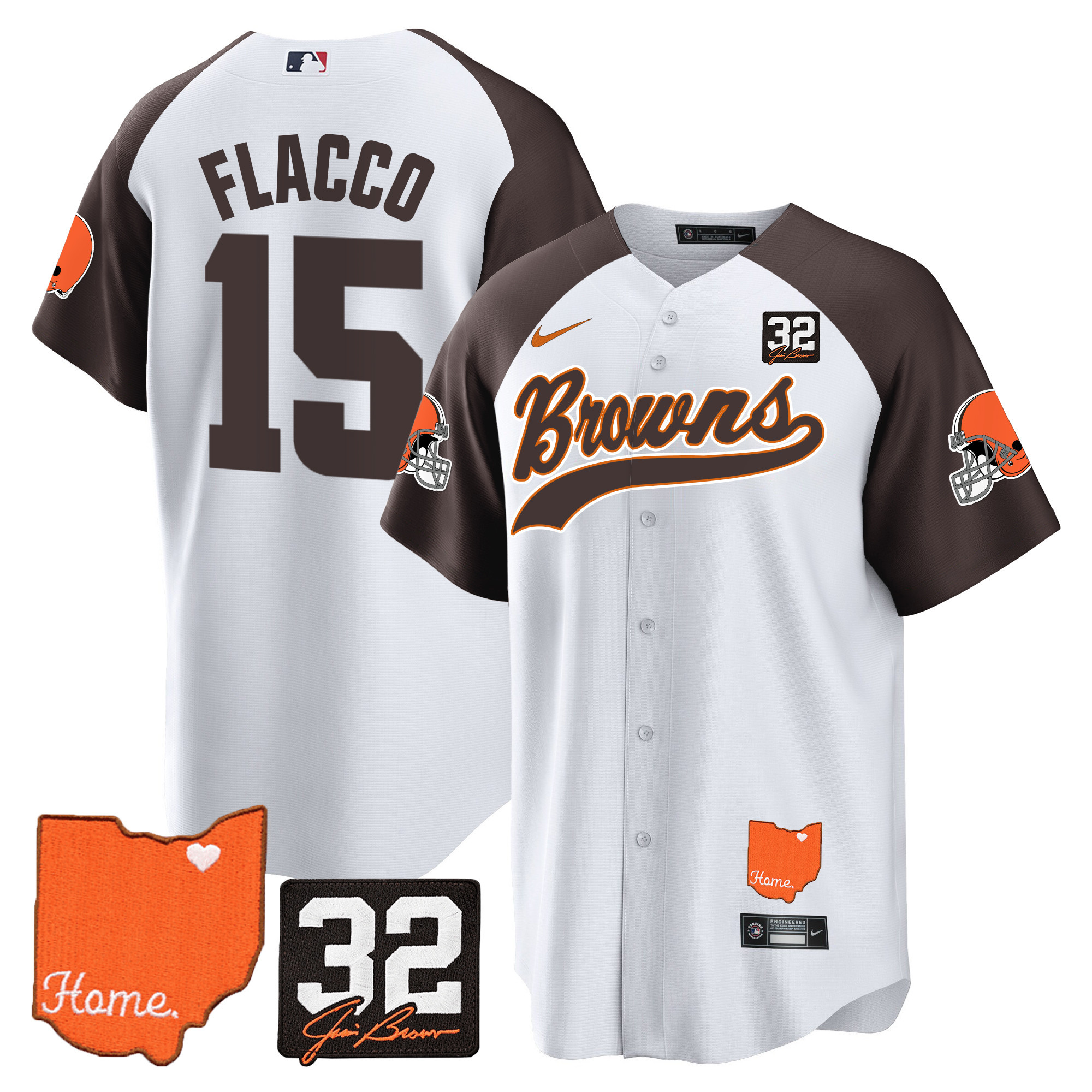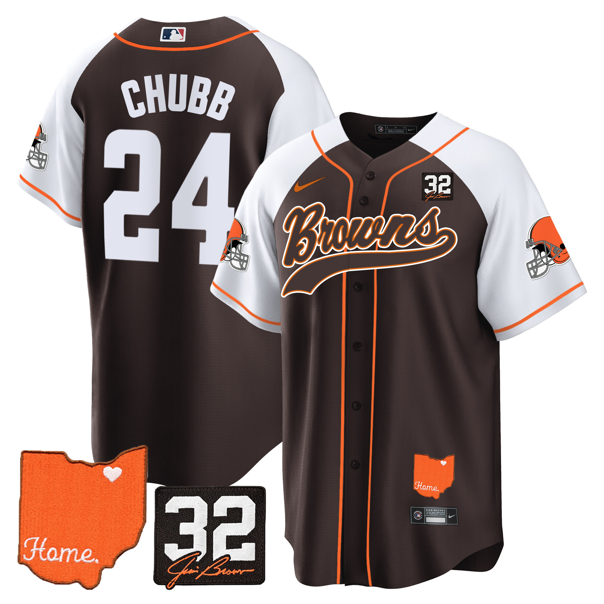Cleveland Browns ‘#32 Jim Brown Memorial & Home Patch’ Vapor Baseball Custom Jersey – All Stitched