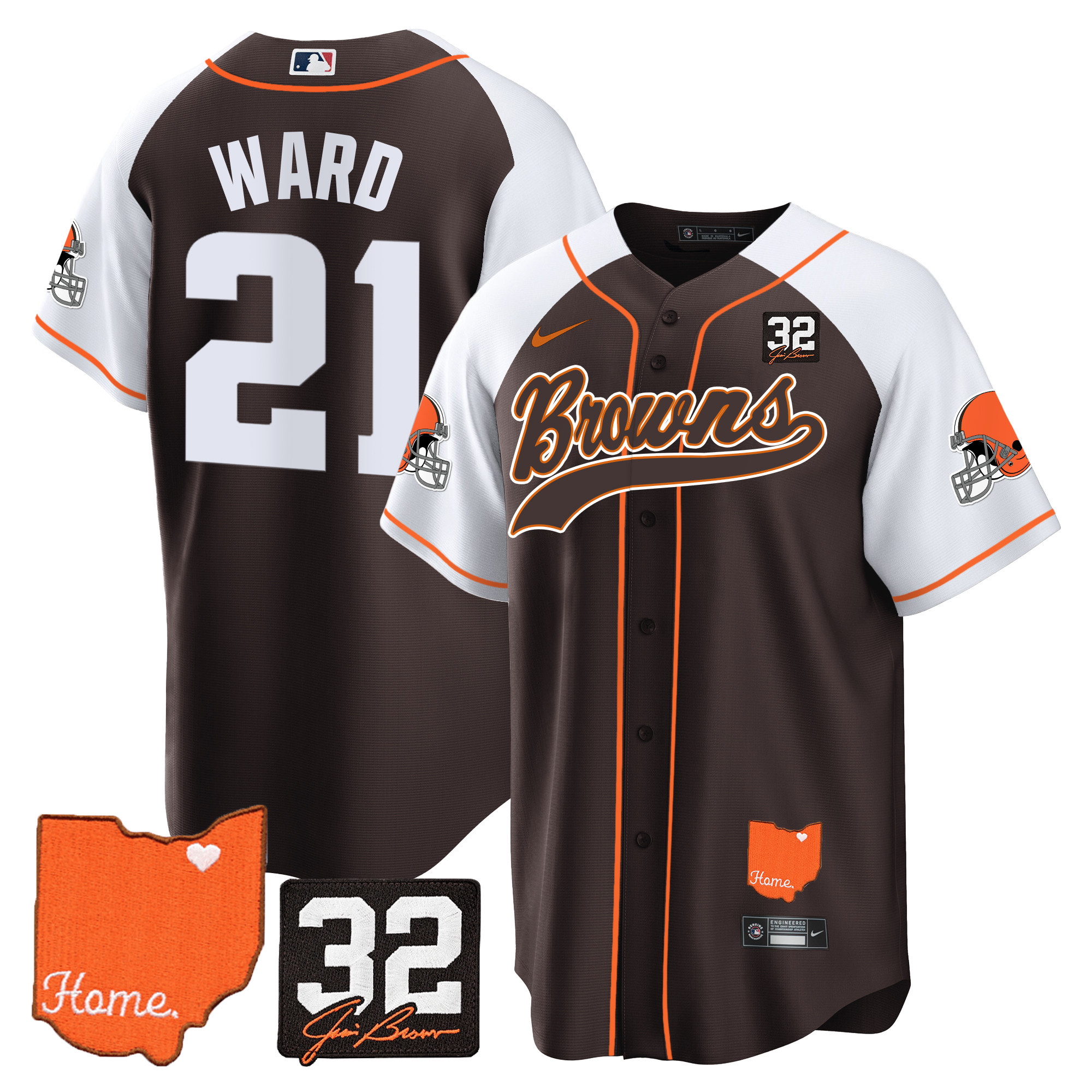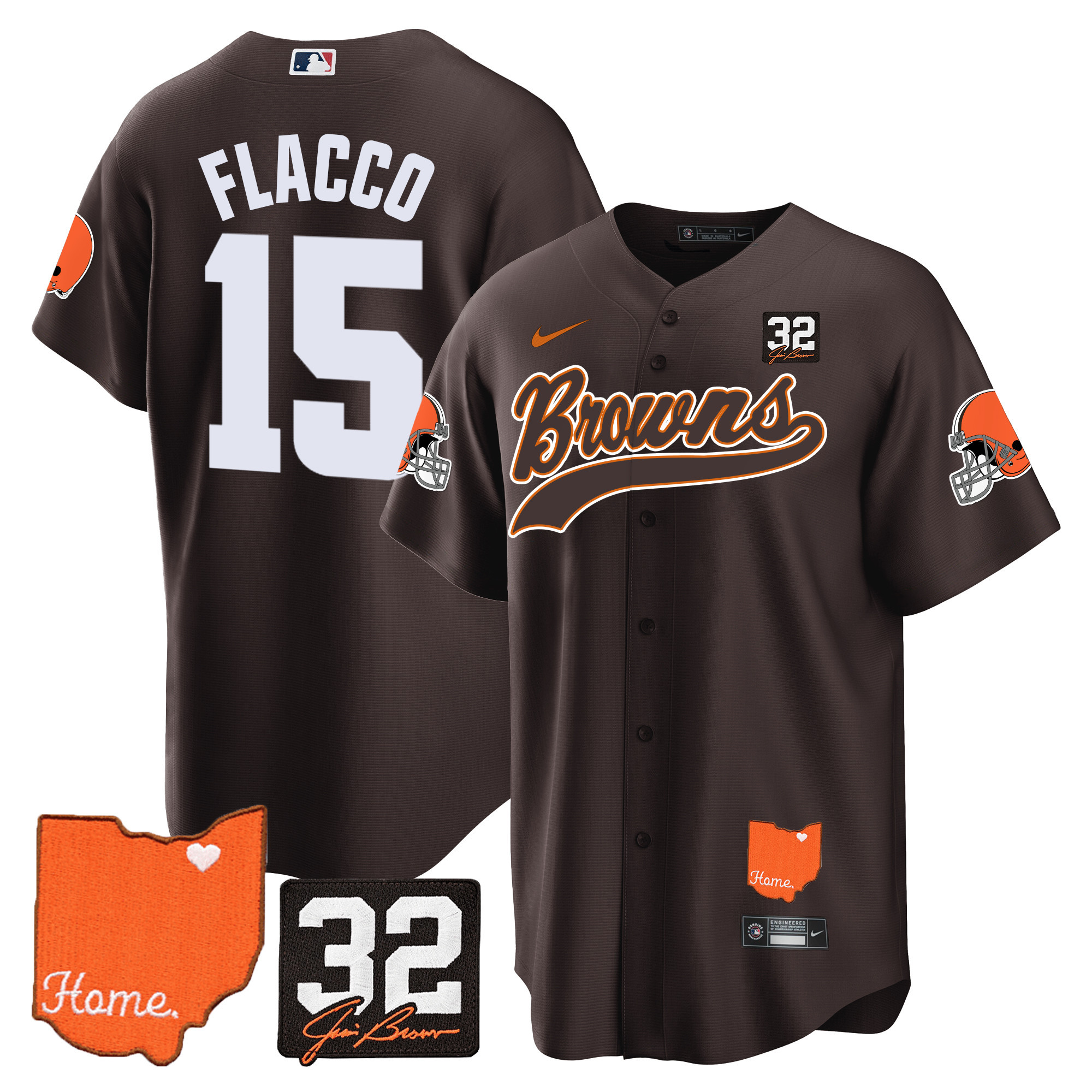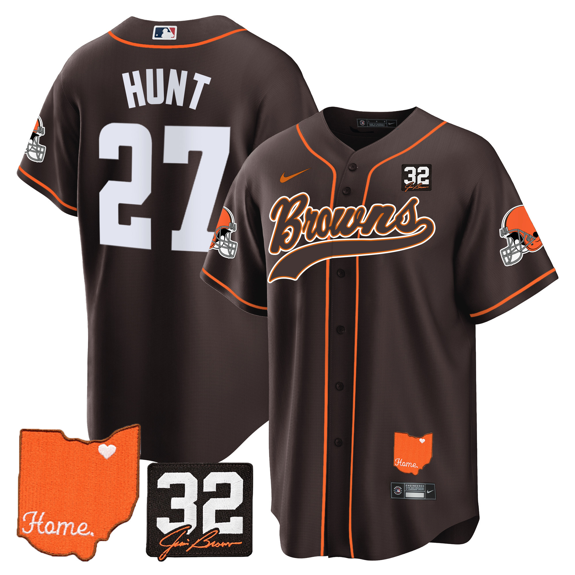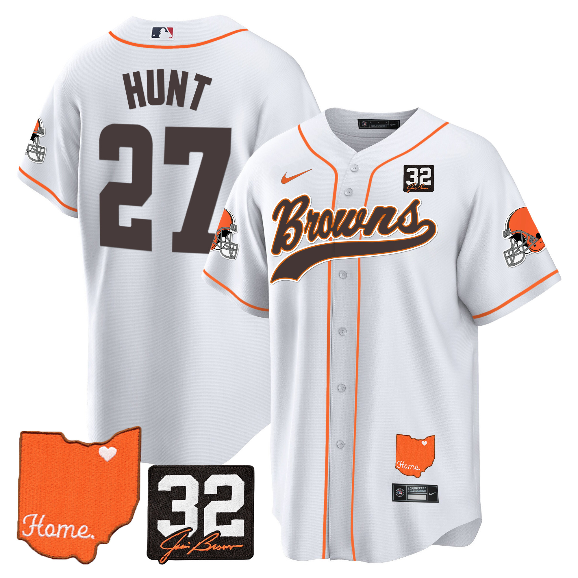 Cleveland Browns ‘#32 Jim Brown Memorial & Home Patch’ Vapor Baseball Custom Jersey – All Stitched