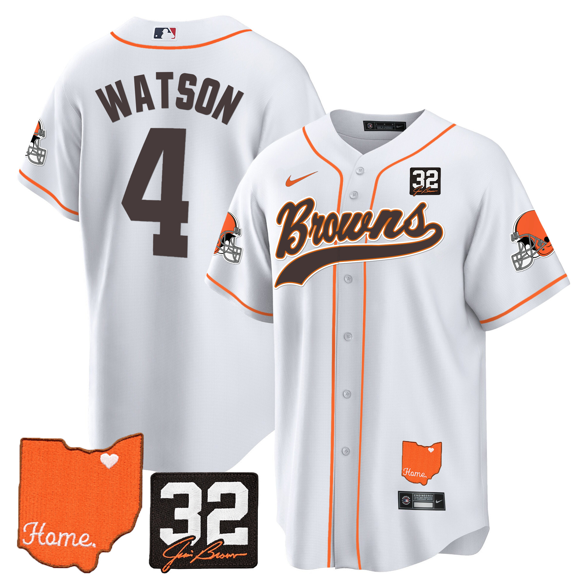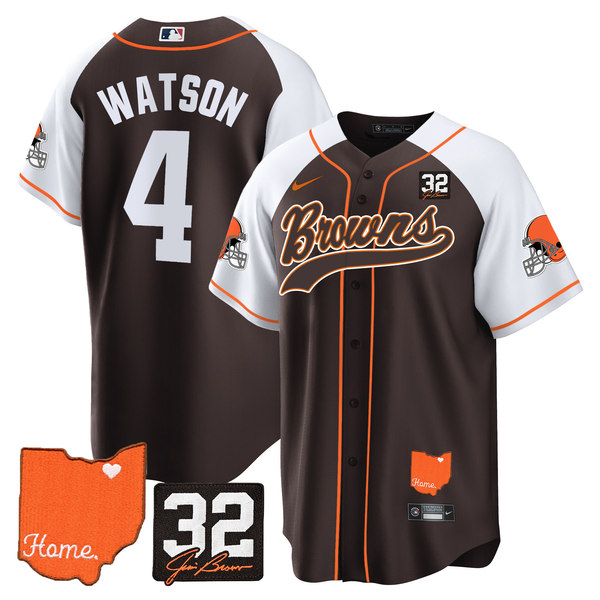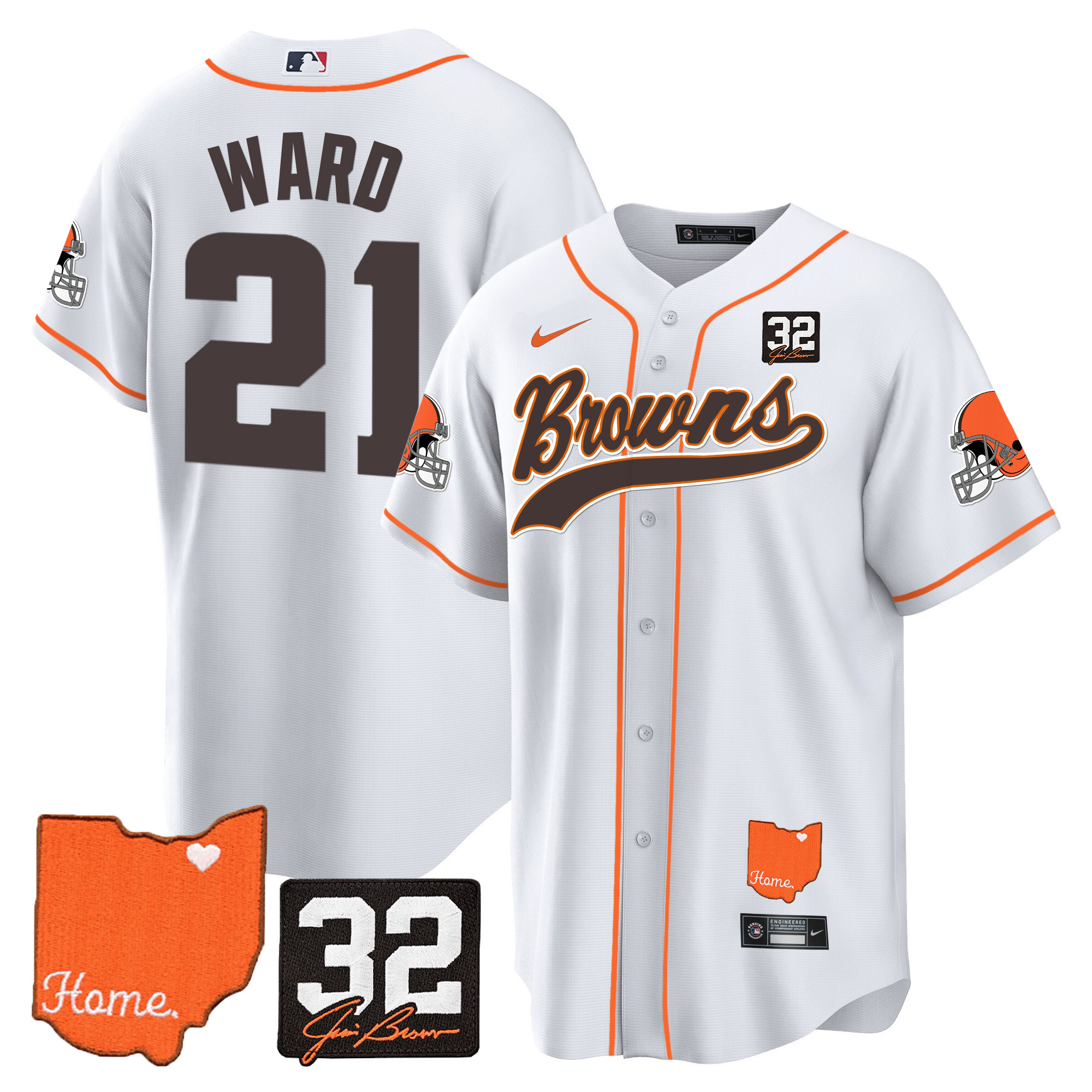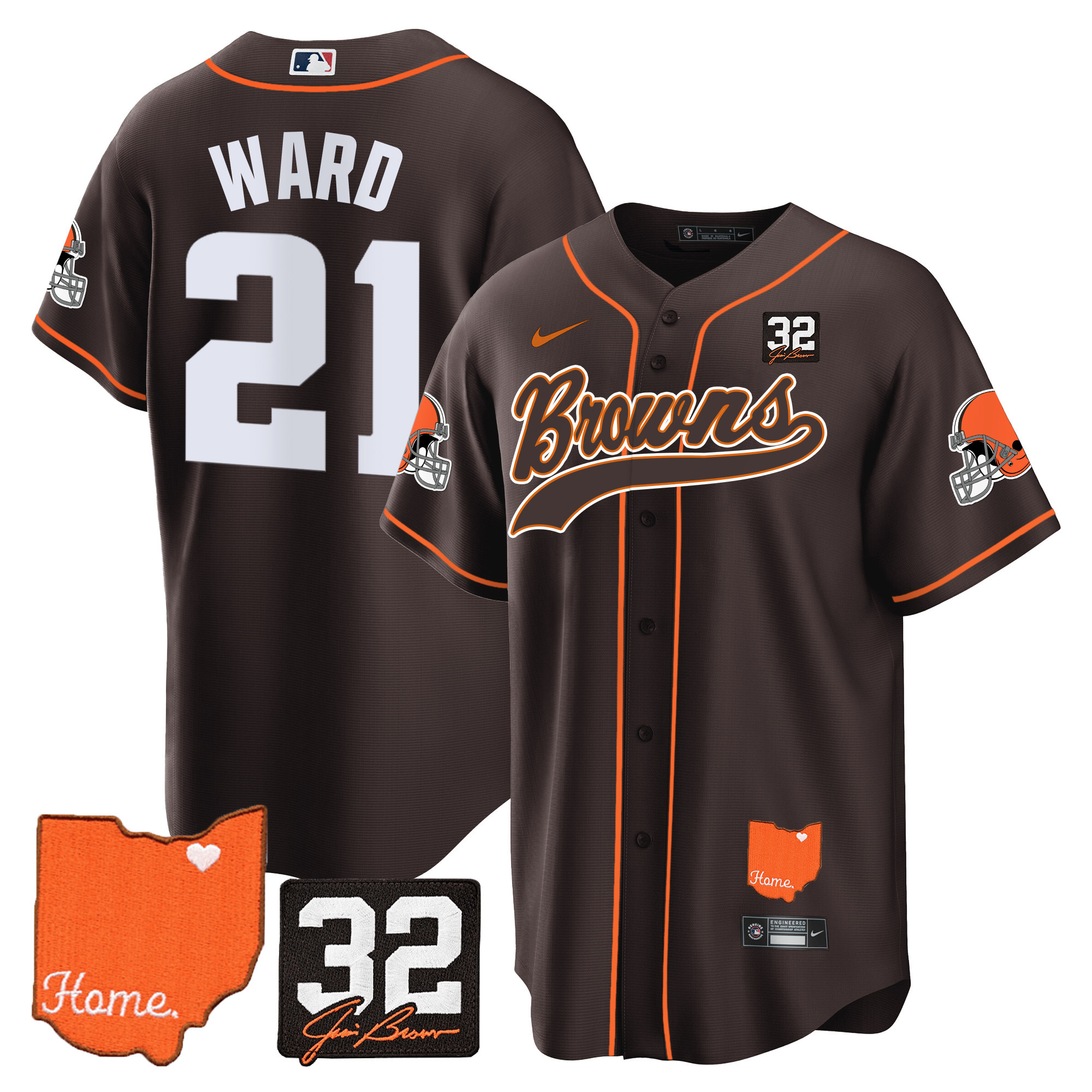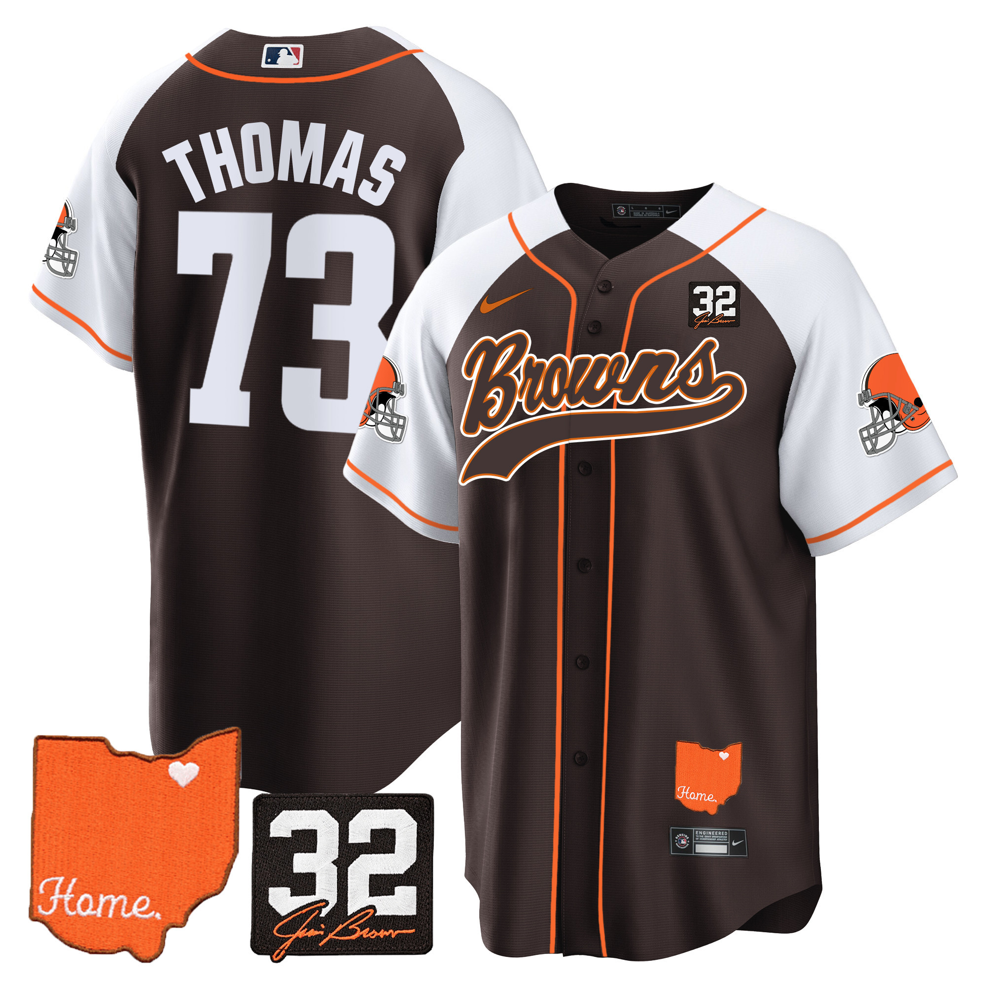 Cleveland Browns ‘#32 Jim Brown Memorial & Home Patch’ Vapor Baseball Custom Jersey – All Stitched