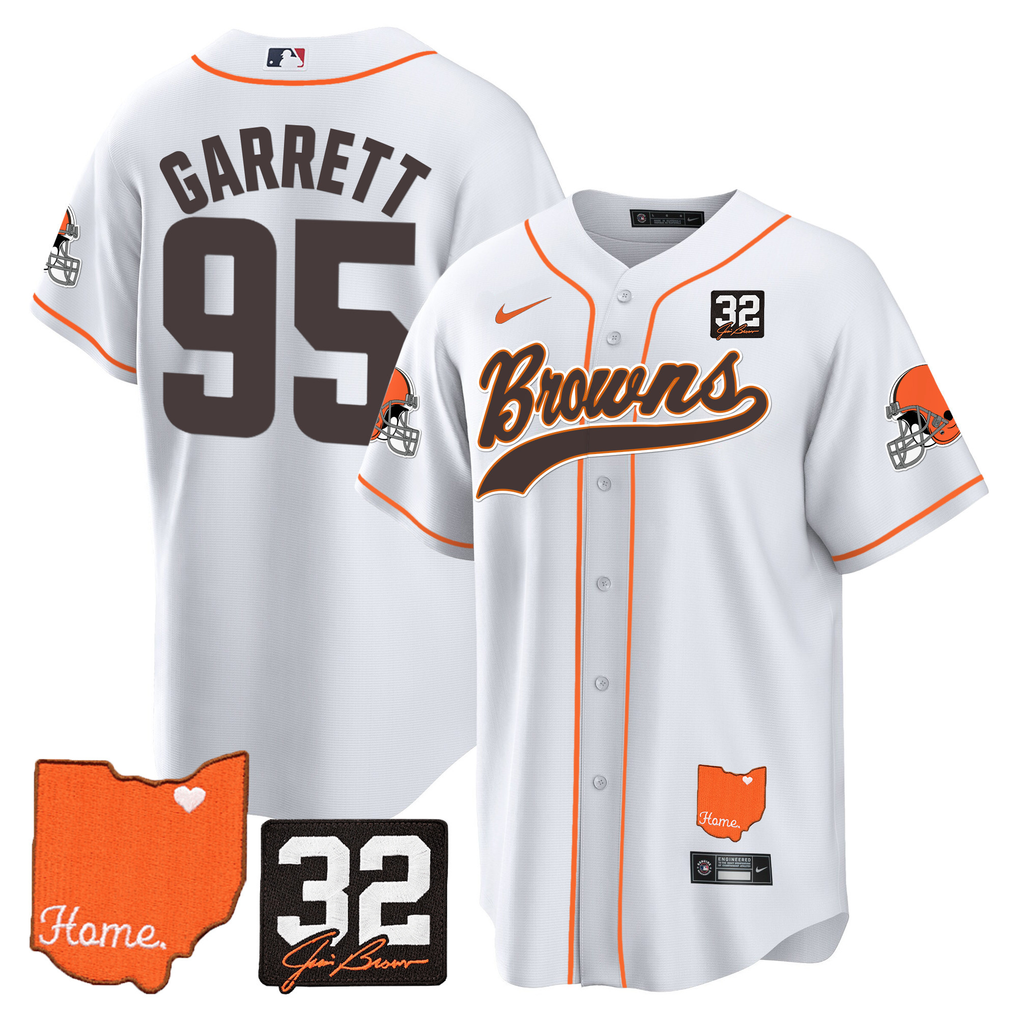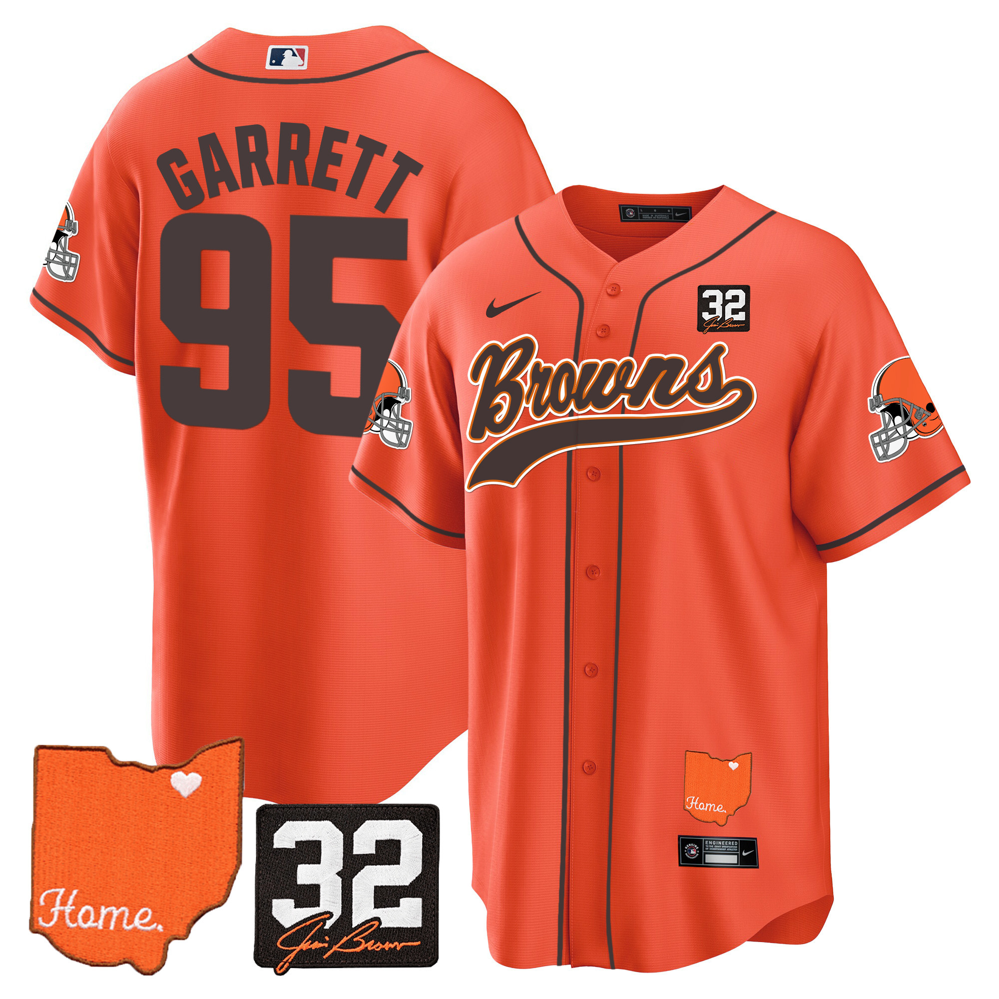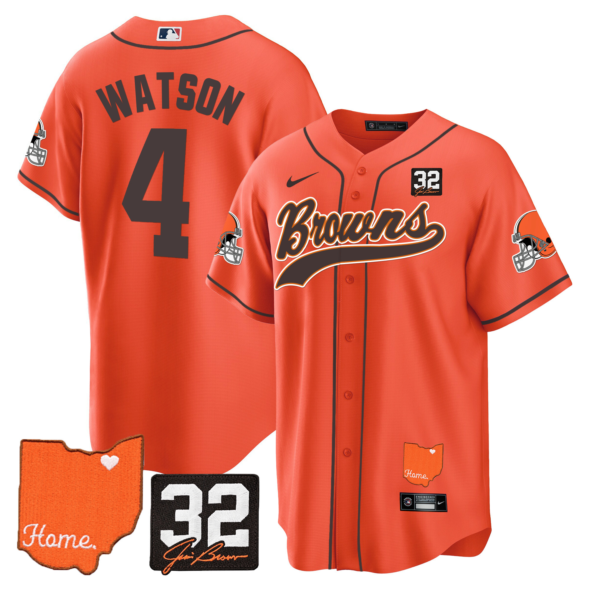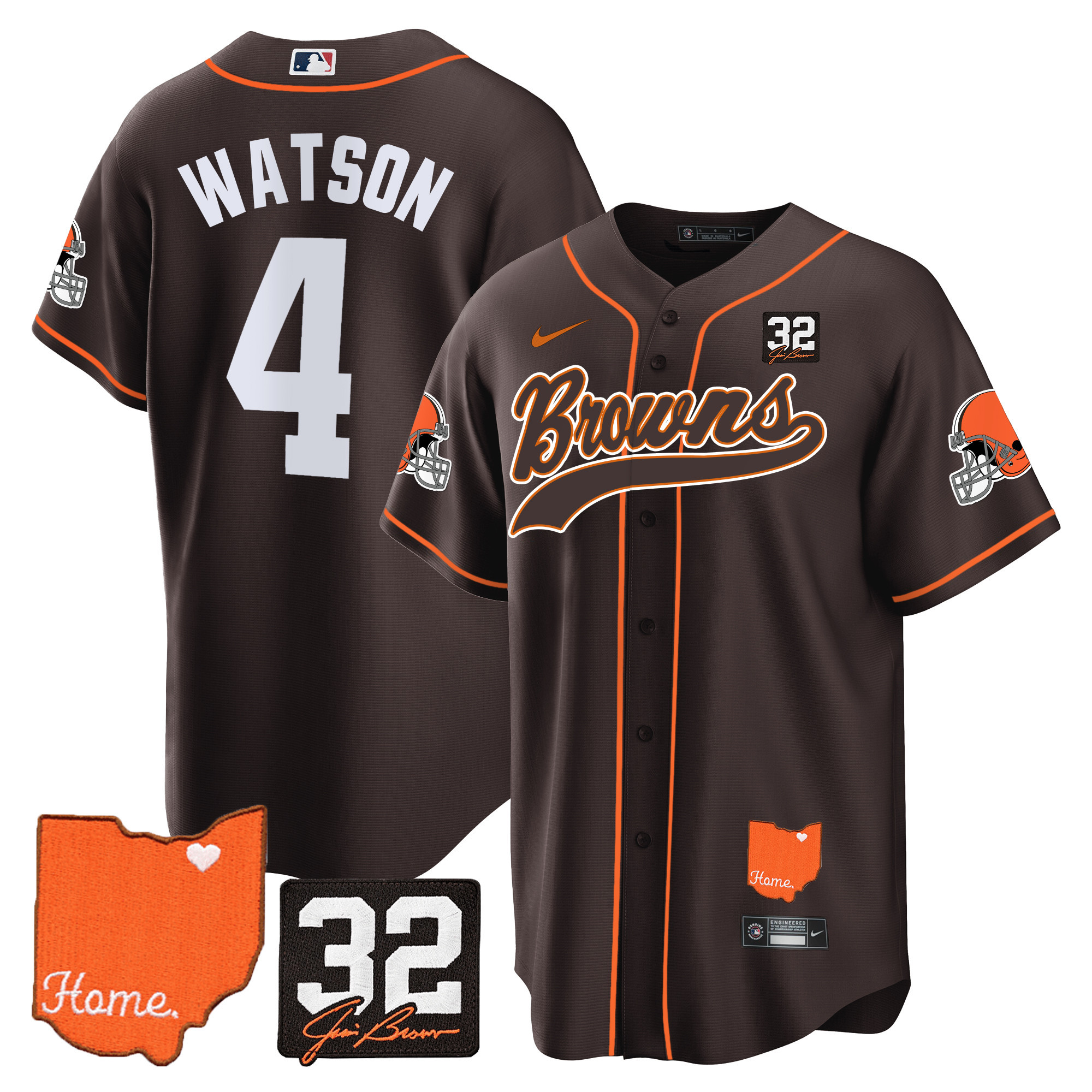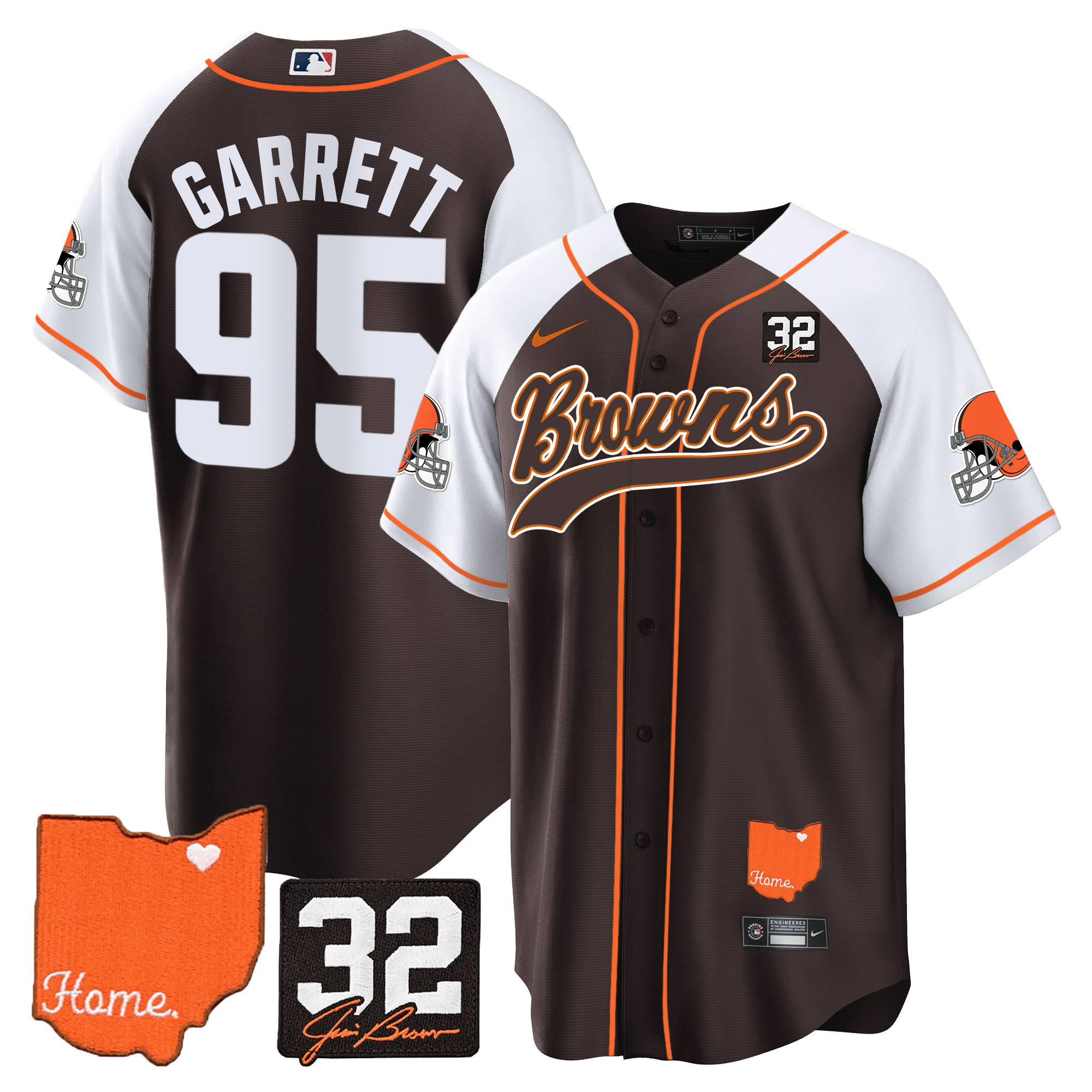 Cleveland Browns ‘#32 Jim Brown Memorial & Home Patch’ Vapor Baseball Custom Jersey – All Stitched