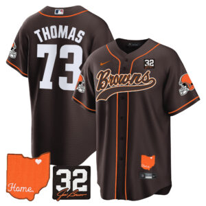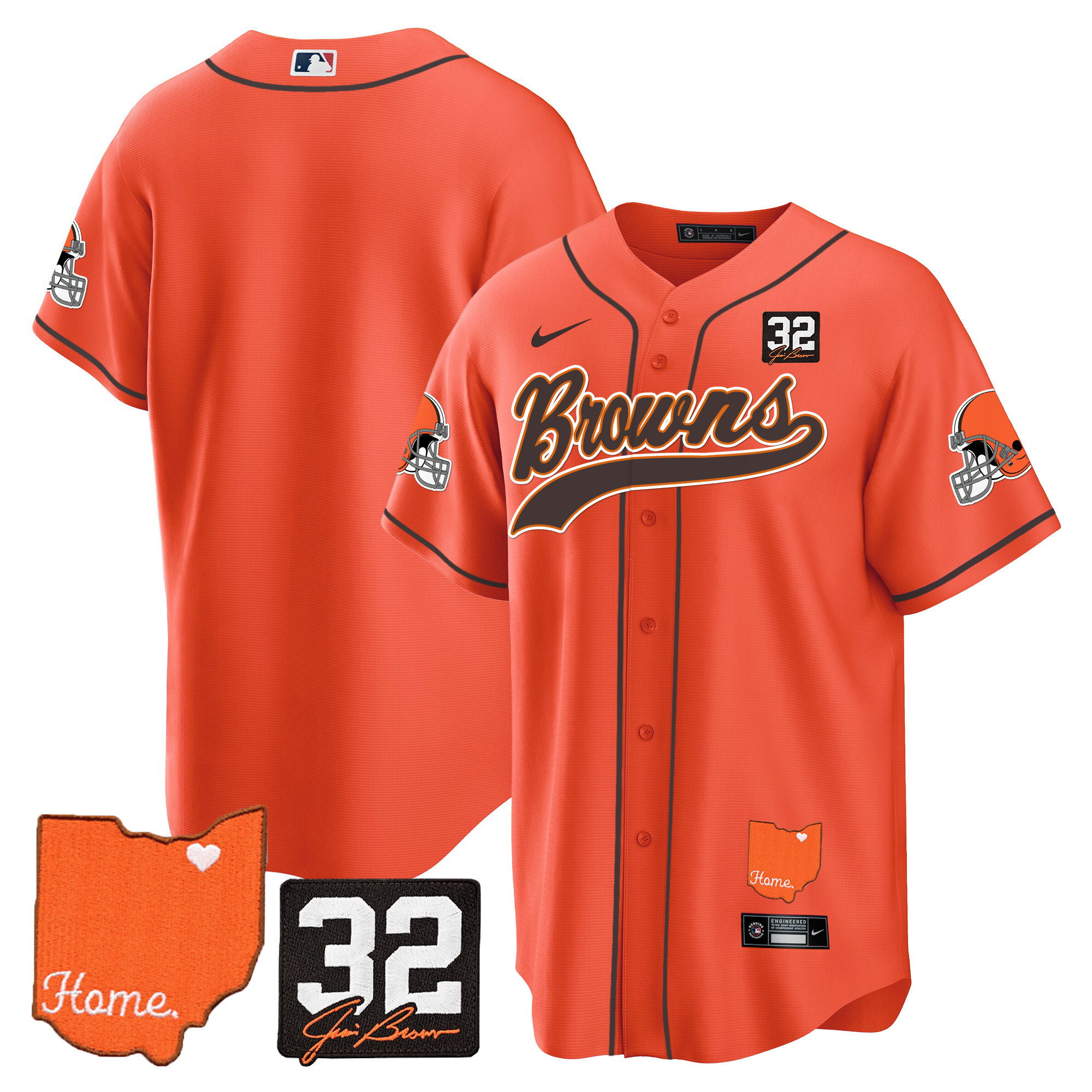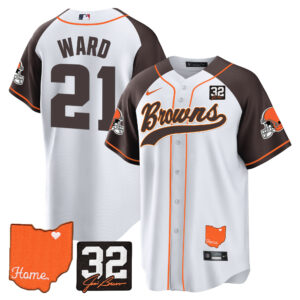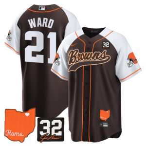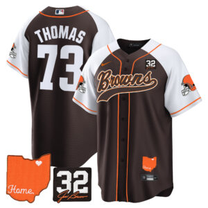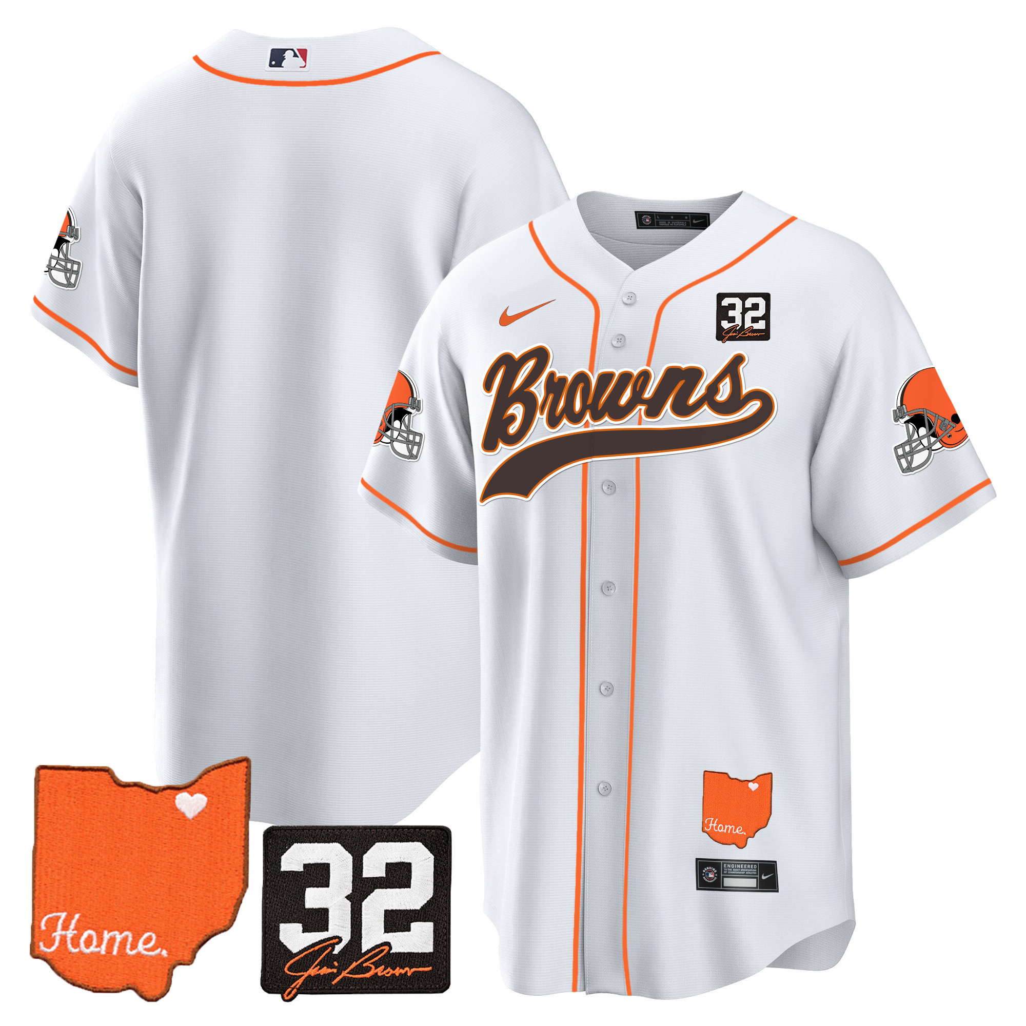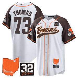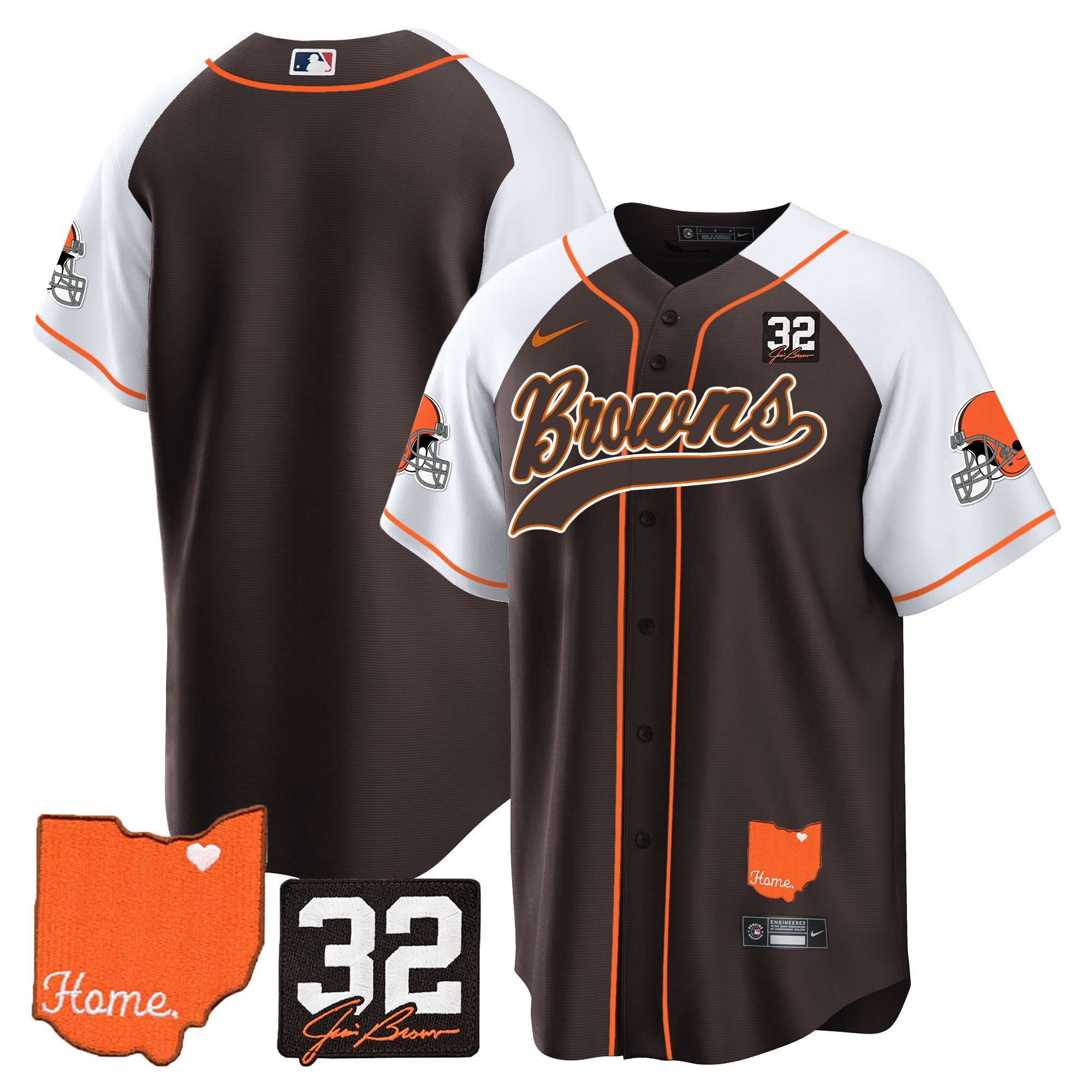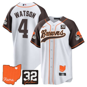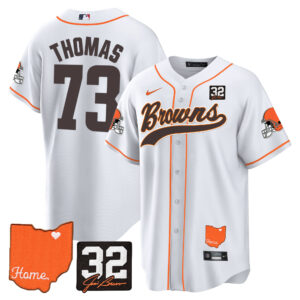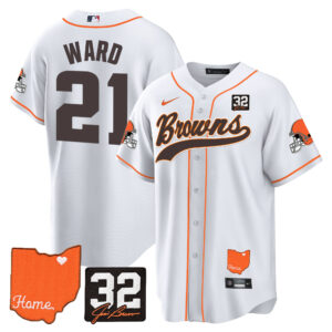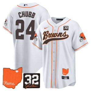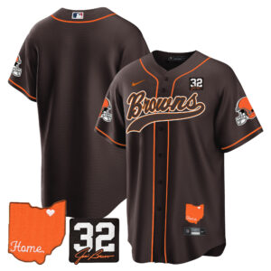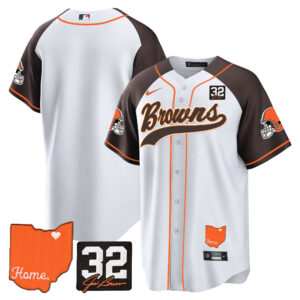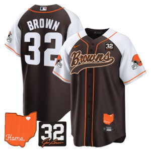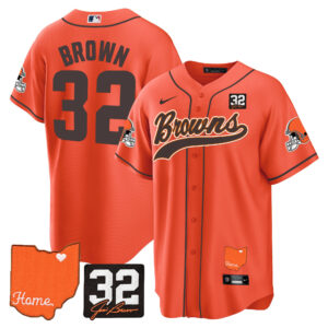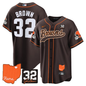 Men’s Browns #32 Jim Brown Memorial & Home Patch Baseball Jersey – All Stitched