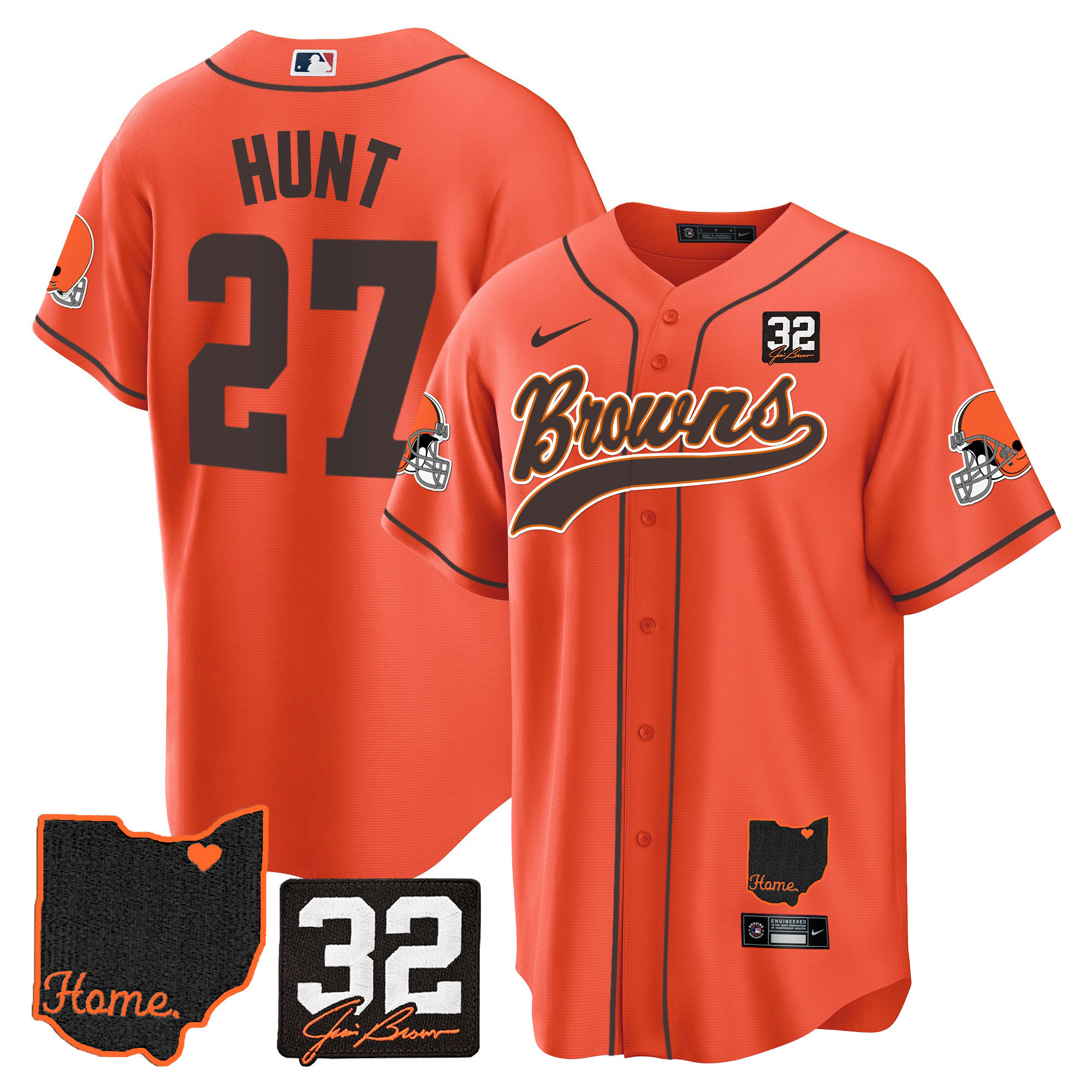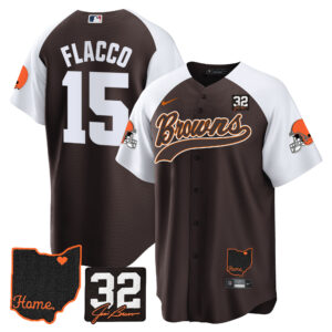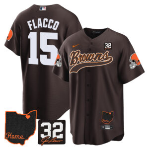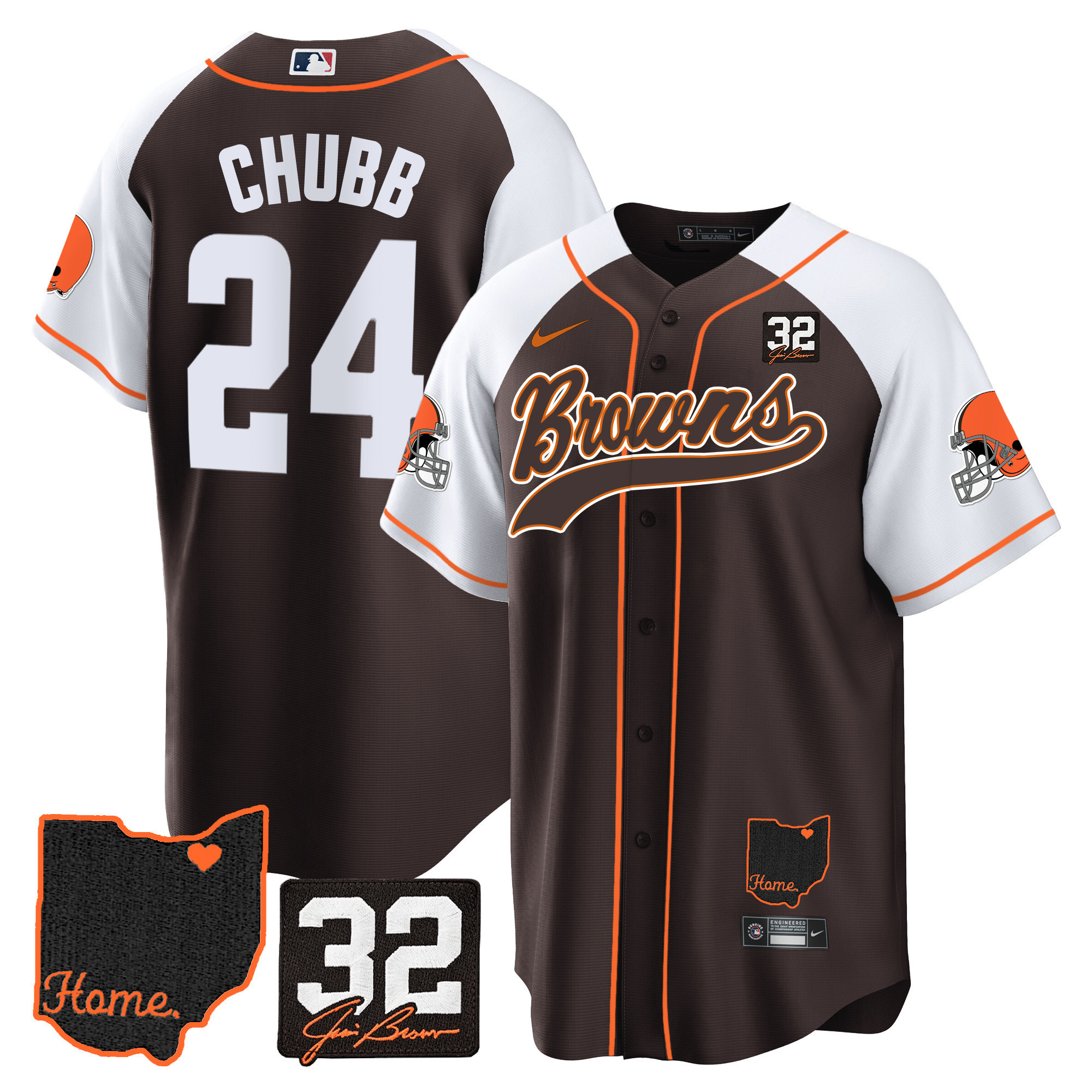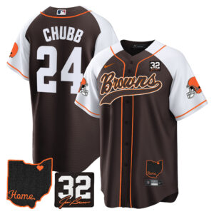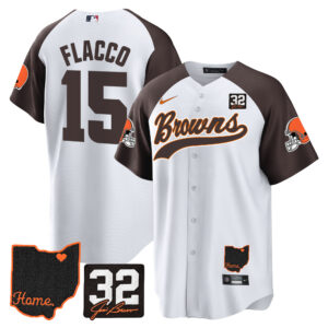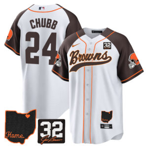 Cleveland Browns ‘#32 Jim Brown Memorial & Home Patch’ Vapor Baseball Custom Jersey – All Stitched
