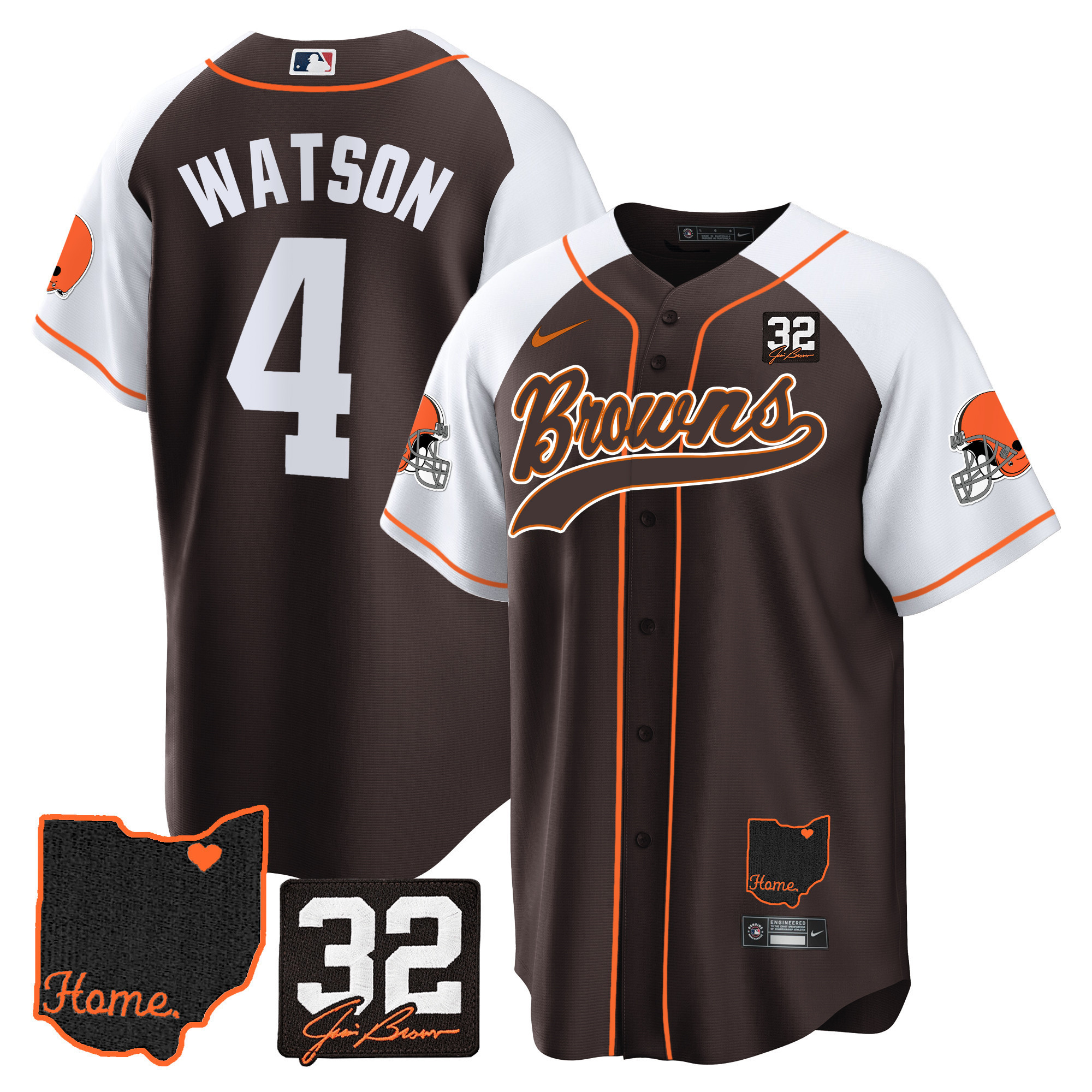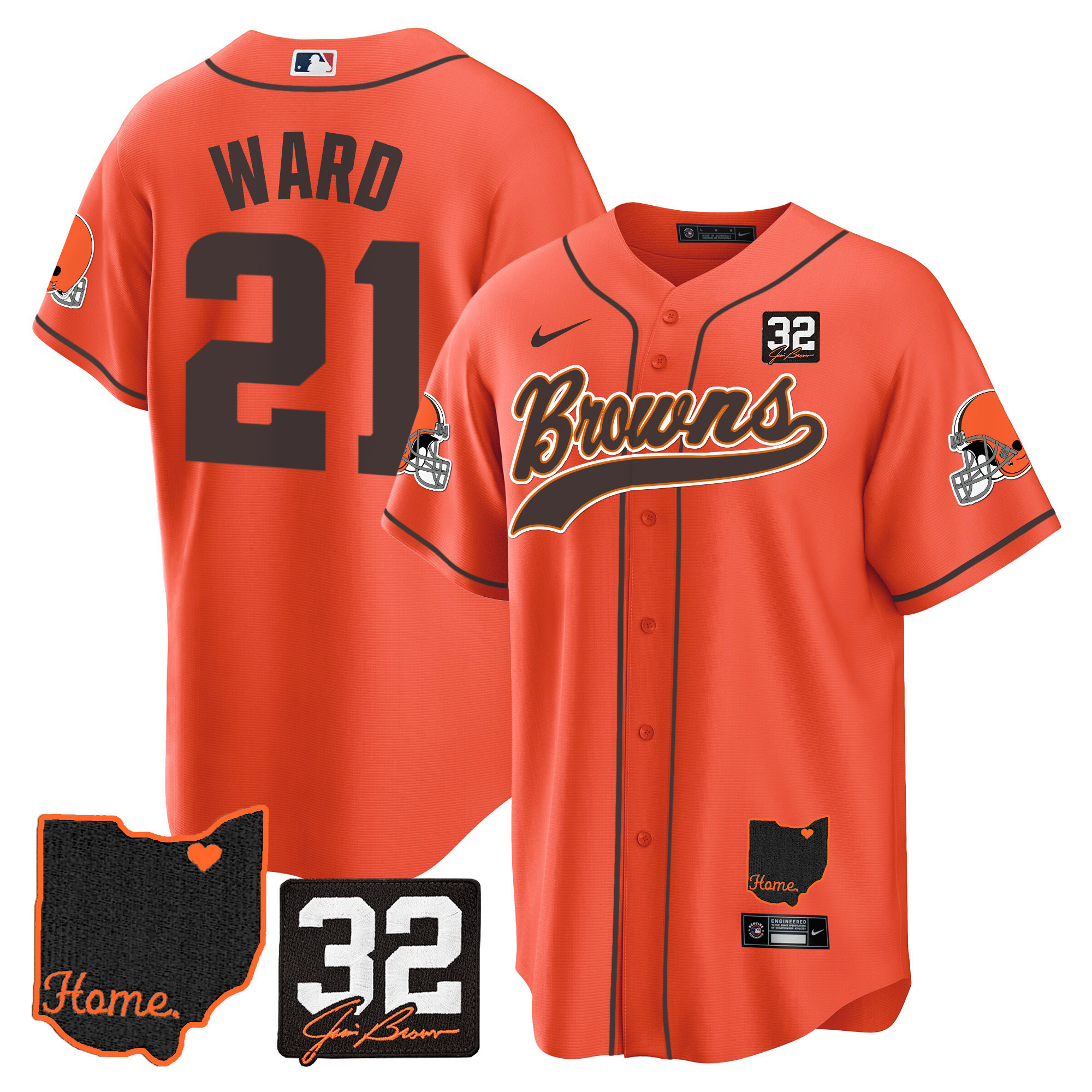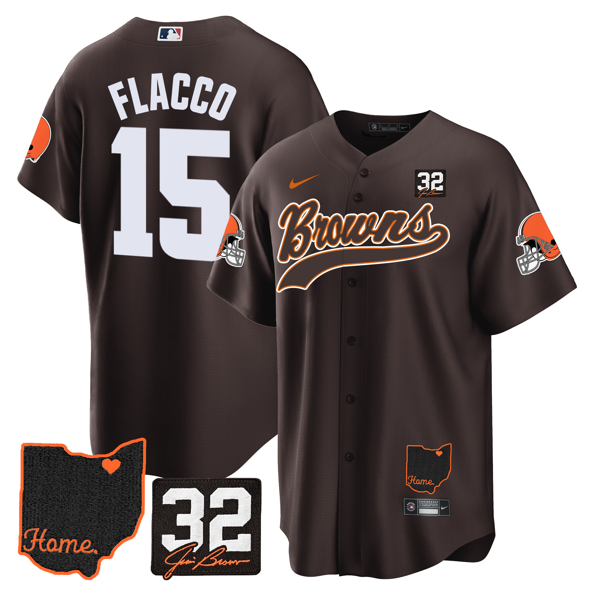 Cleveland Browns ‘#32 Jim Brown Memorial & Home Patch’ Vapor Baseball Custom Jersey – All Stitched