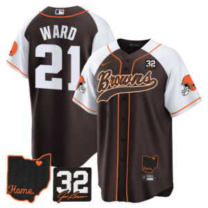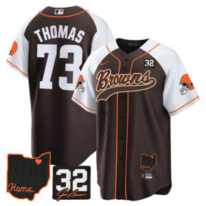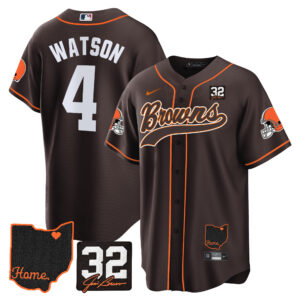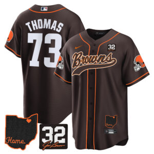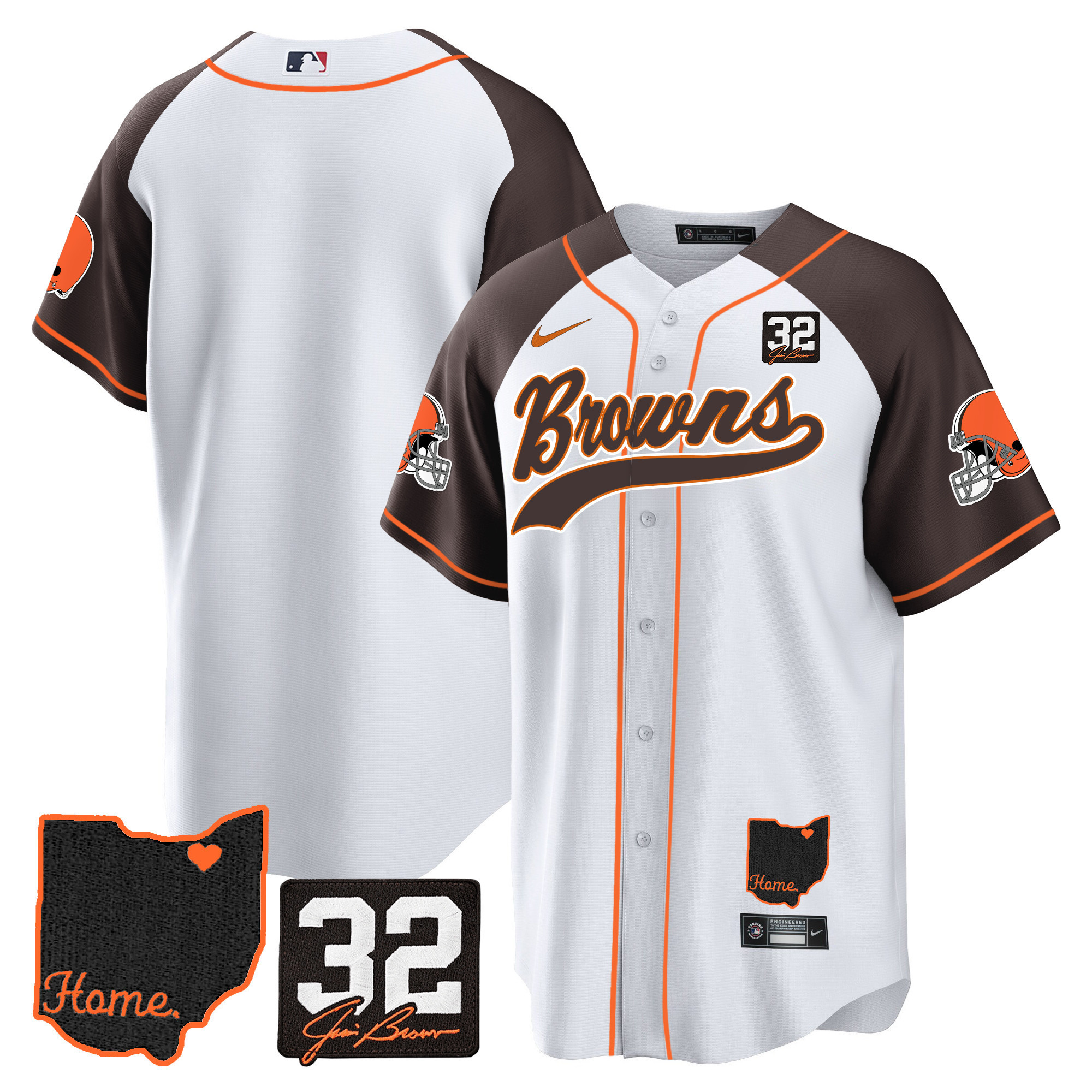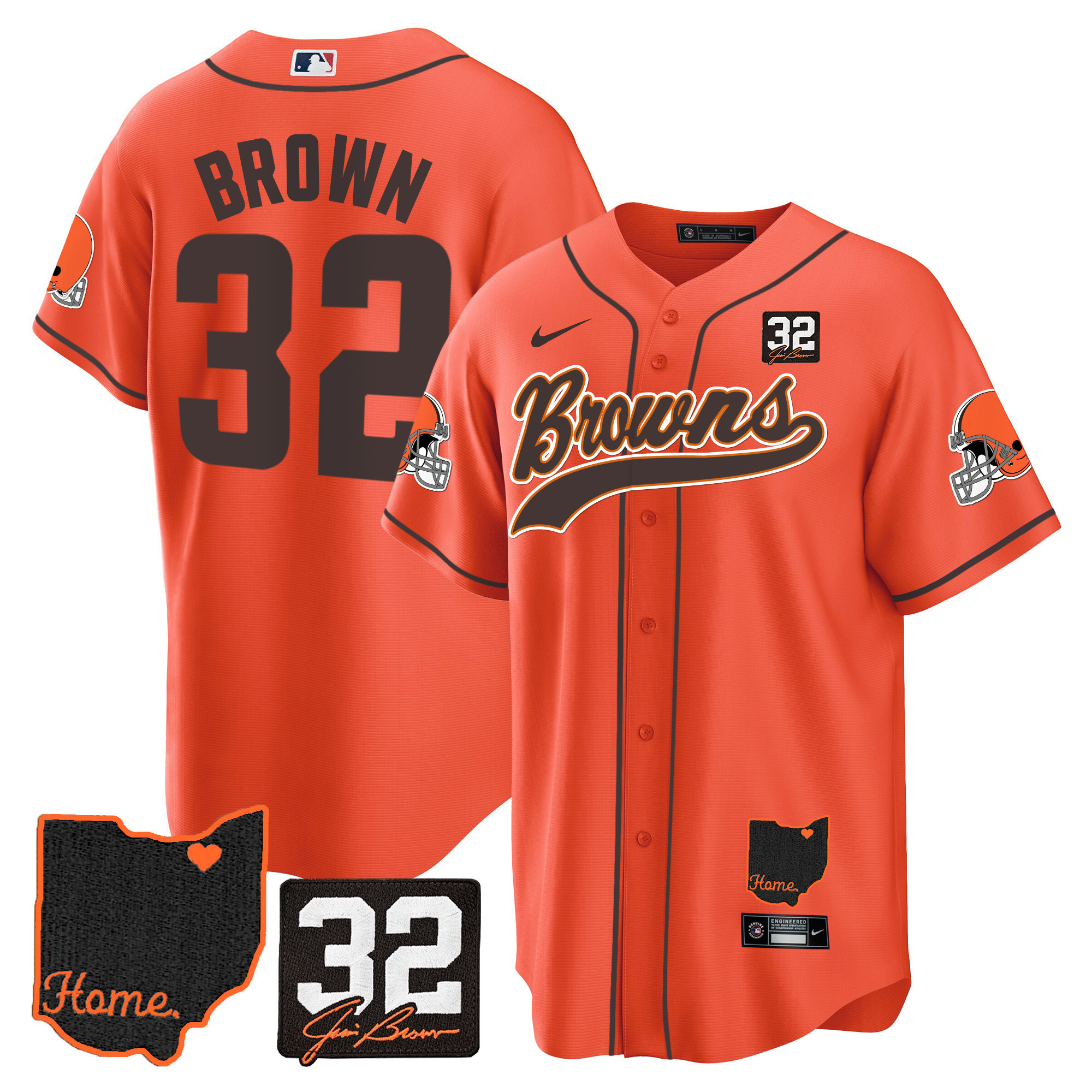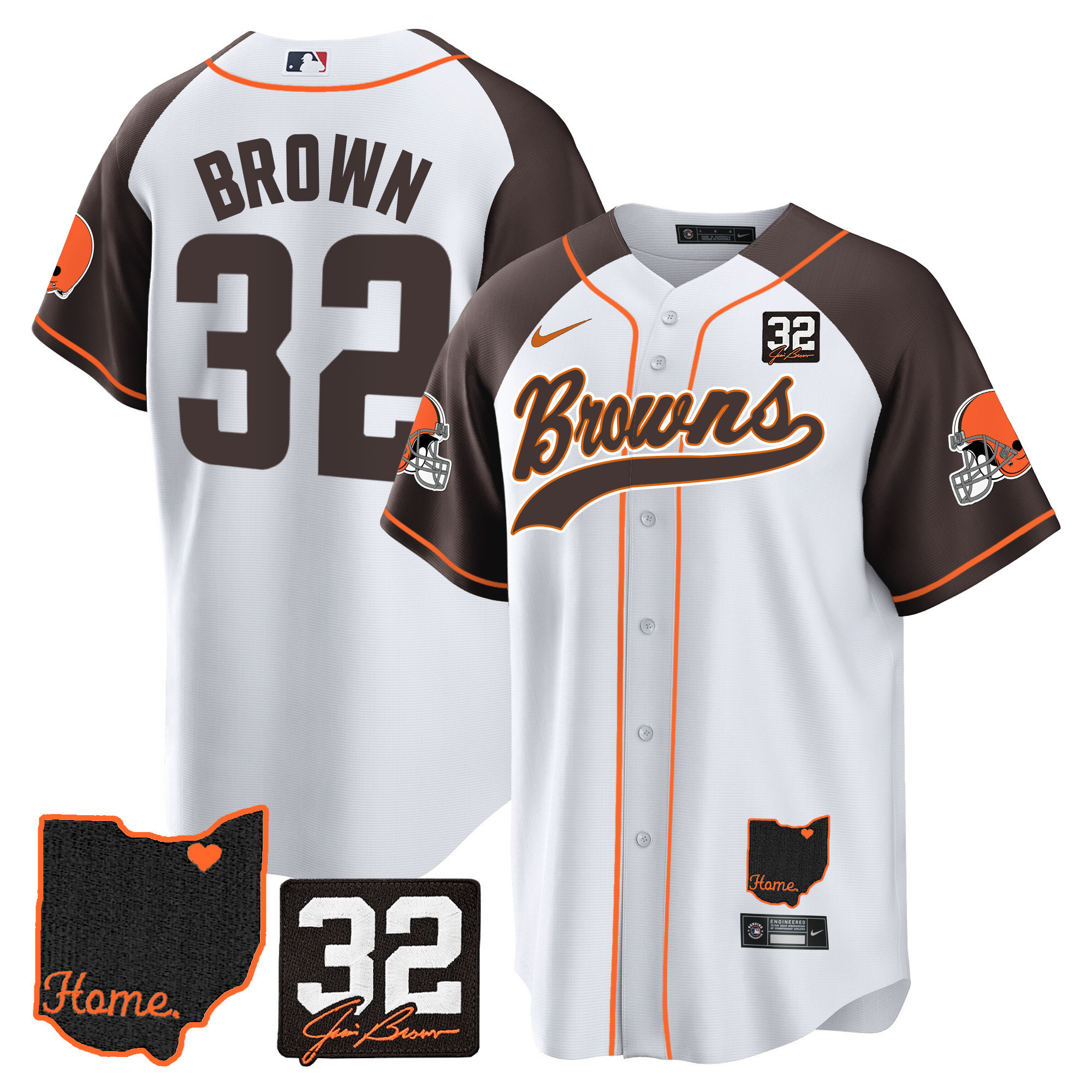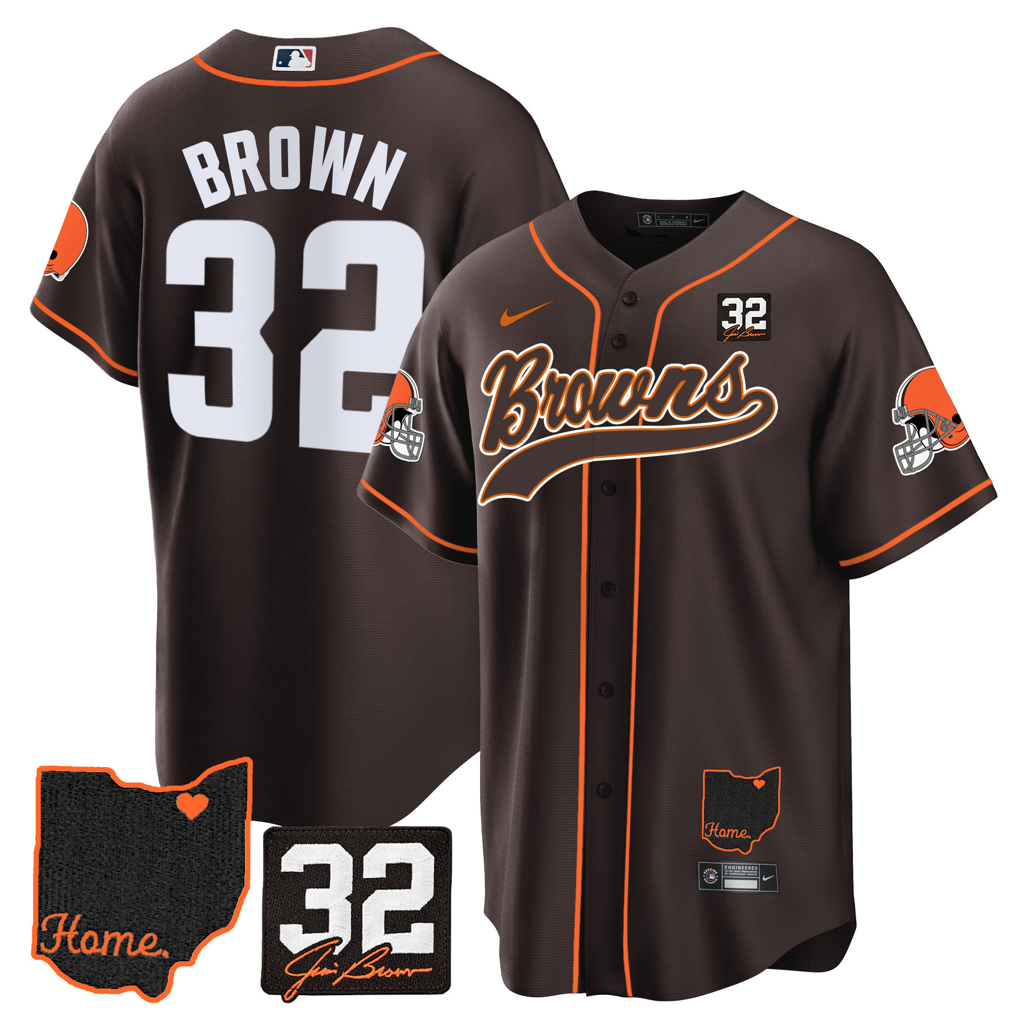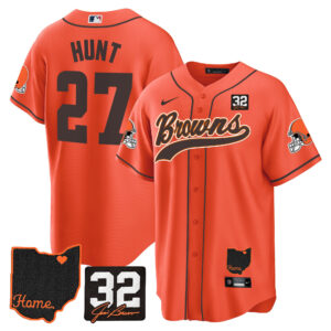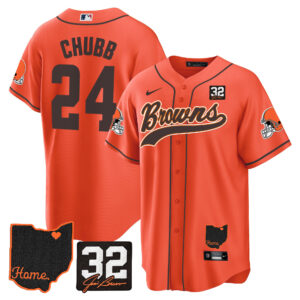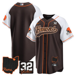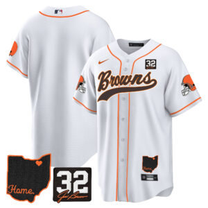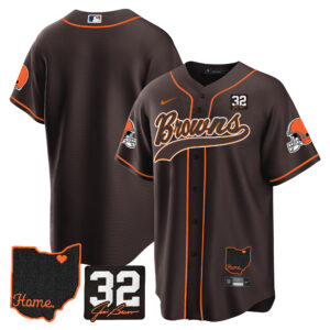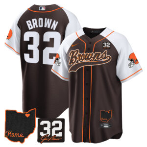 Men’s Browns #32 Jim Brown Memorial & Home Patch Baseball Jersey V2 – All Stitched