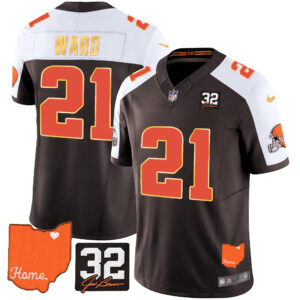 Men’s Cleveland Browns ‘#32 Jim Brown Memorial & Home Patch’ Vapor Baseball Jersey – All Stitched