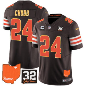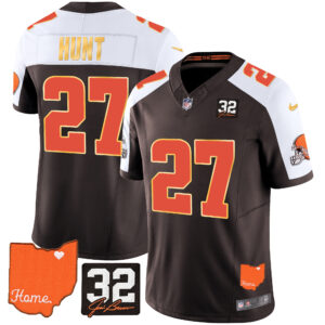 Cleveland Browns ‘#32 Jim Brown Memorial & Home Patch’ Vapor Baseball Custom Jersey – All Stitched