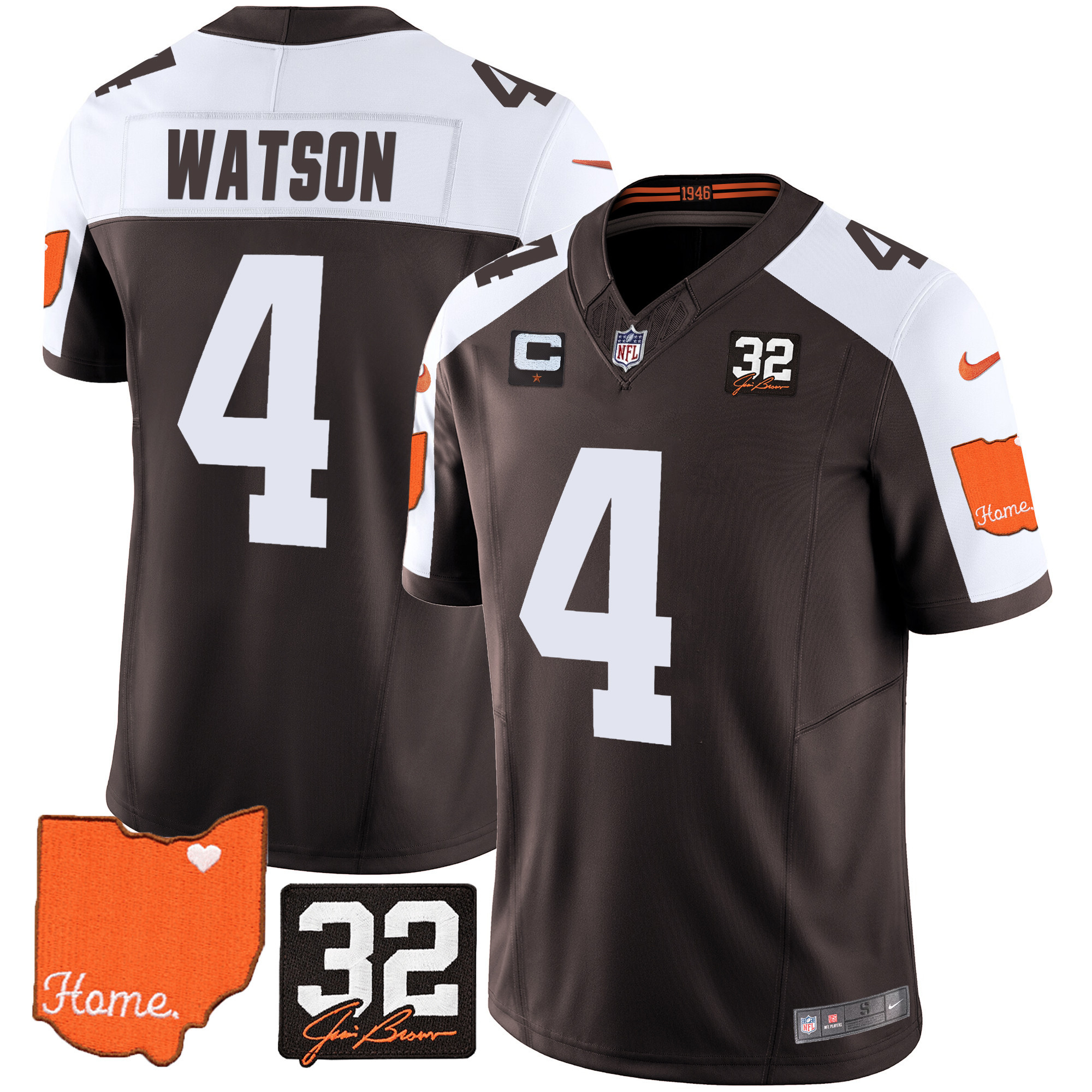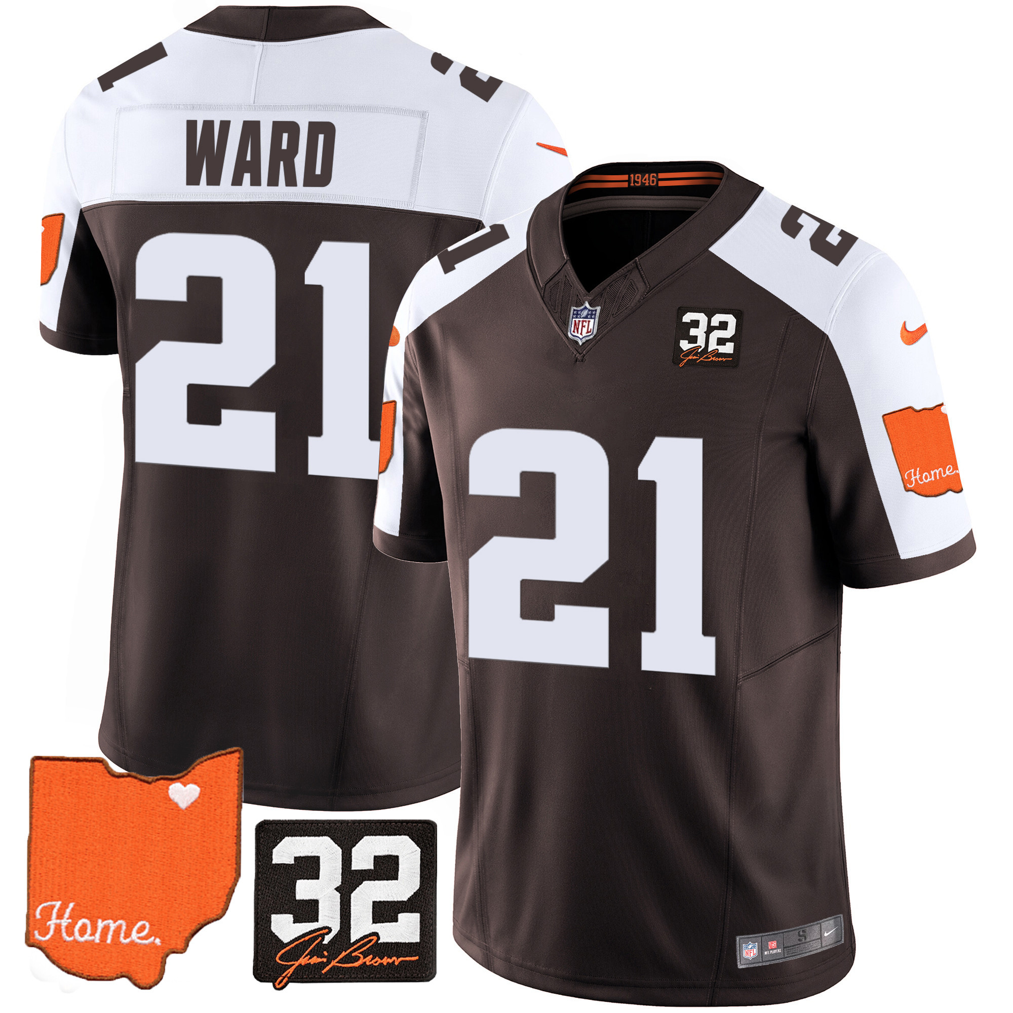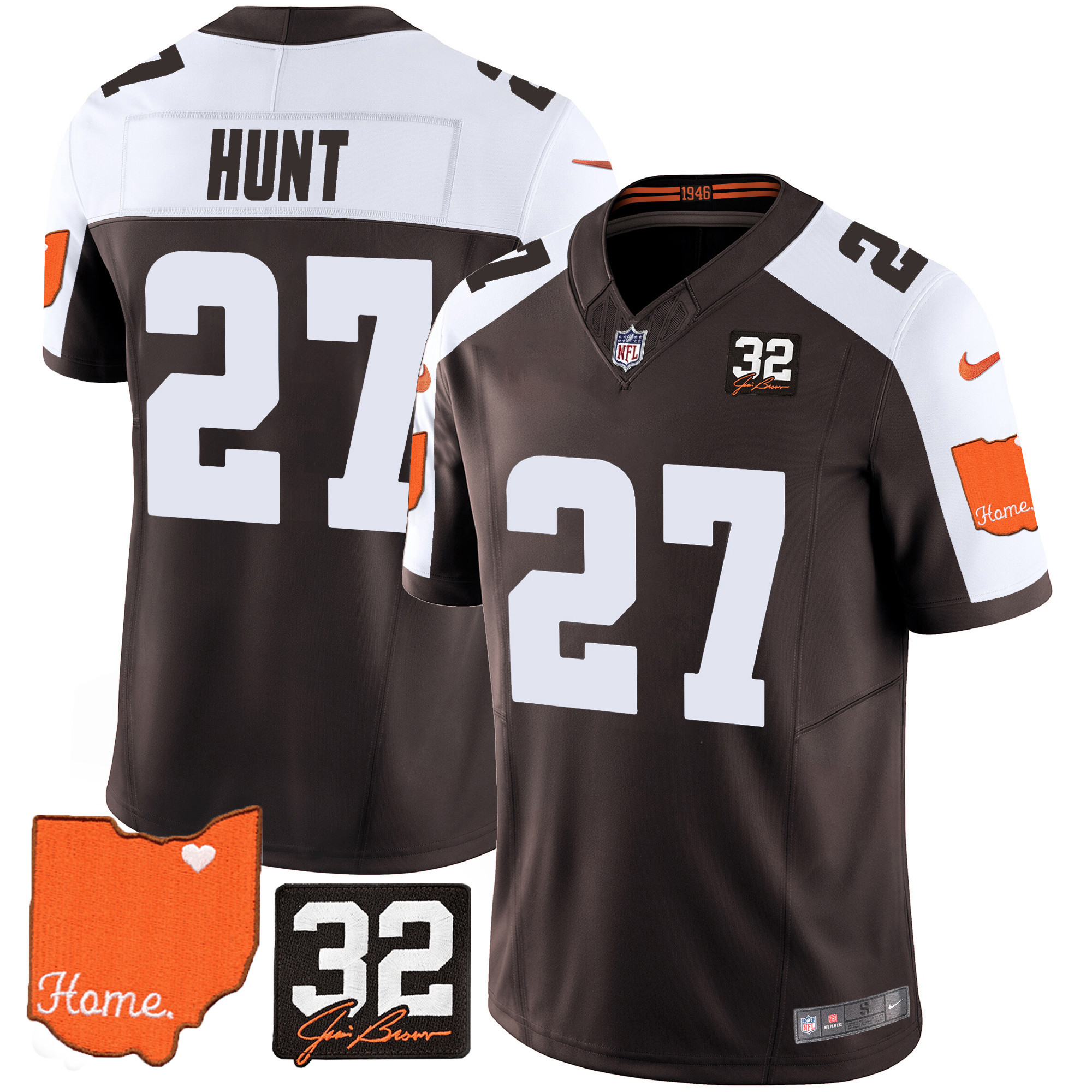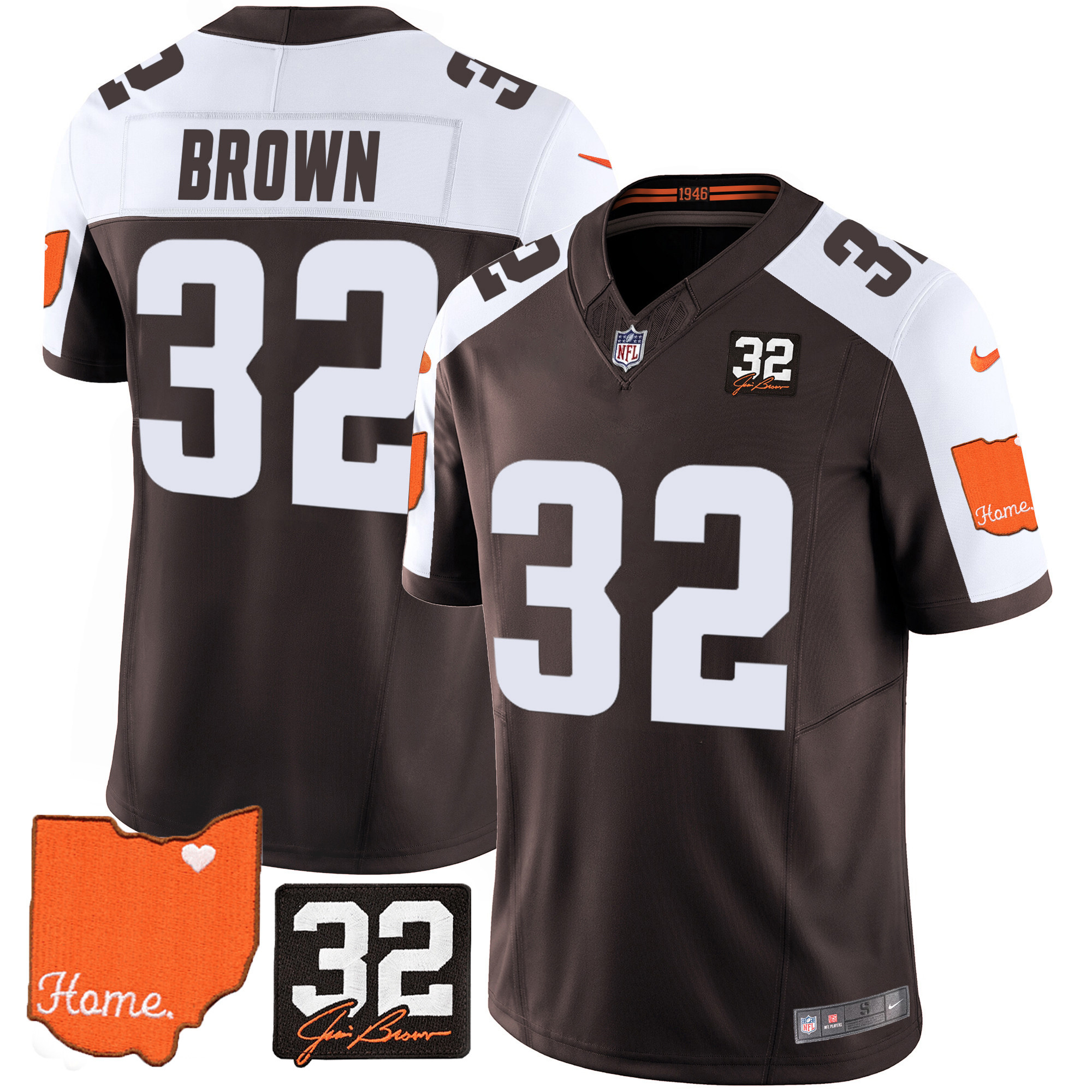 Cleveland Browns ‘#32 Jim Brown Memorial & Home Patch’ Vapor Baseball Custom Jersey – All Stitched