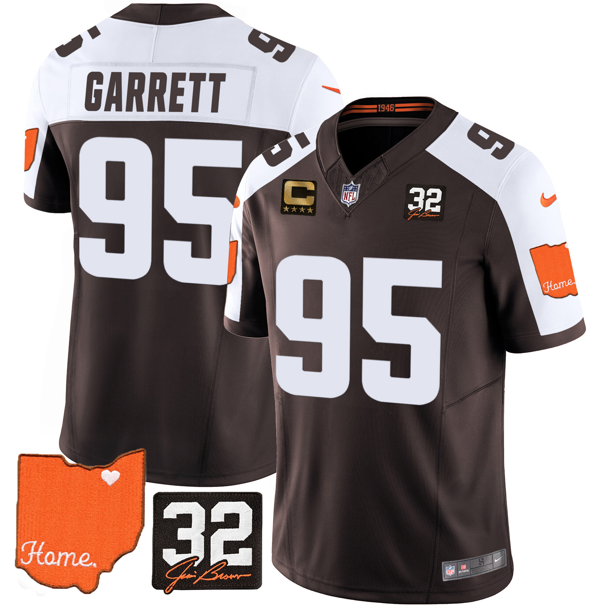 Men’s Cleveland Browns ‘#32 Jim Brown Memorial & Home Patch’ Vapor Baseball Jersey – All Stitched
