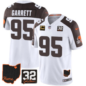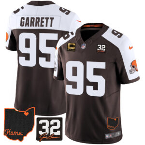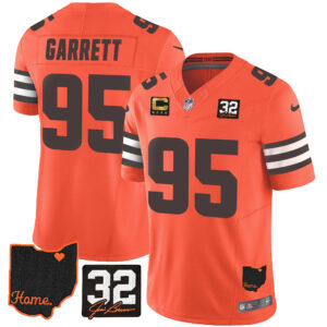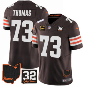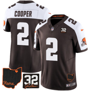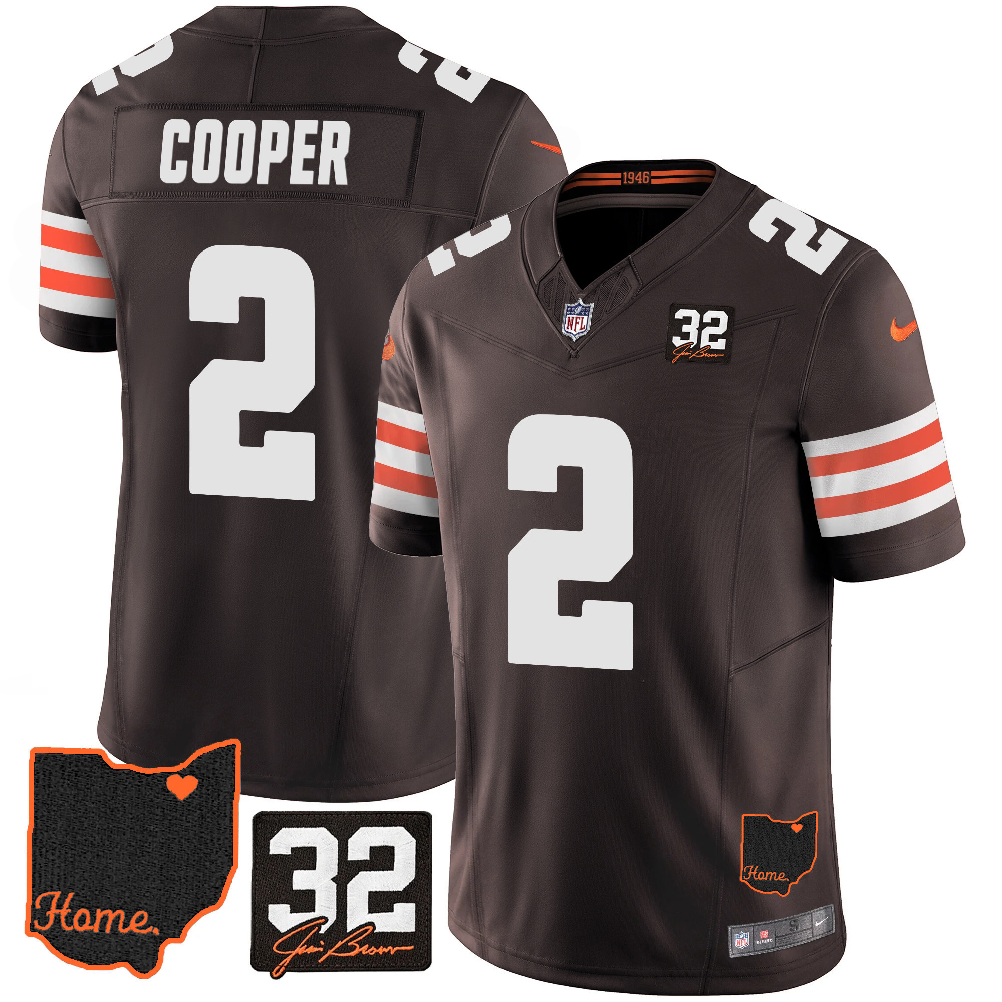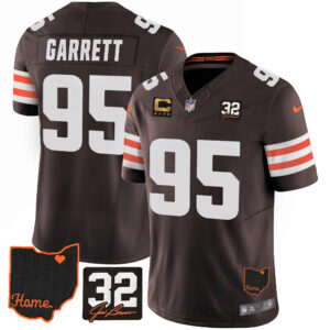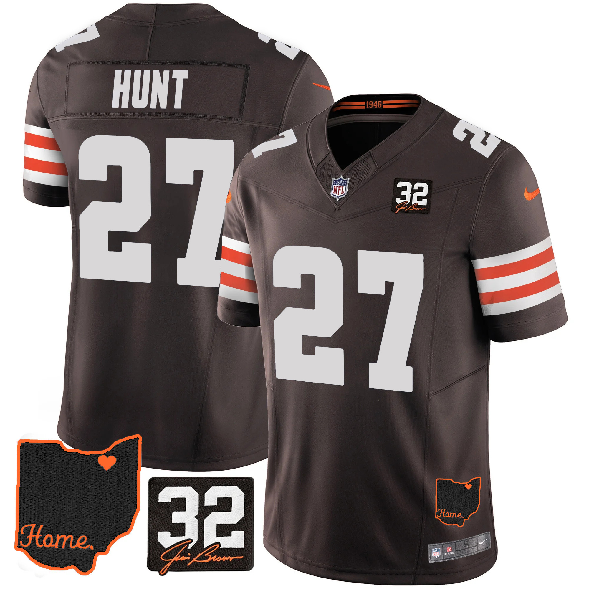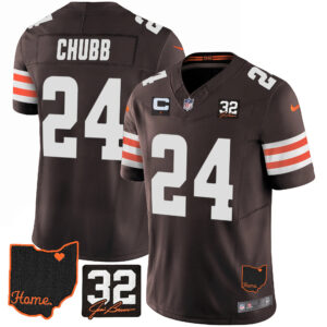 Men’s Browns #32 Jim Brown Memorial & Home Patch Jersey V3 – All Stitched