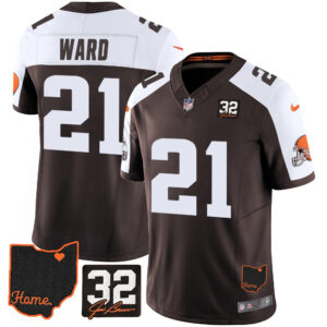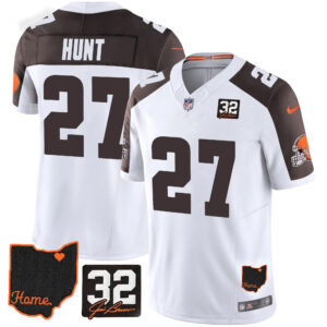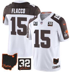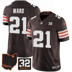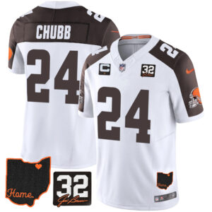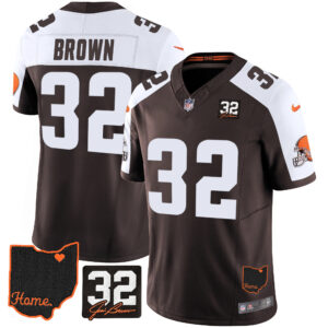 Men’s Cleveland Browns ‘#32 Jim Brown Memorial & Home Patch’ Vapor Baseball Jersey – All Stitched