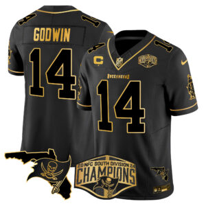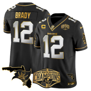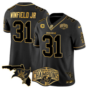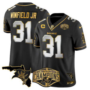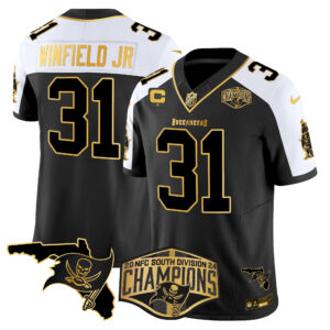 Men’s Buccaneers 2024 NFC South Division Champions Patch Gold Vapor Limited Jersey – All Stitched