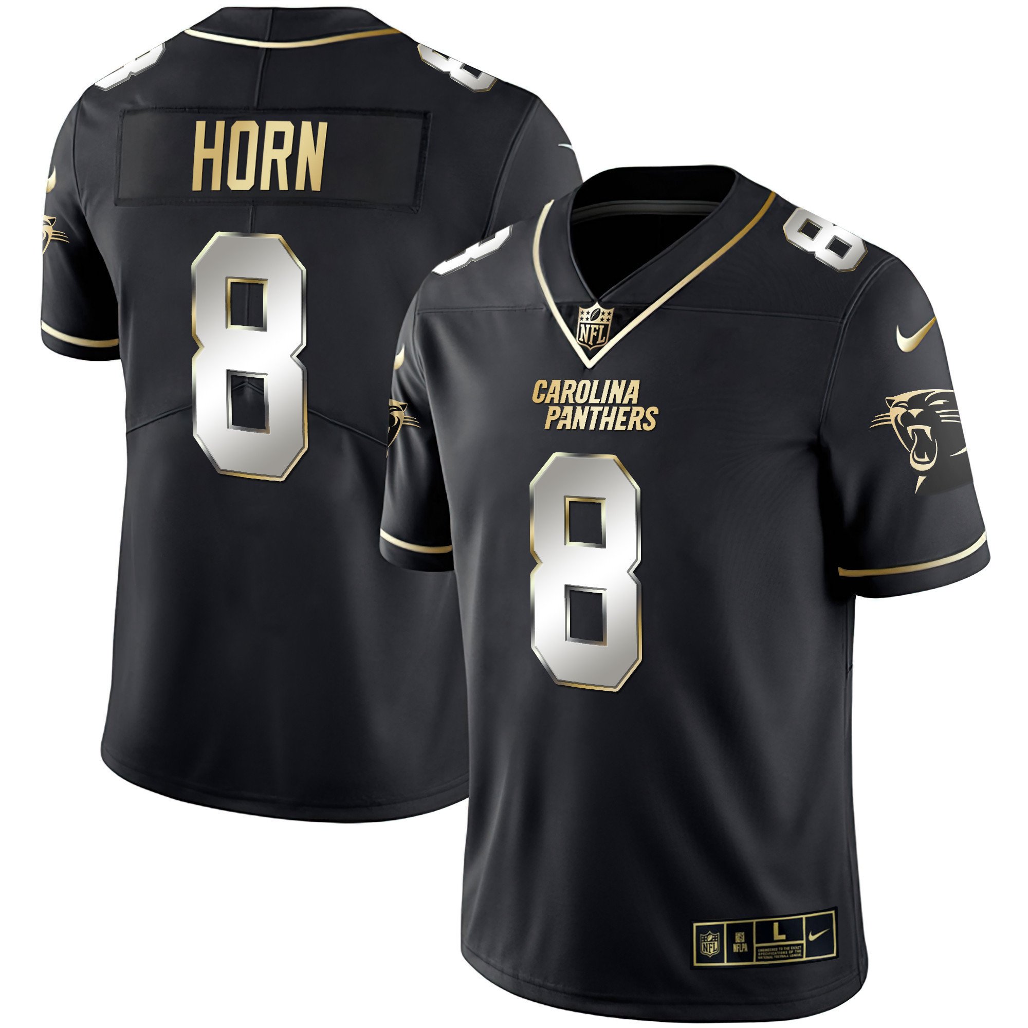 Men’s Carolina Panthers Black Gold & White Gold Vapor Limited Jersey – All Stitched