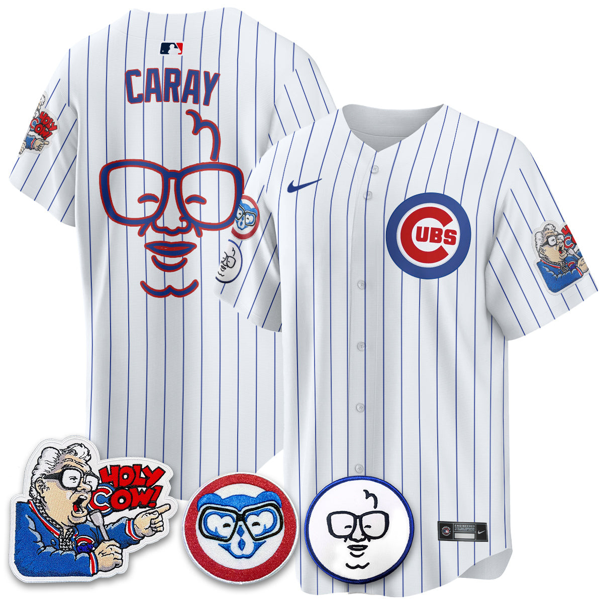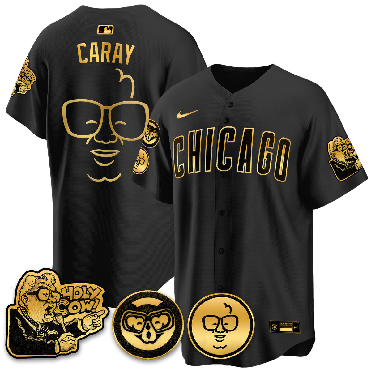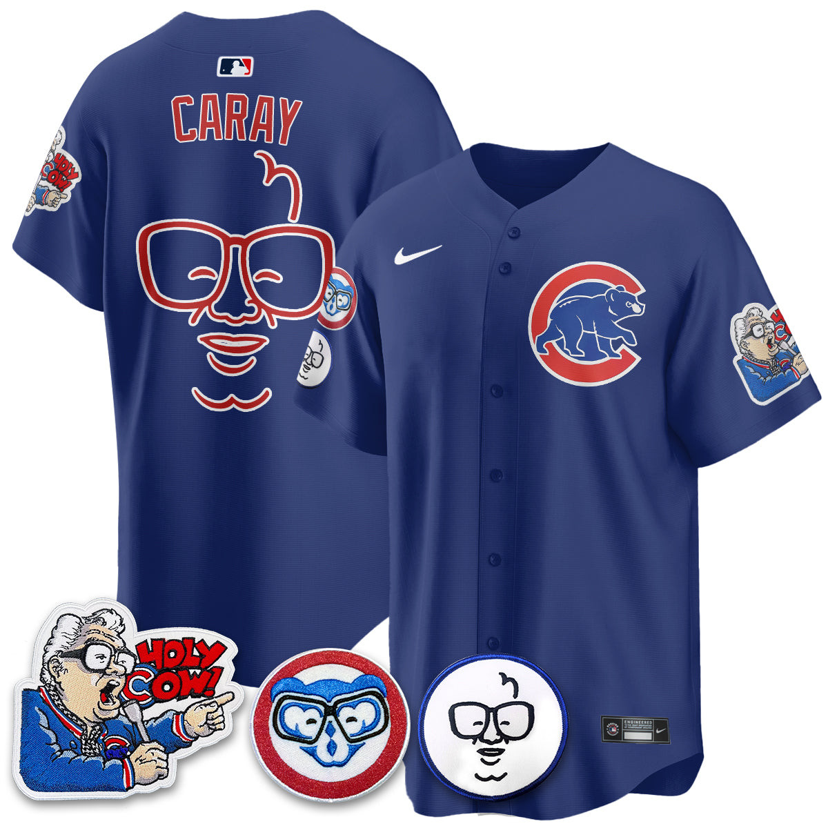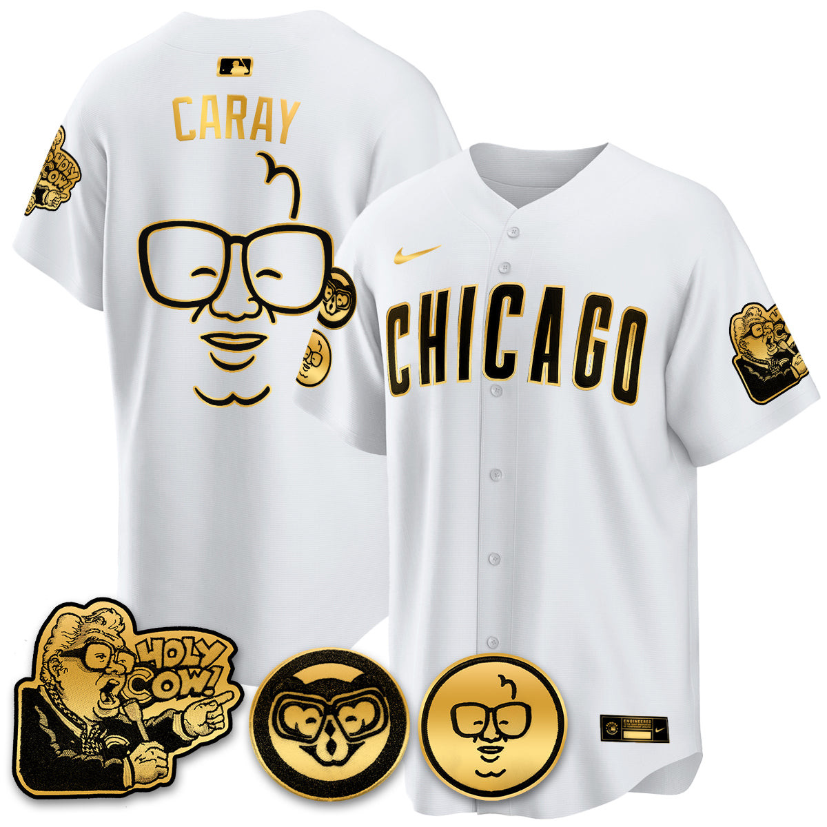 Men’s Chicago Cubs Harry Caray Holy Cow Patch Premier Limited Jersey – All Stitched