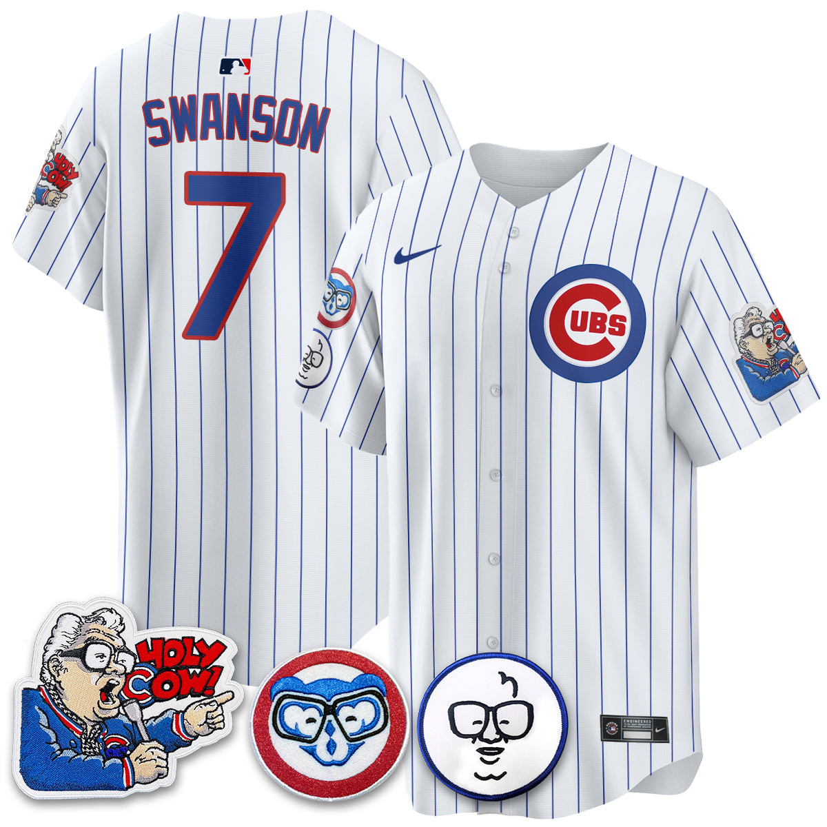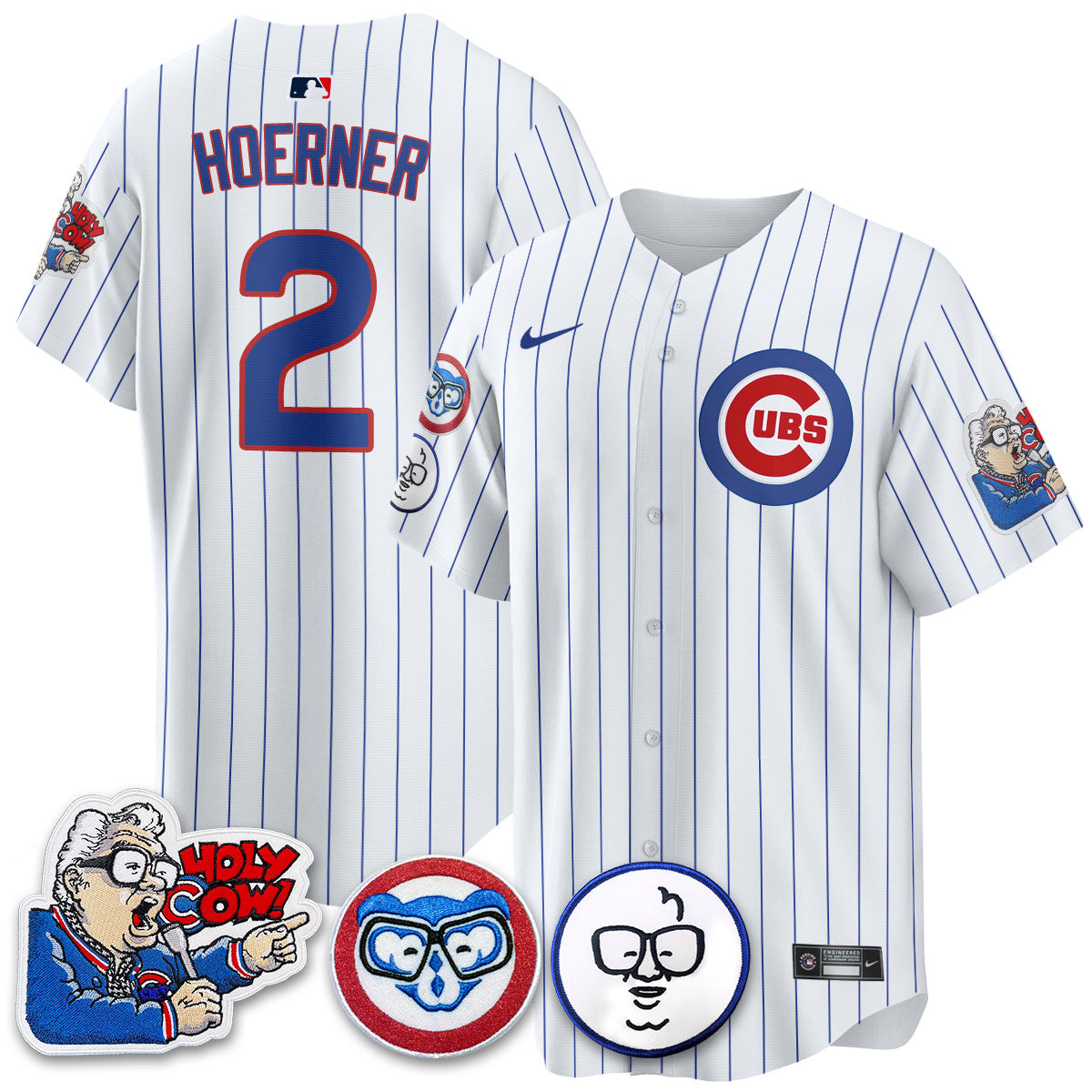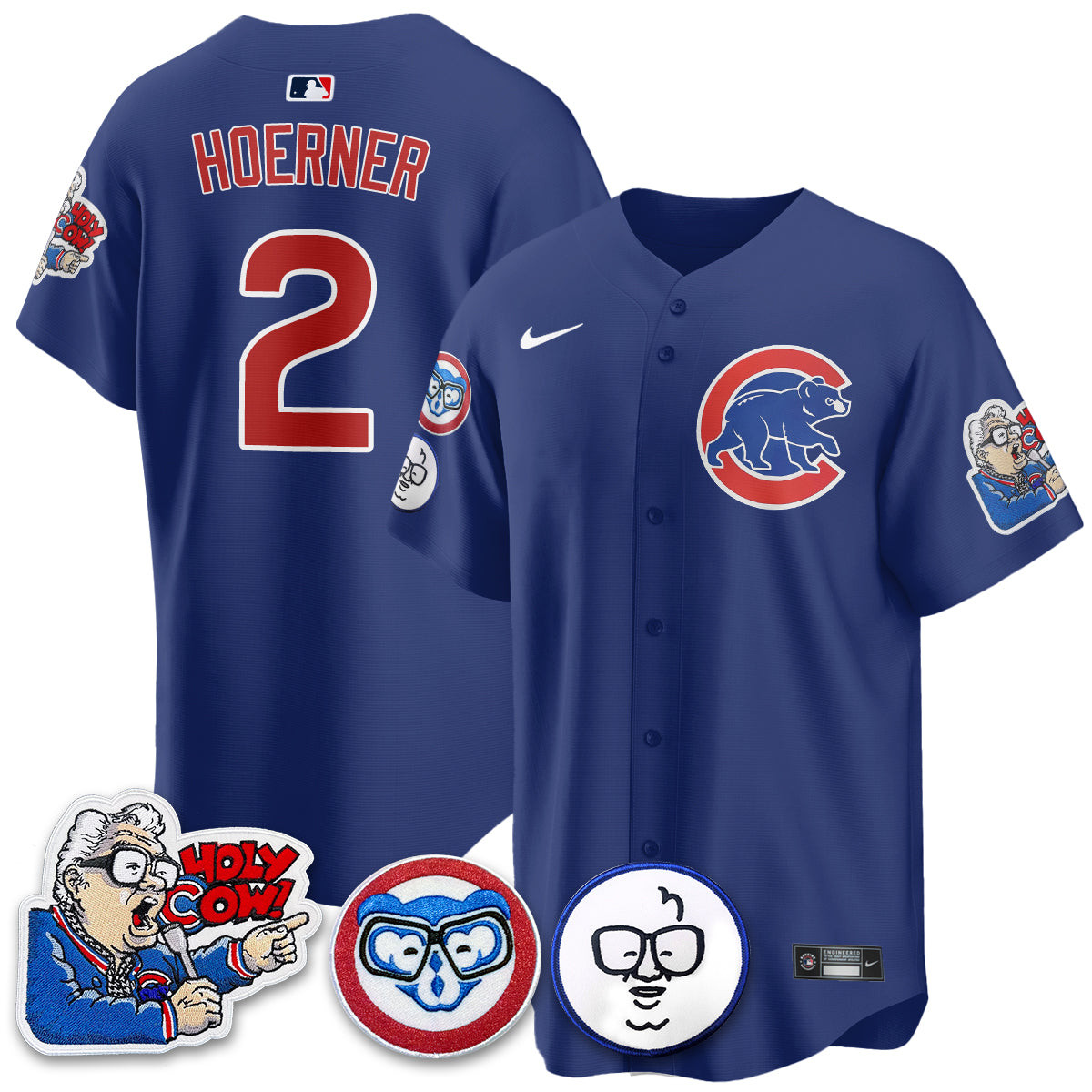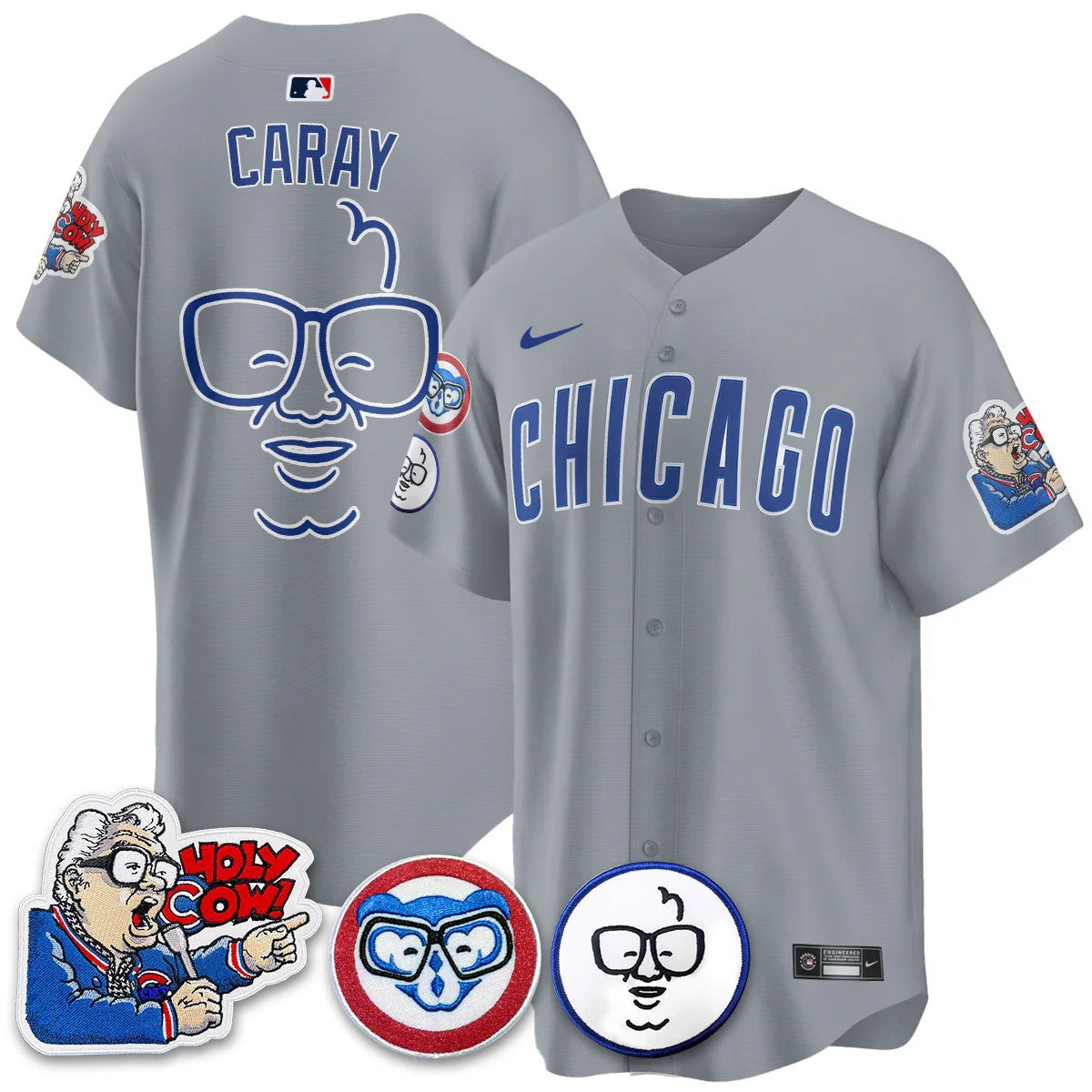 Men’s Chicago Cubs Harry Caray Holy Cow Patch Premier Limited Jersey – All Stitched